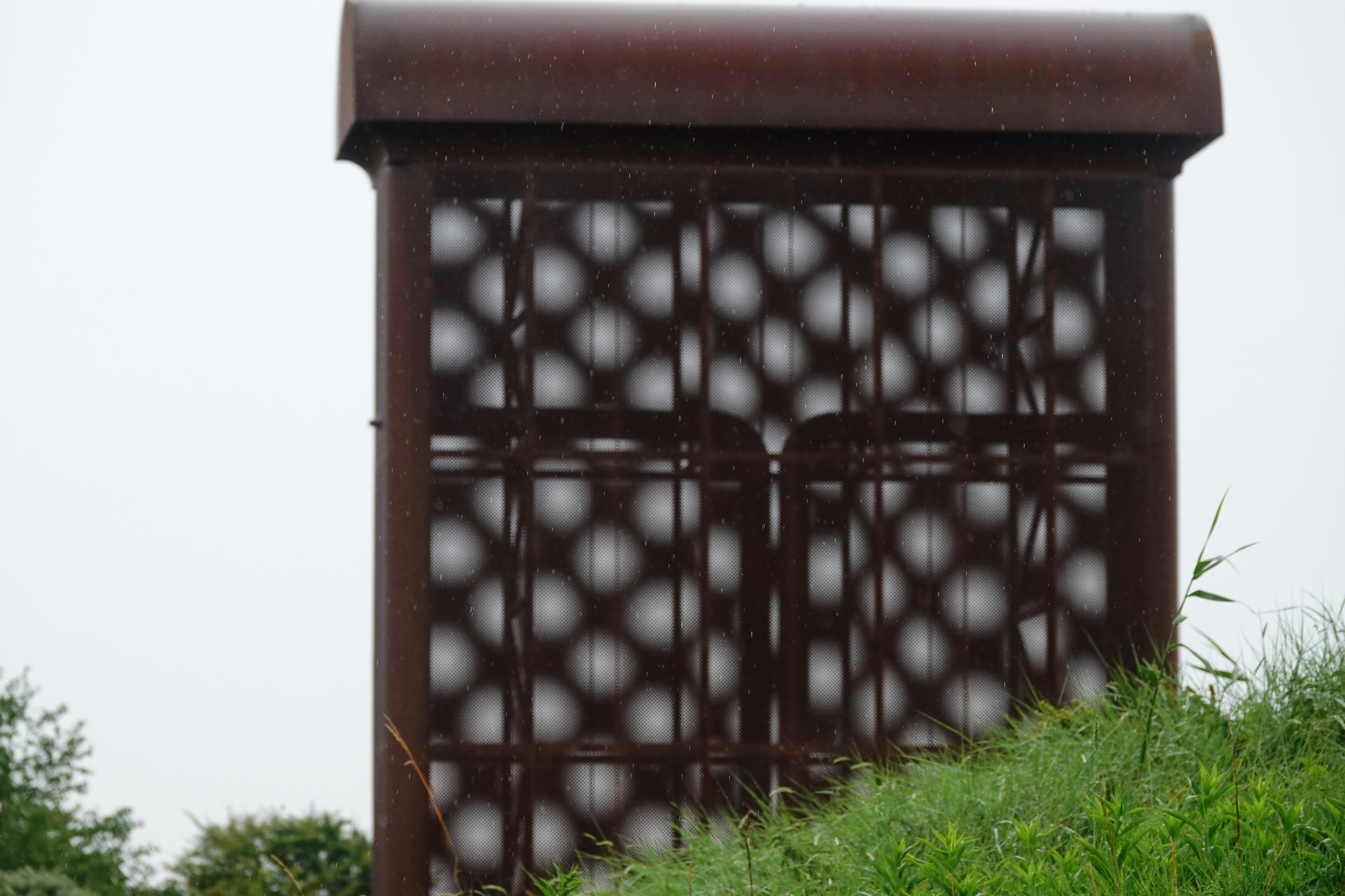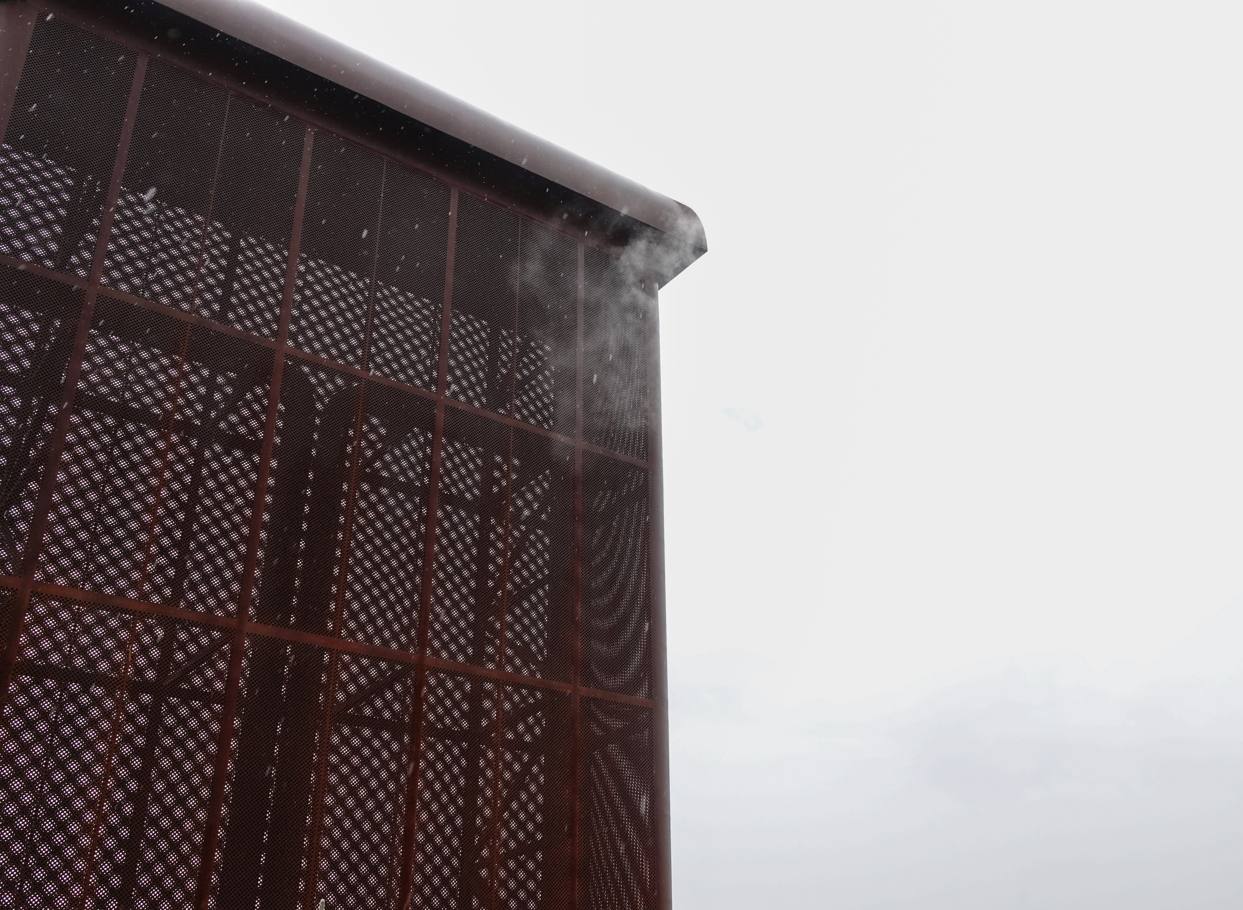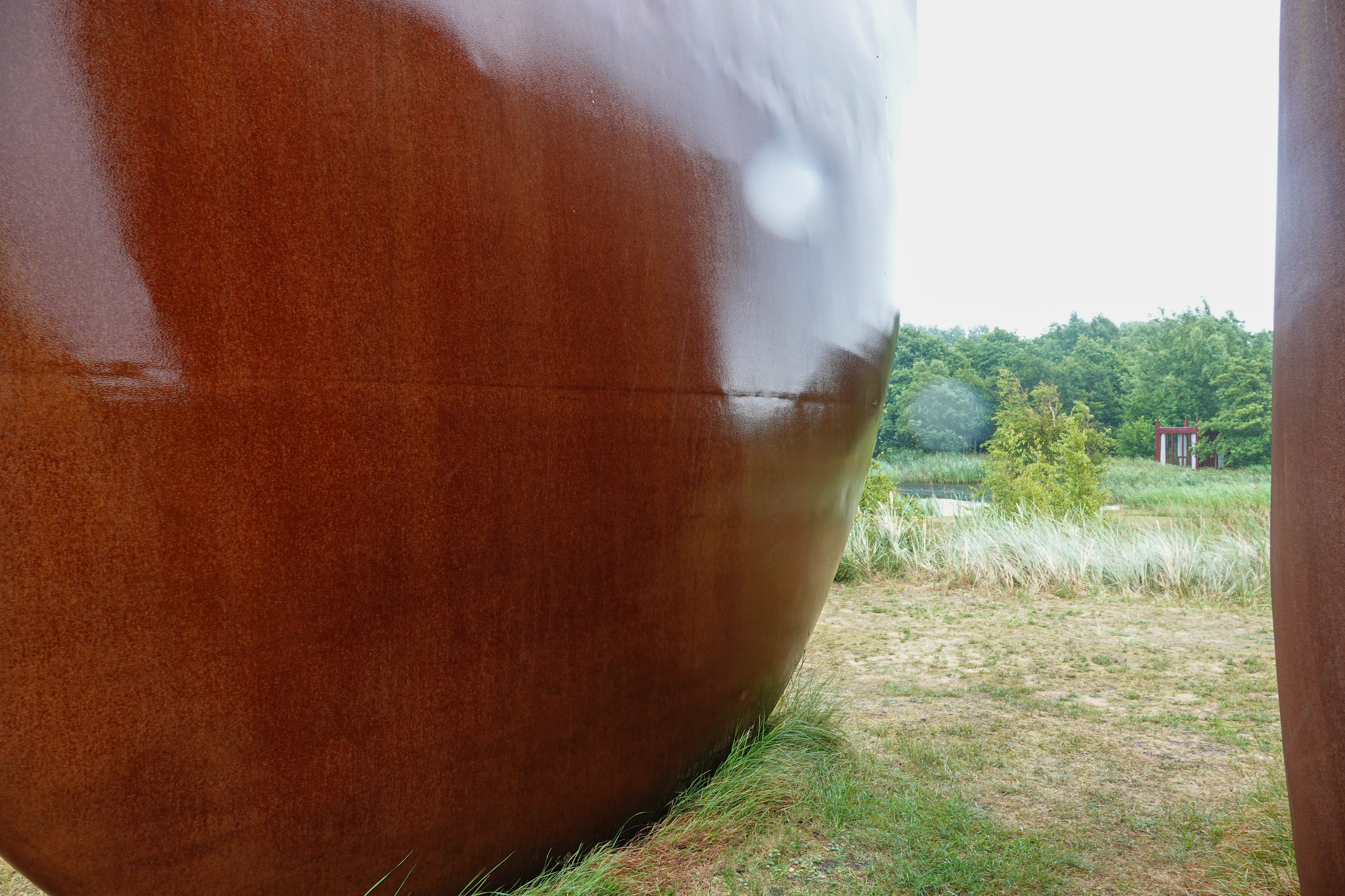 Ook van cortenstaal was het gebouwtje met de naam Stoomhuisje. Prachtige staalconstructies zijn er gebruikt, die het verschijnsel ‘moiré’ veroorzaken. Dit is een schijnbare beweging van groter en kleiner wordende cirkels. Heel fascinerend.