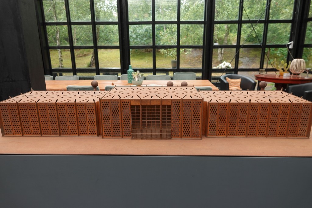 Ik was totaal gefascineerd door de technische hoogstandjes, die nodig waren voor deze variëteit aan kunstwerken. ‘Hogere wiskunde’ noemde Ferrara het. Wat een indrukwekkend museum! Er liggen plannen om een museumgebouw te maken, ook met veel cortenstaal erin verwerkt, zodat ook op deze plek in Den Helder de schilderkunst van van de Wint getoond kan worden. Hier zie je de maquette van de toekomstplannen. Ik ga er zeker nog eens terug! Liefst dan met wat zon, of tenminste droog.