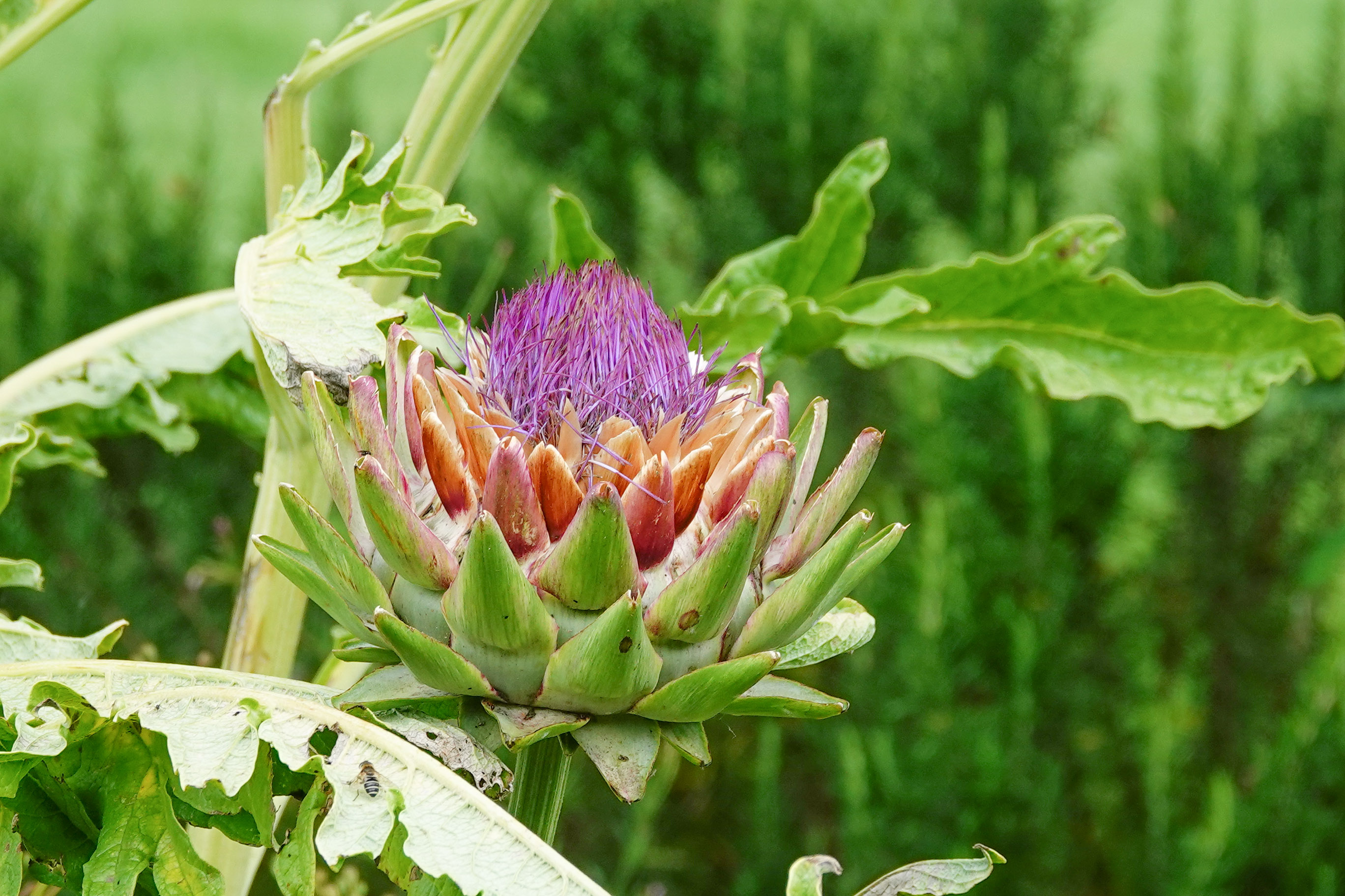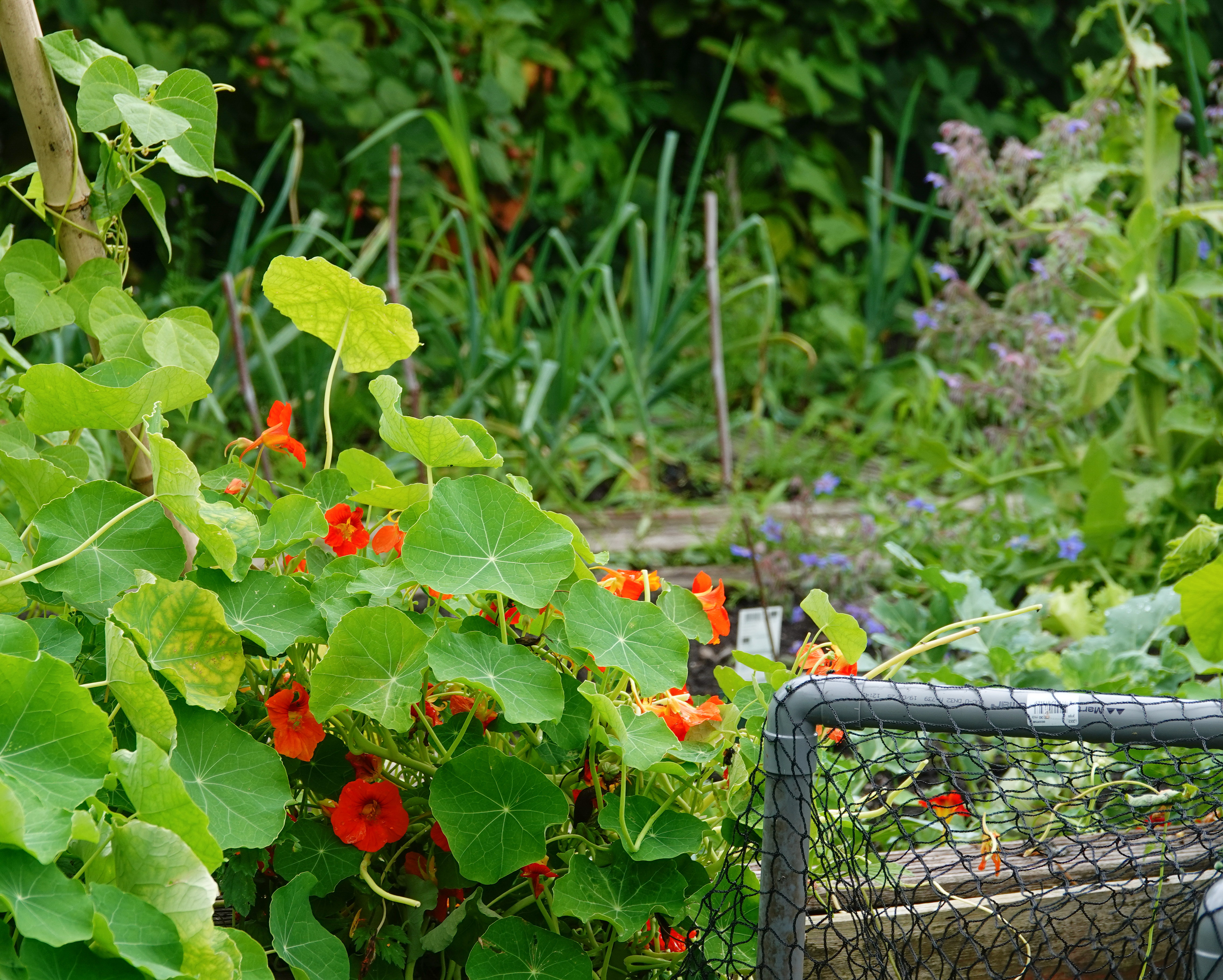 We namen een kleine omweg, namelijk via het volksstuinencomplex. Daar heeft M zelf een groentetuintje. Het was leuk om er even te kijken en te proeven van kruidenblaadjes, eetbare bloemen en  nog veel meer!