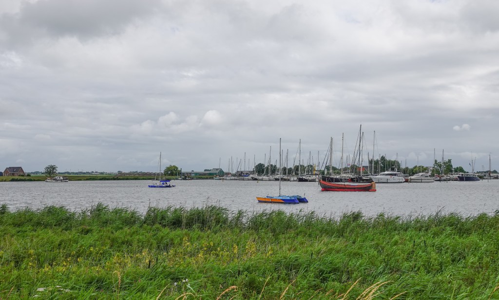 We zaten er gezellig en toen de de inwendige mens ook weer was voorzien, begonnen we aan de terugtocht. Er stond een stevig windje aan de haven. Gelukkig bleef regen ons deze ochtend verder bespaard op één buitje na, maar dat viel toen we bij het stadscafé aankwamen. Het grootste gedeelte van die bui zaten we daar binnen.
