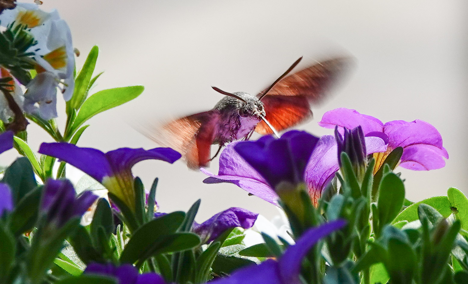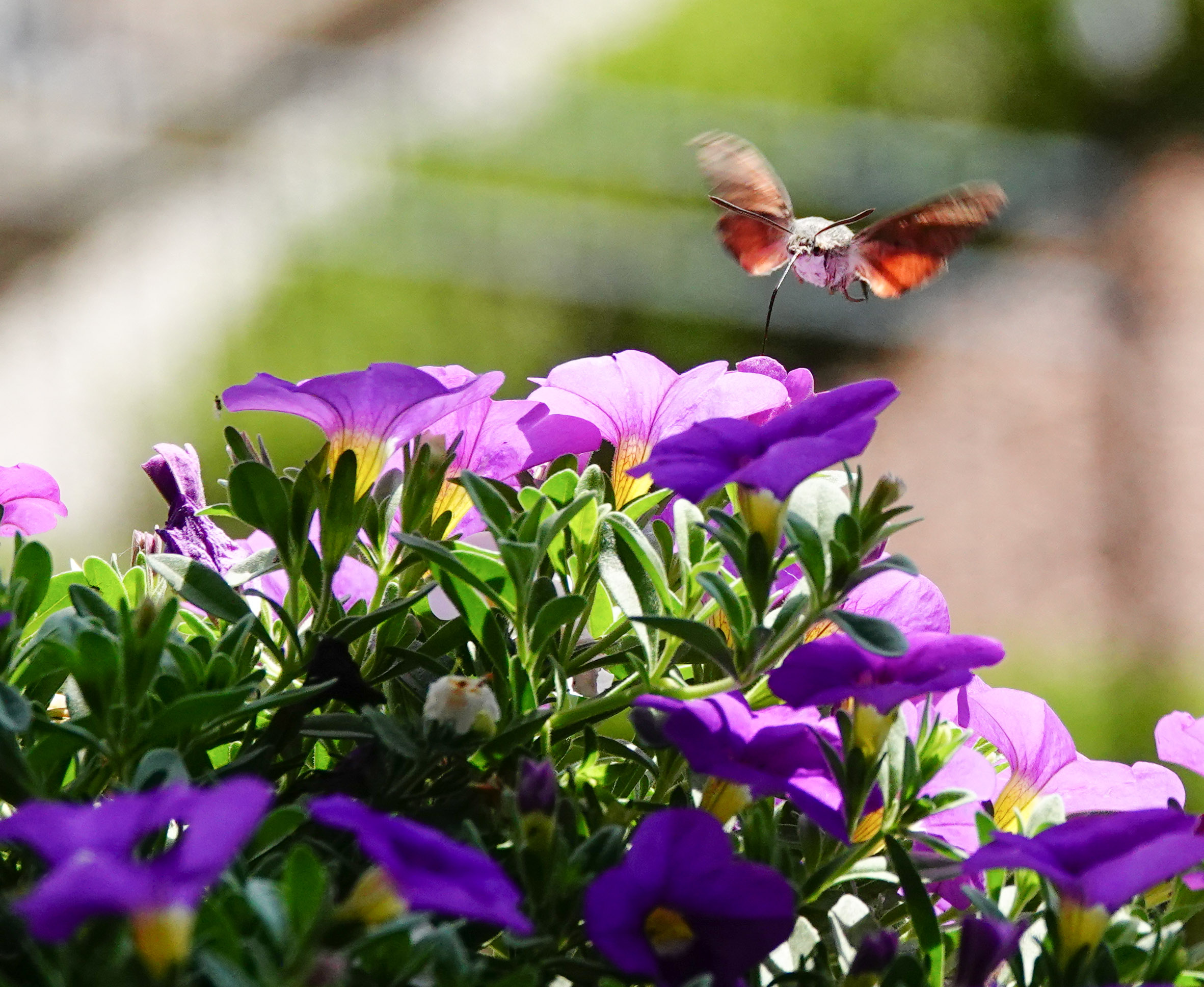 In dat kader vond ik het dan ook heel opmerkelijk, dat ik nu al meerdere malen bezoek kreeg van een kolibrievlinder, waarvan ik dacht dat hij een zeldzaamheid is. Ik voelde me vereerd , dat die bij mij, bij mijn twee plantenbakken, op bezoek komt op mijn balkon! Of is de kolibrievlinder inmiddels minder een zeldzaamheid geworden?