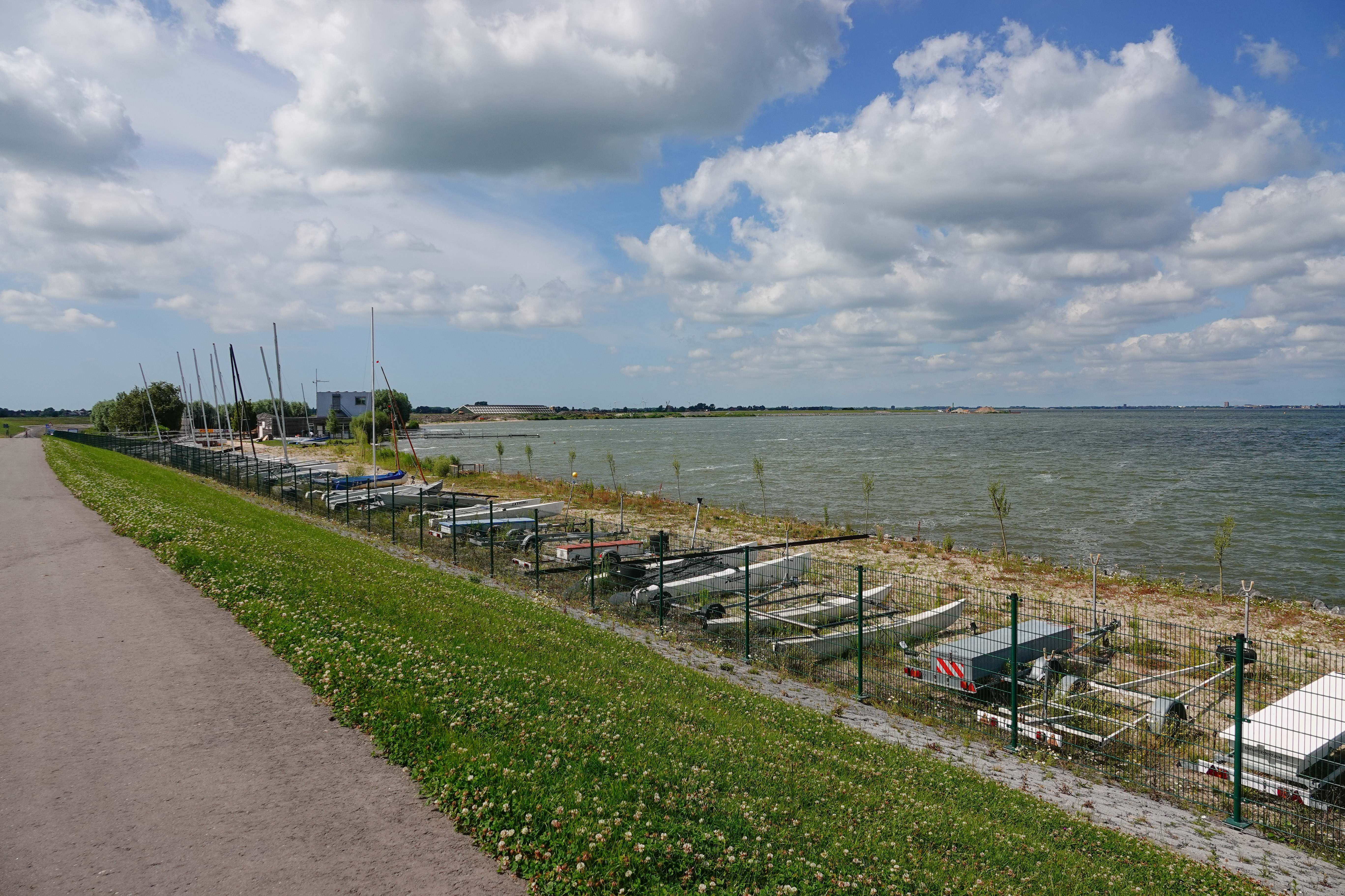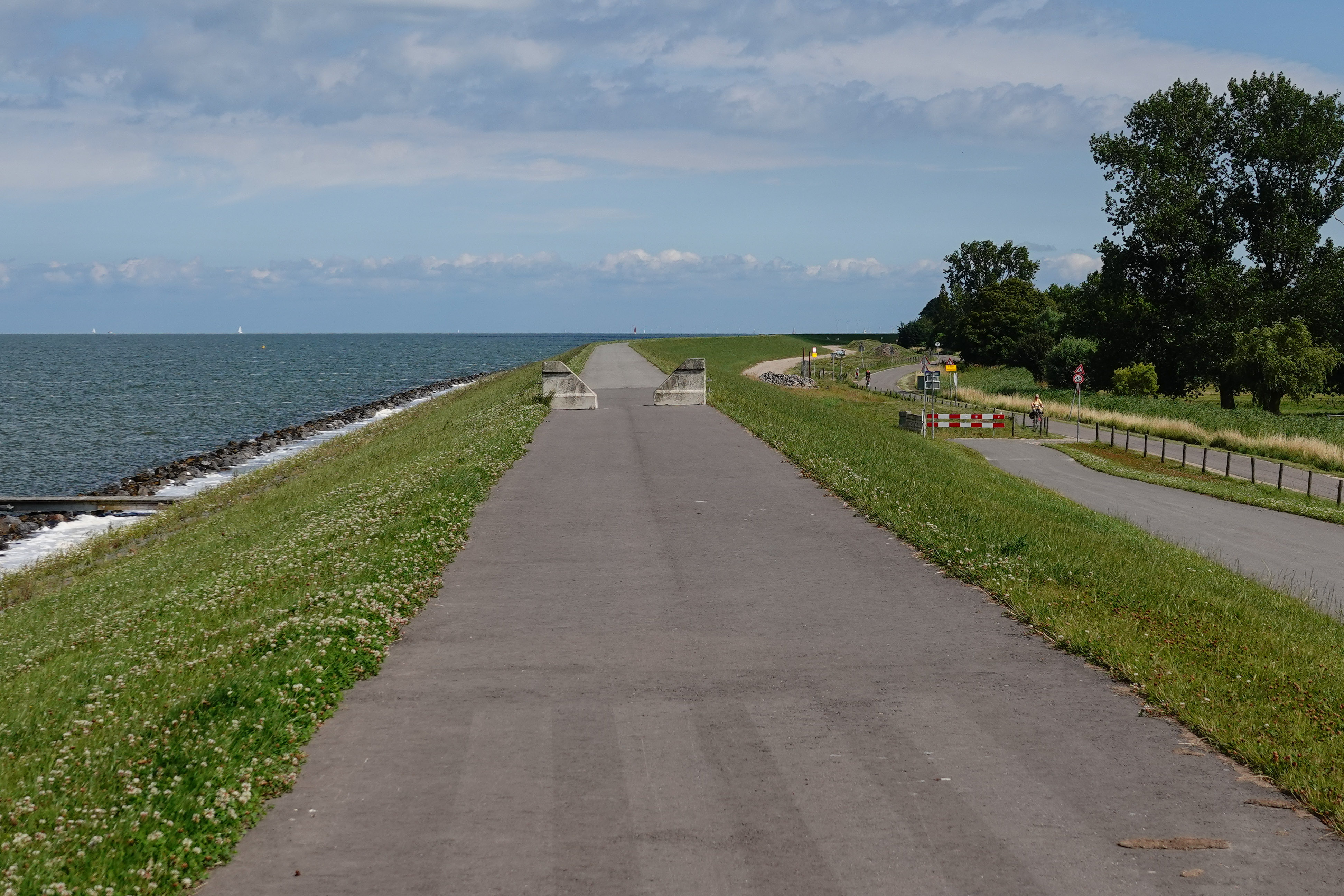 Uitgerust en wel begonnen I en ik aan de terugtocht. We gingen niet rechtstreeks naar huis, maar fietsten richting Warder en de dijk van het IJsselmeer. Die dijk volgden we tot aan Katwoude. Daar ging het weer landinwaarts richting ons dorpje. Dat was een fietstocht van rond de 50 km geworden. Het was genieten van ons mooie Waterland. Gelukkig wel met e-bike.