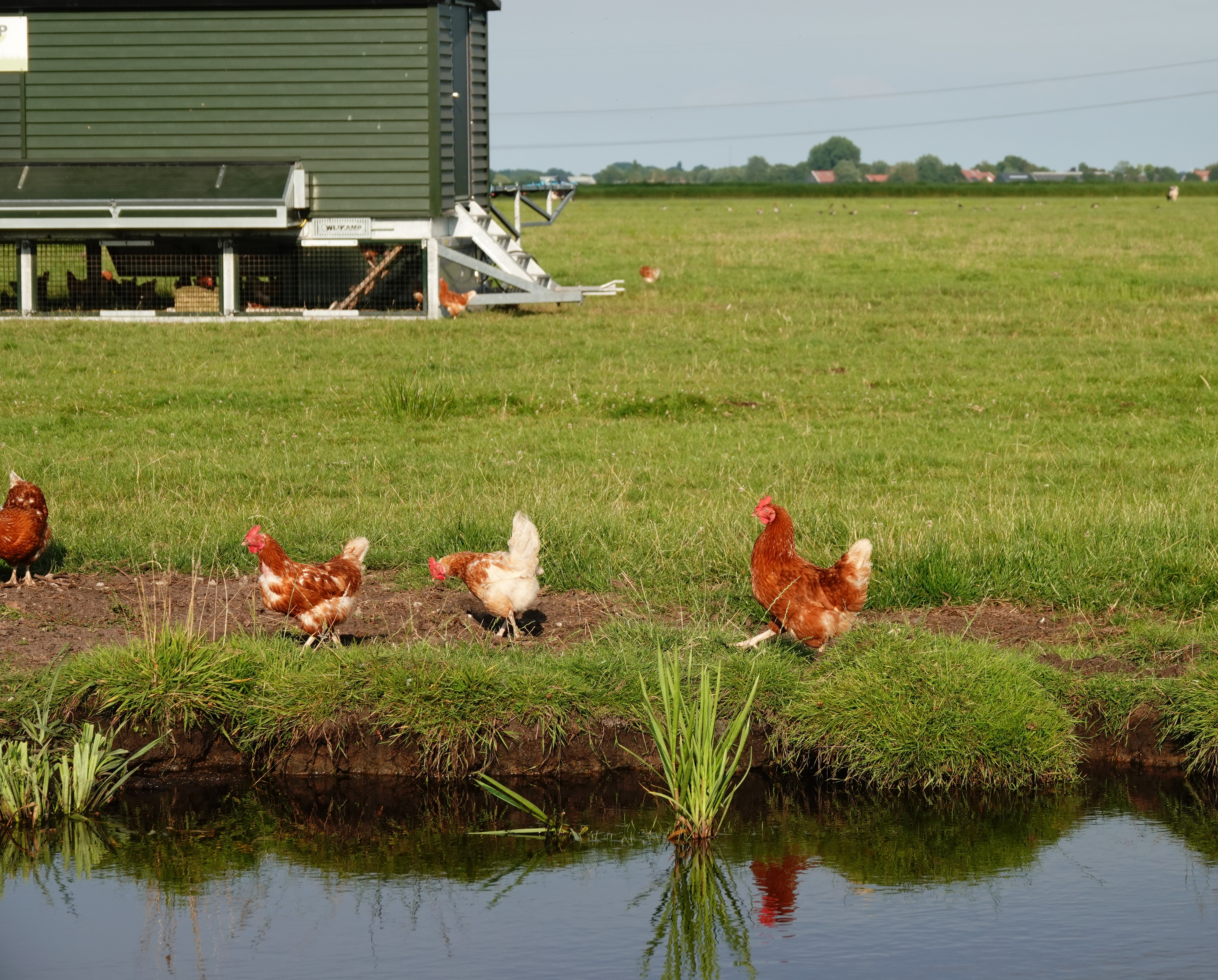 Blijkbaar vonden de vogels het ook warm, want het was opvallend rustig op de kippen na dan, die langs de sloot een heerlijk weitje en slaapkar tot hun beschikking hebben.