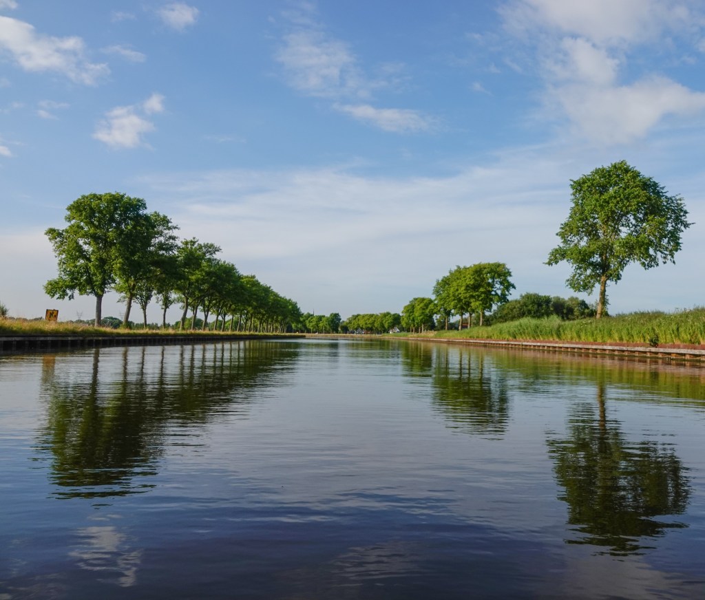 We staken het Noordhollands-kanaal over, waar het water bijna rimpelloos was.
