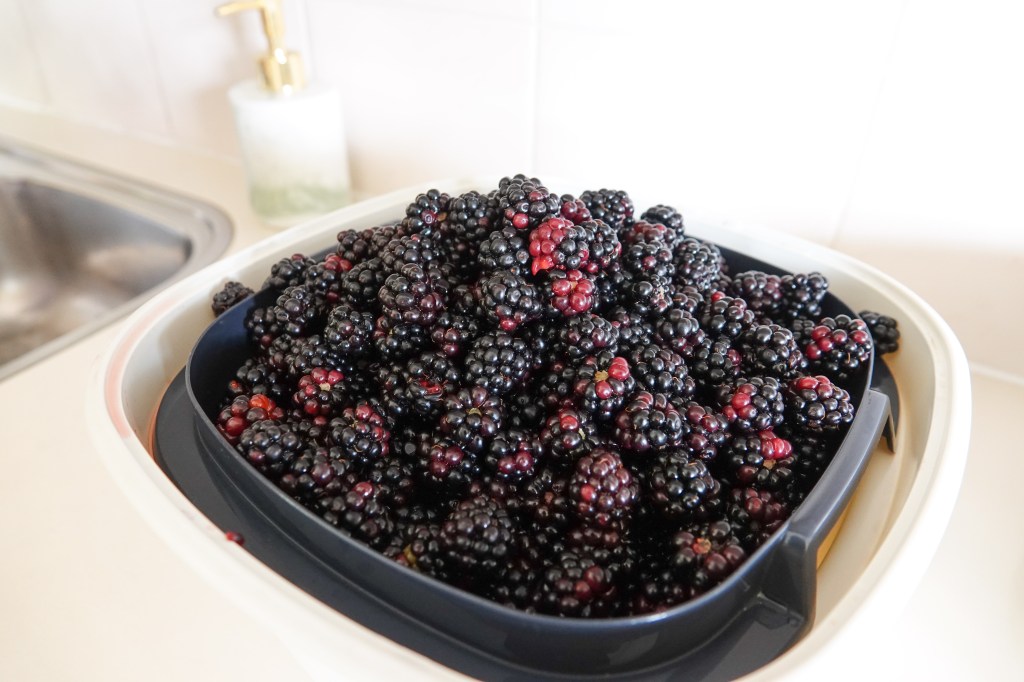 Niet ver bij ons vandaan hadden we een plek gevonden, waar de bramen rijkelijk groeien.