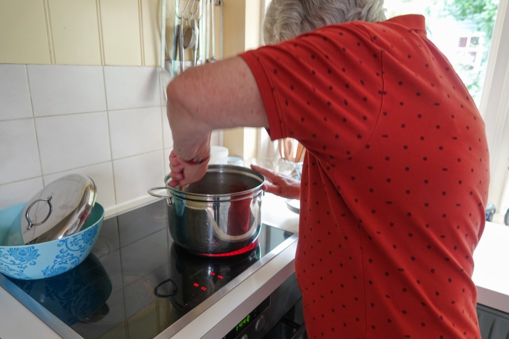 ging alles in de pan en werd het, voorzien van gelei-suiker, aan de kook gebracht.