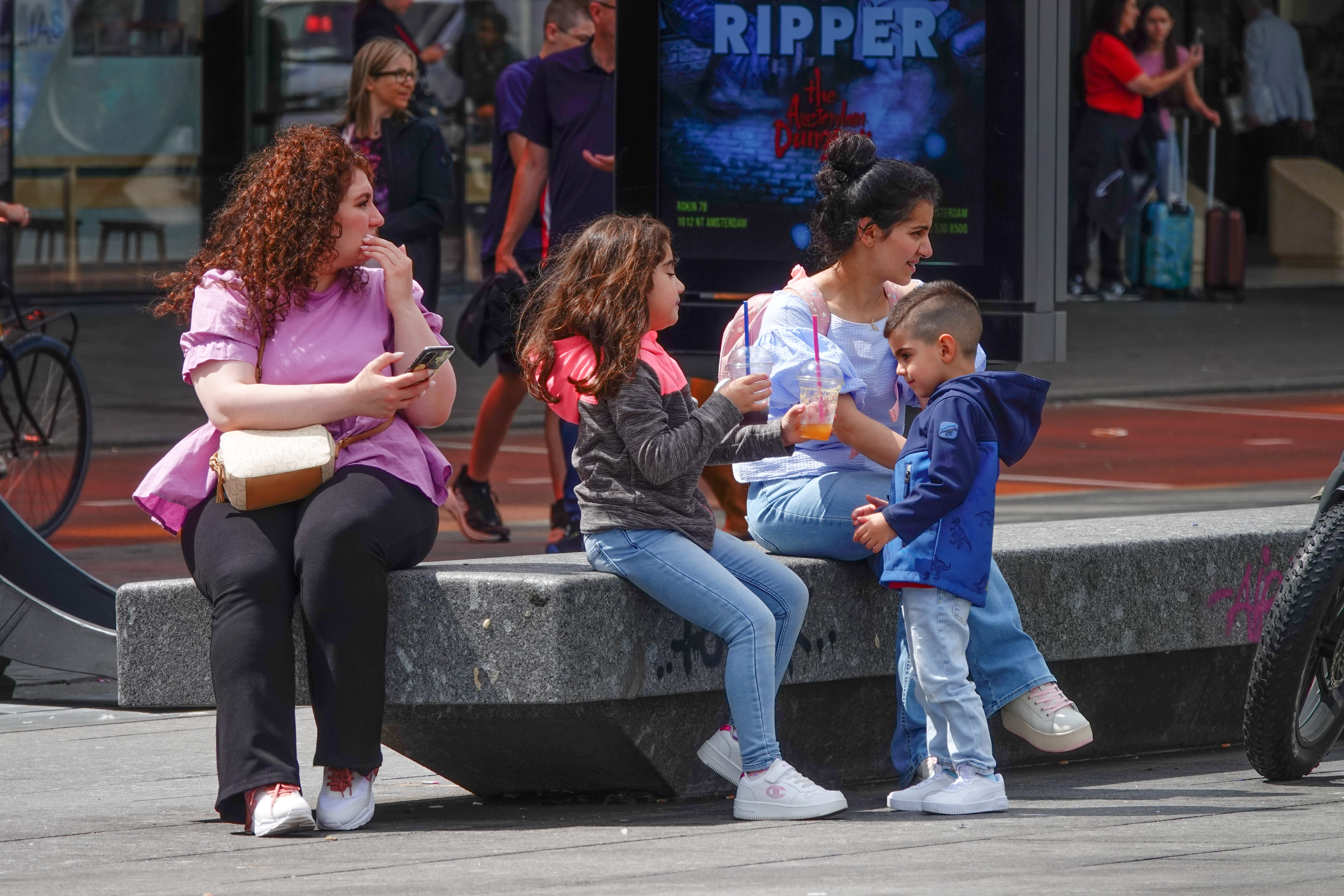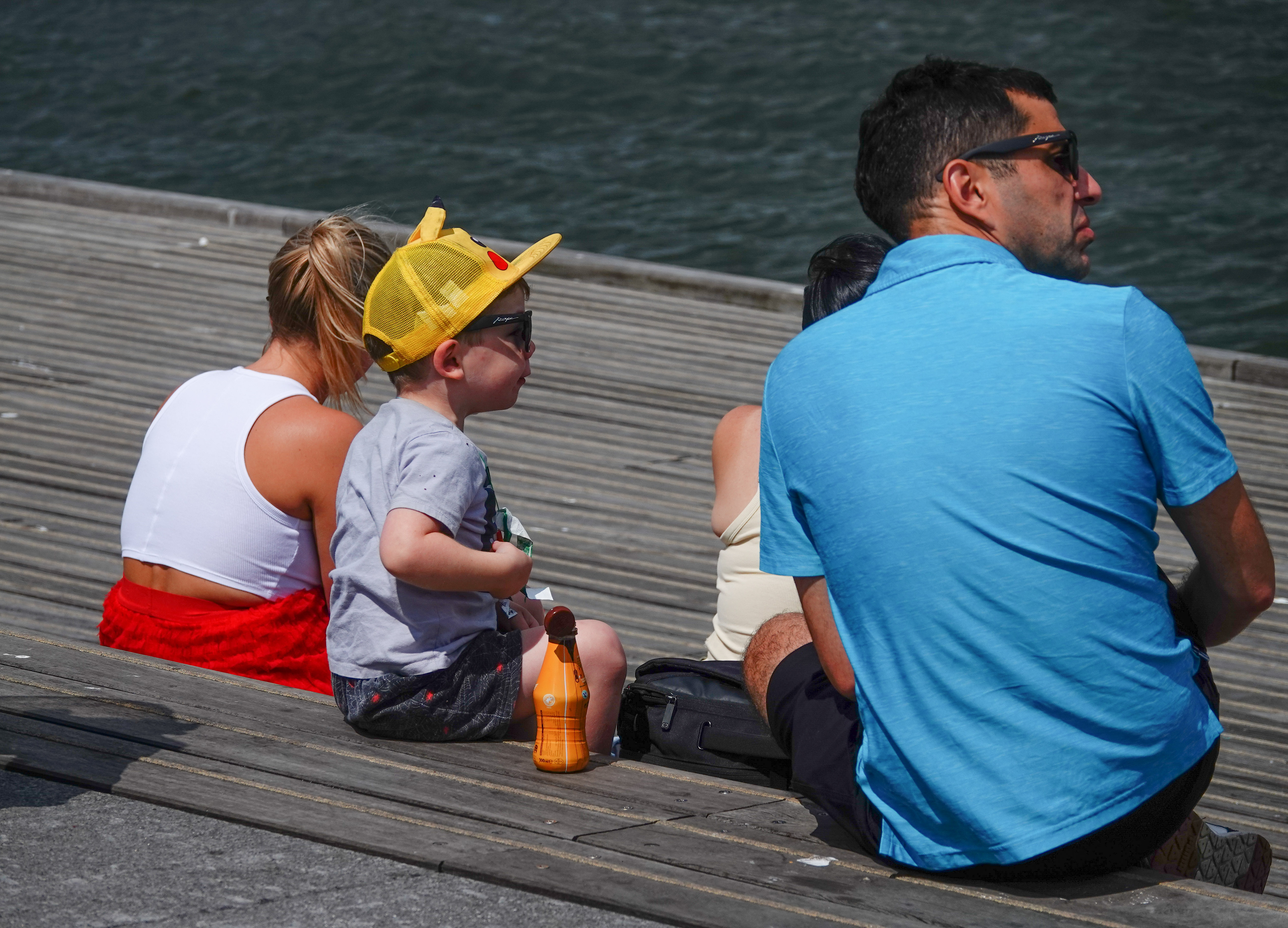 Op een mooie zomerdag is het goed toeven aan de IJzijde van het Centraal Station in Amsterdam.