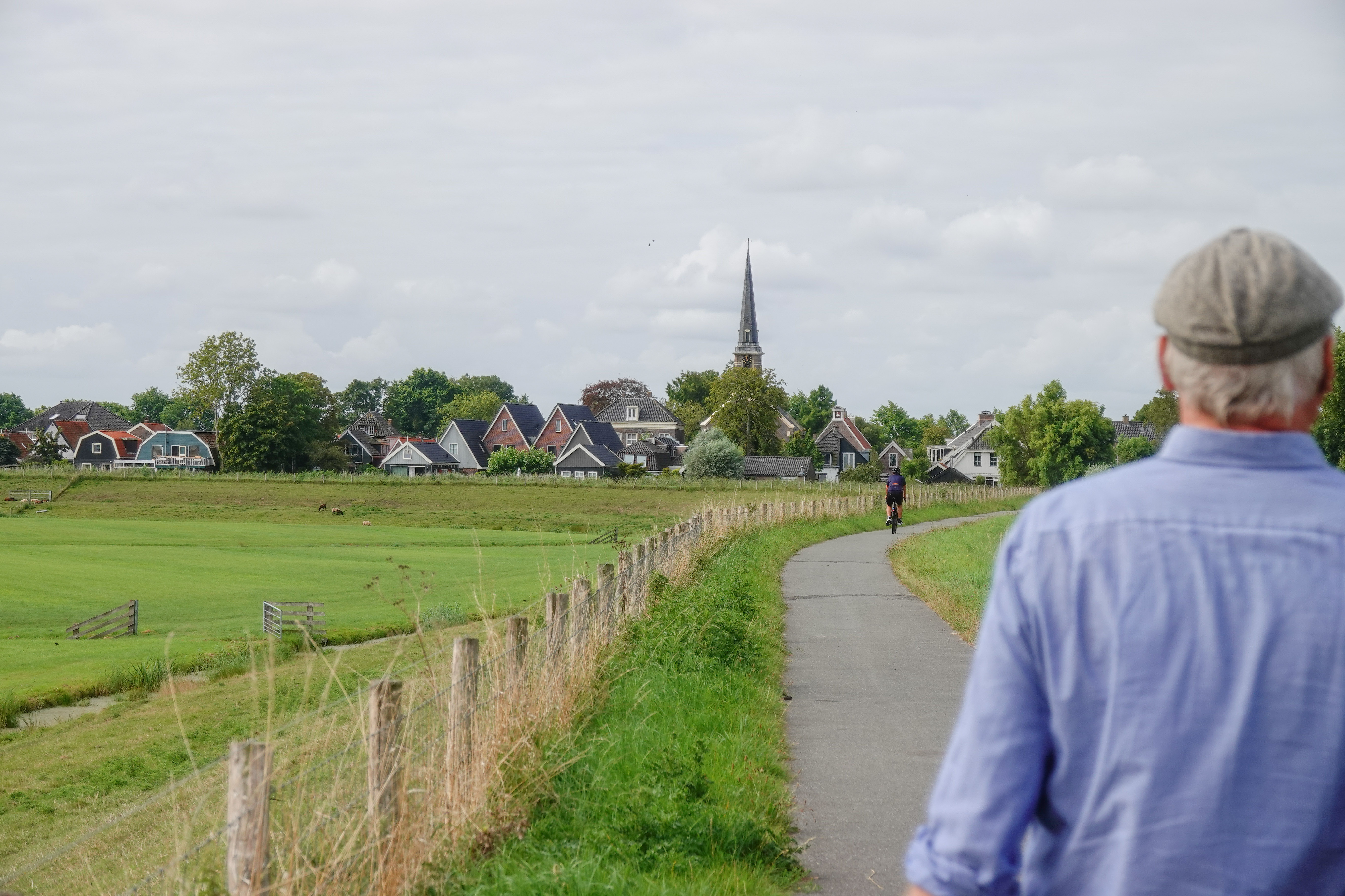 De dijk van de andere kant van de Purmerringvaart werd de route voor de terugtocht. Dan loop je achter het dorp langs.