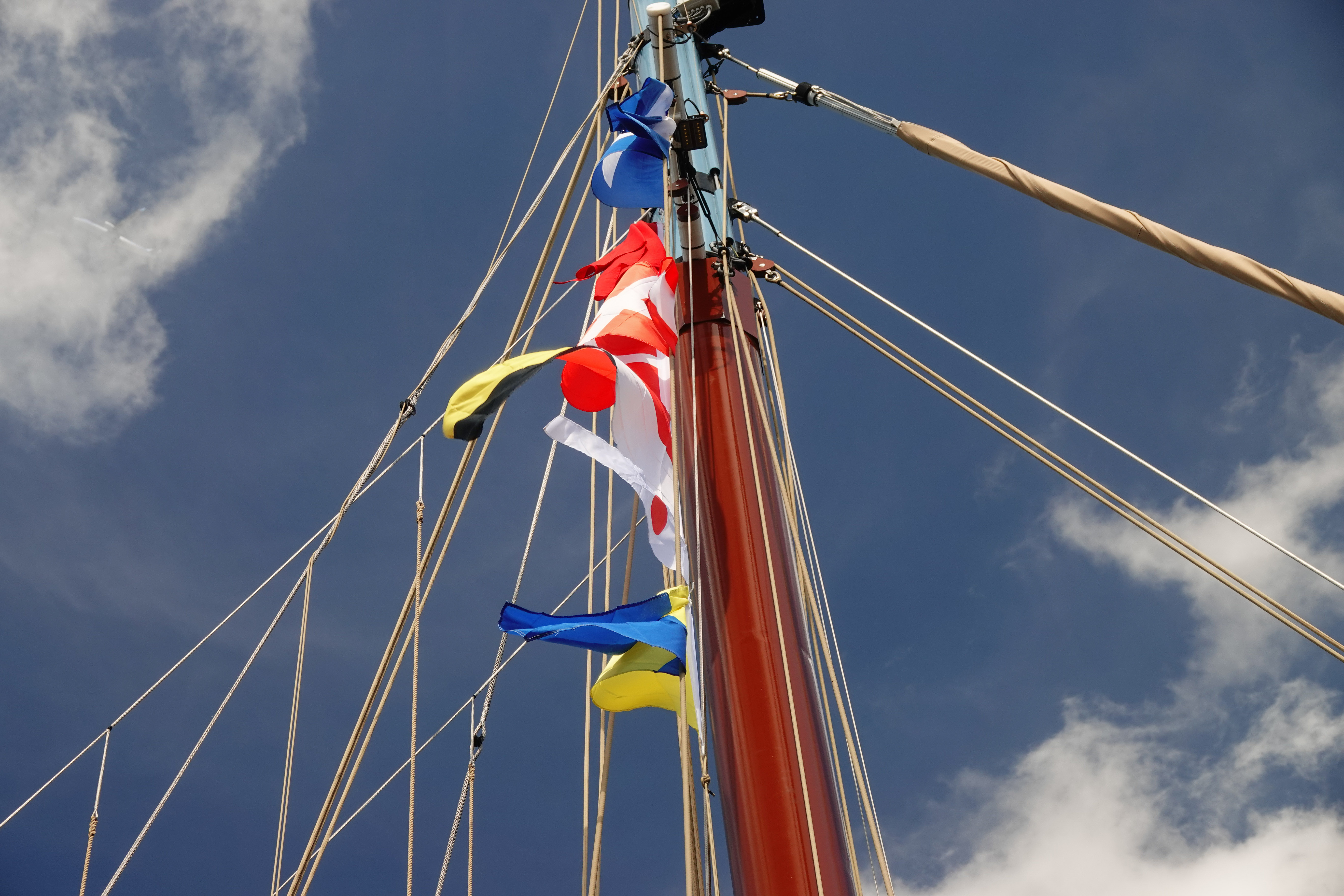 Hun ingenieuze masten en touwenspansels, hun vlaggengewapper gaf een feestgevoel aan het geheel.