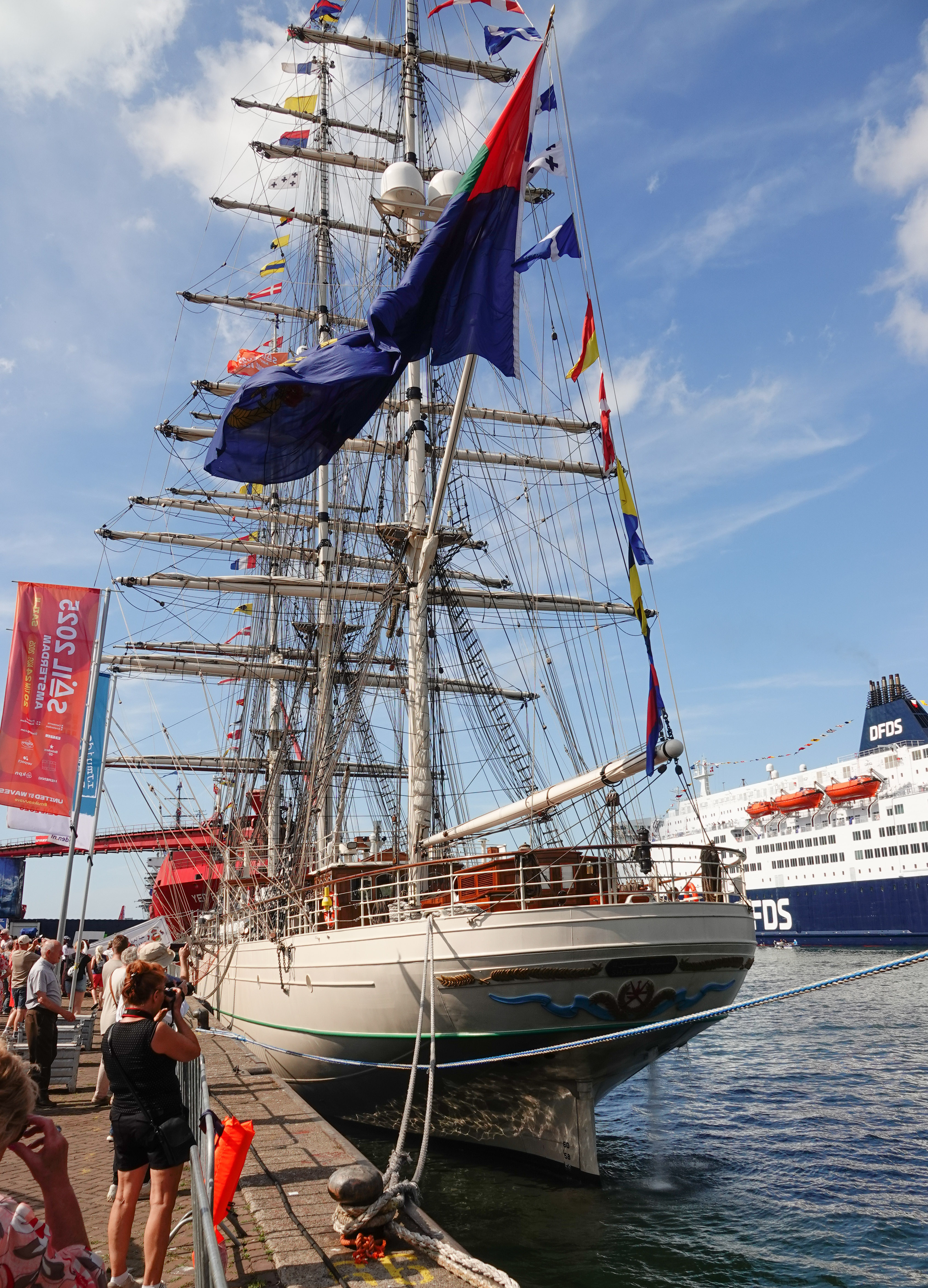 Die grote schepen komen niet allemaal in een keer van zee. Een groot aantal komt van Bremerhaven waar ook een SAIL-evenement plaatsvond. Afhankelijk van de wind komt aantal al eerder en gaat ergens voor anker. Daarom kun je een paar dagen voordat Sail officieel van start gaat in de haven van IJmuiden al een serie tallships bewonderen. Ik had ze nog nooit in het echt gezien.