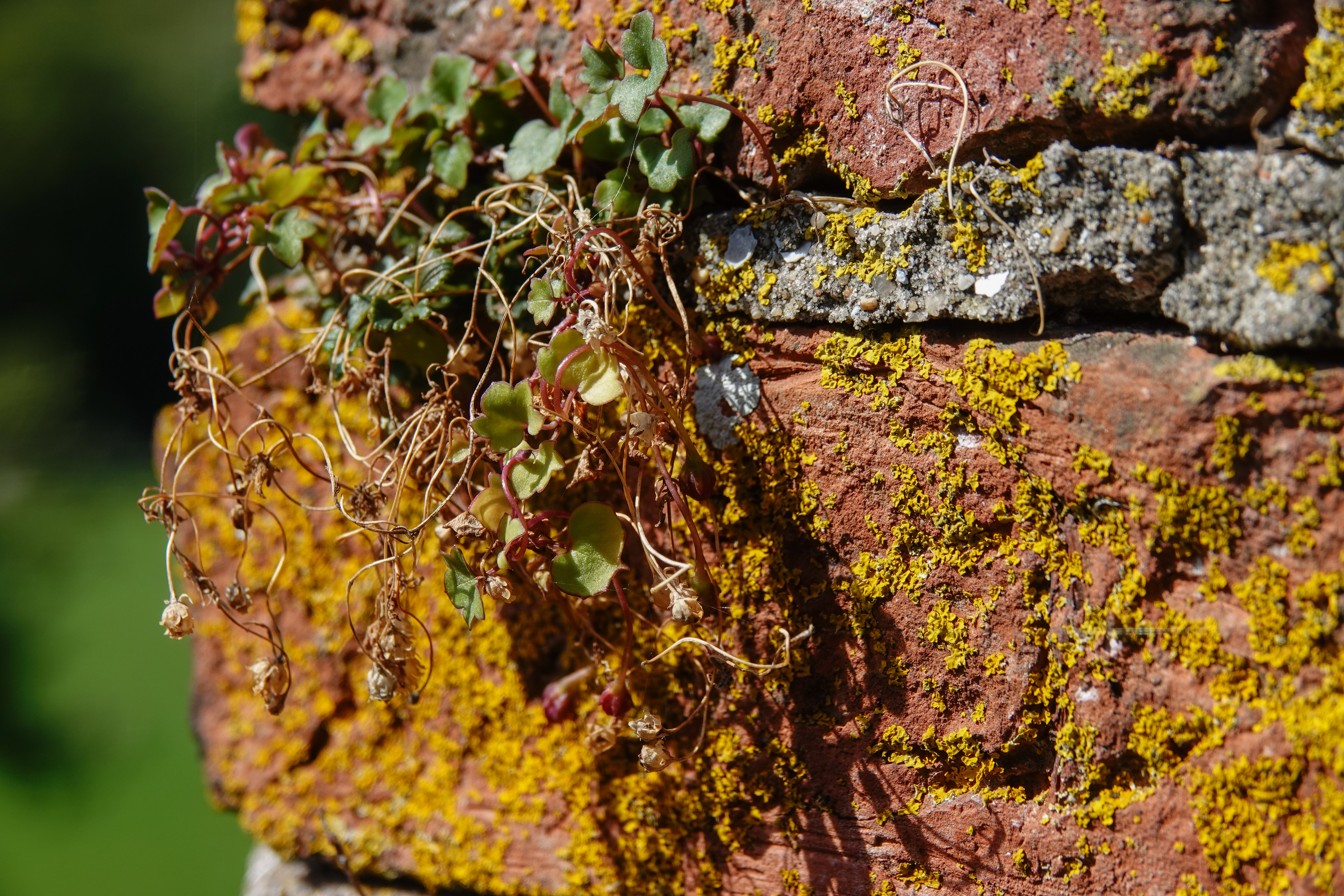 We zwierven verder. Ik hou van oude muren en al helemaal als daar bloemetjes op groeien.