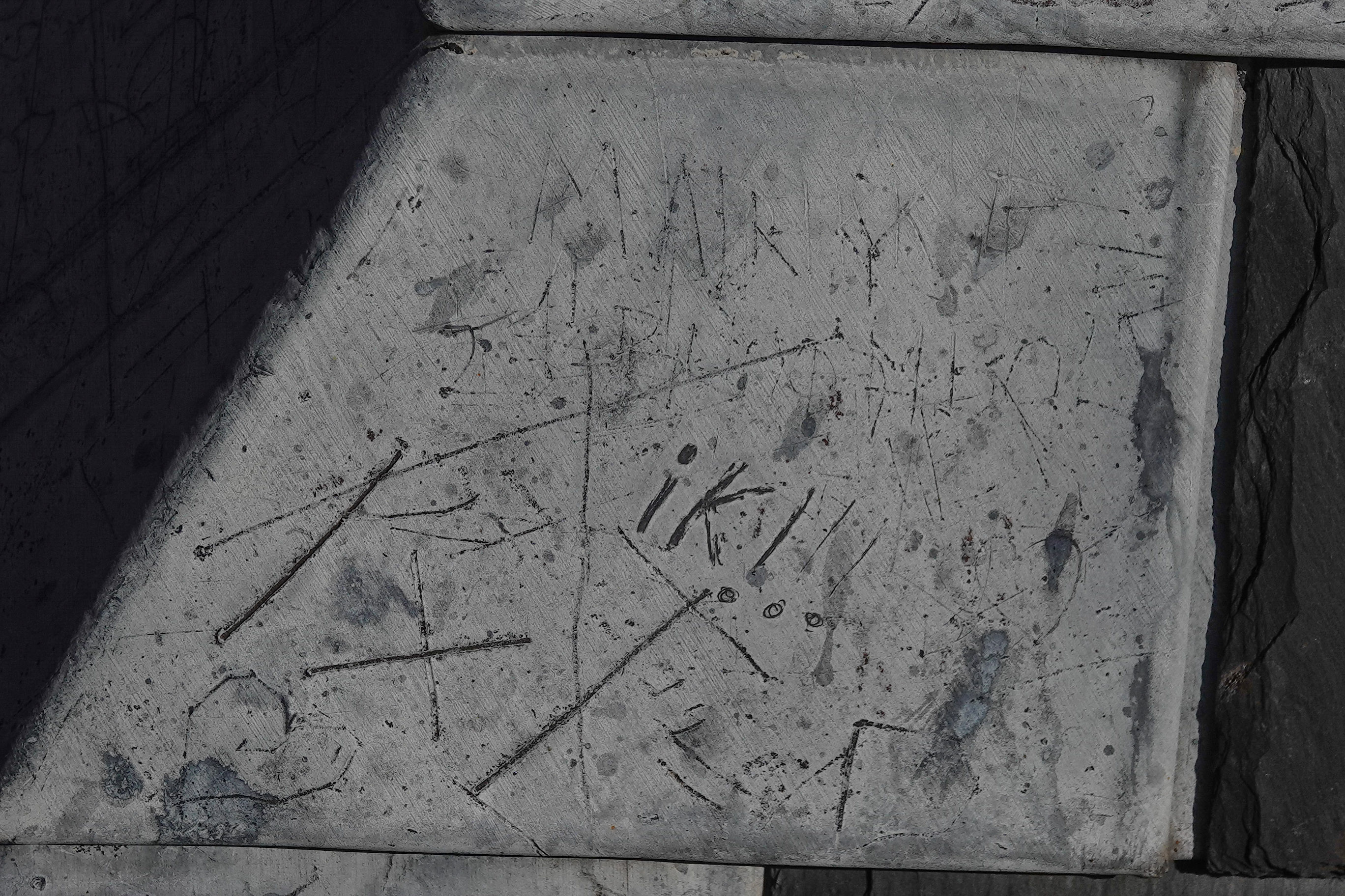 We bereikten het dak. De ruïne is dan weliswaar oud, maar je ziet, dat hij goed onderhouden wordt. Het dak is zelfs helemaal nieuw met leistenen bedekt, mooi in stijl gedaan.