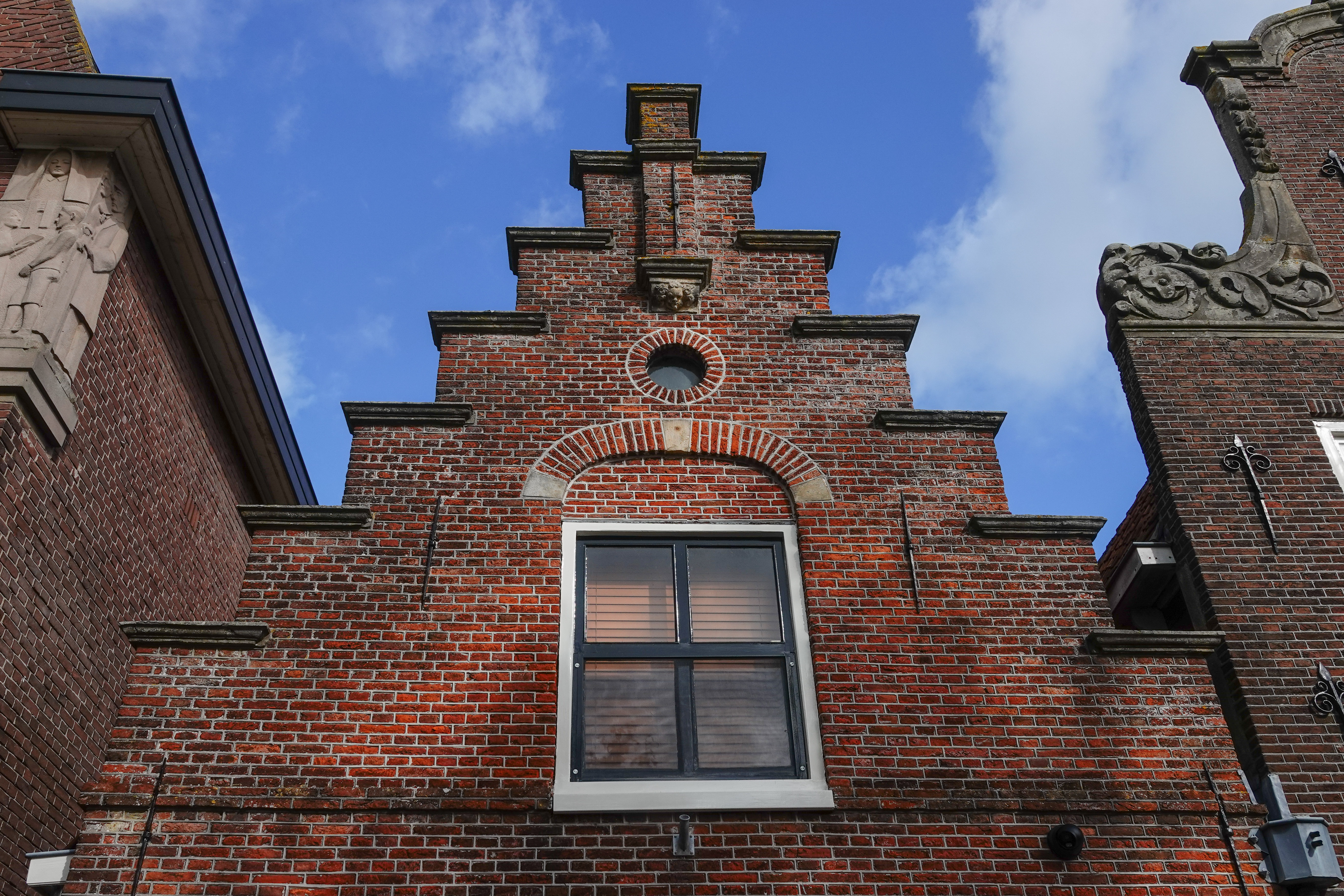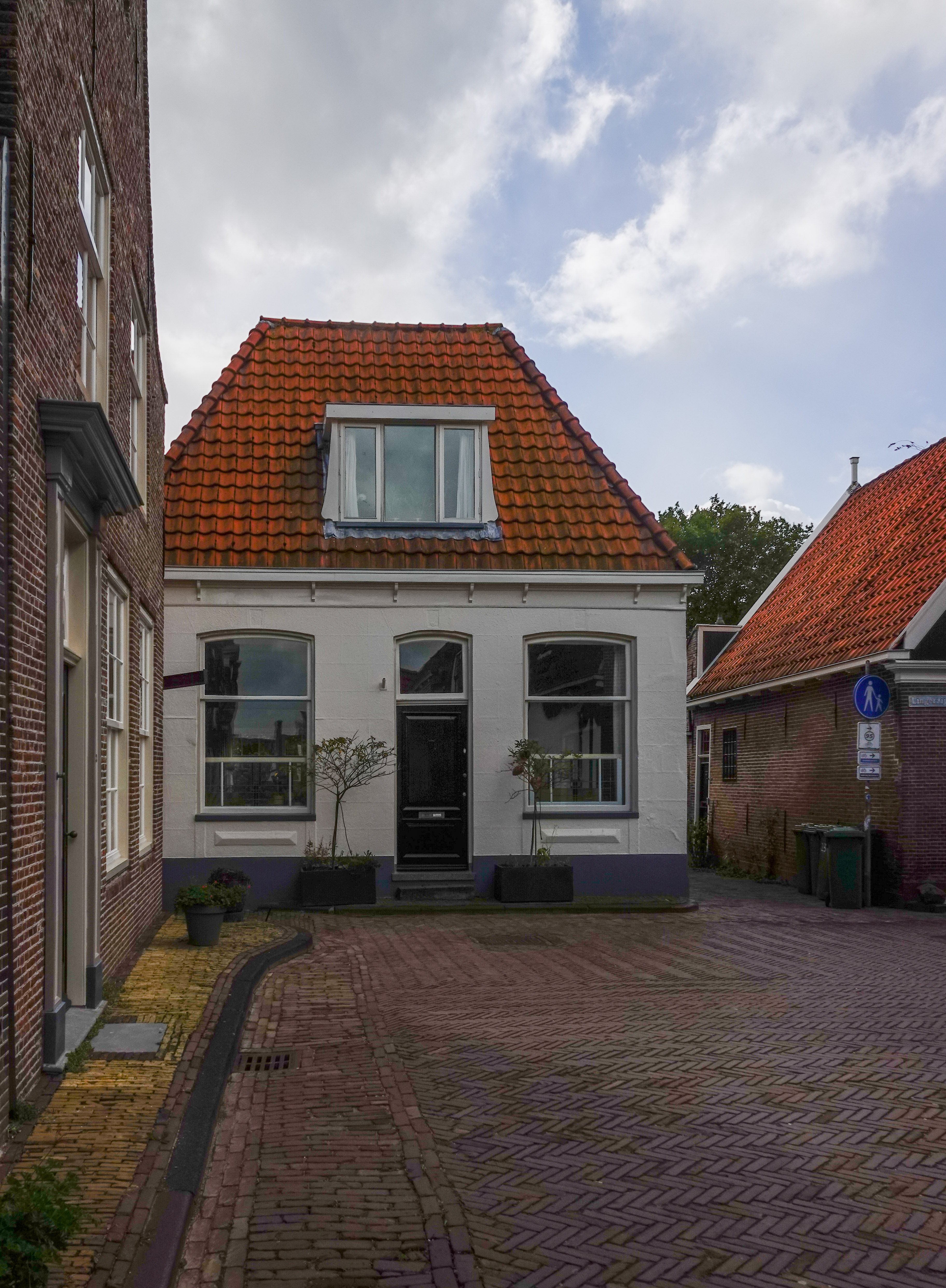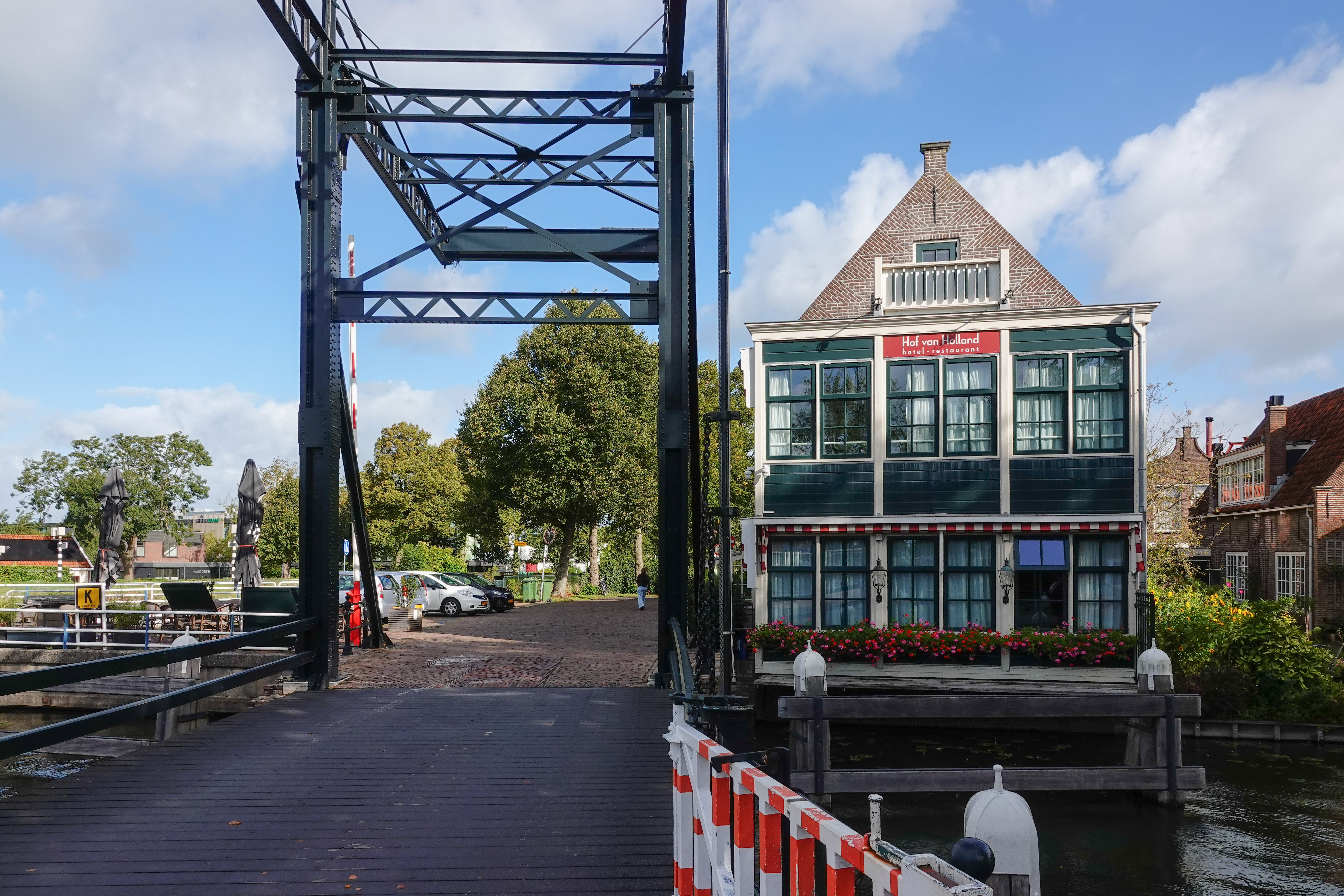 Er stond een flinke storm. In combinatie met af en toe een bui leek het beter om maar in de beschutting van een stad te gaan wandelen met de mensen van Huis-aan-het-Water. Het werd Edam. We startten bij het Hof van Holland en hielden eerst de buitenrand van het stadje aan.
