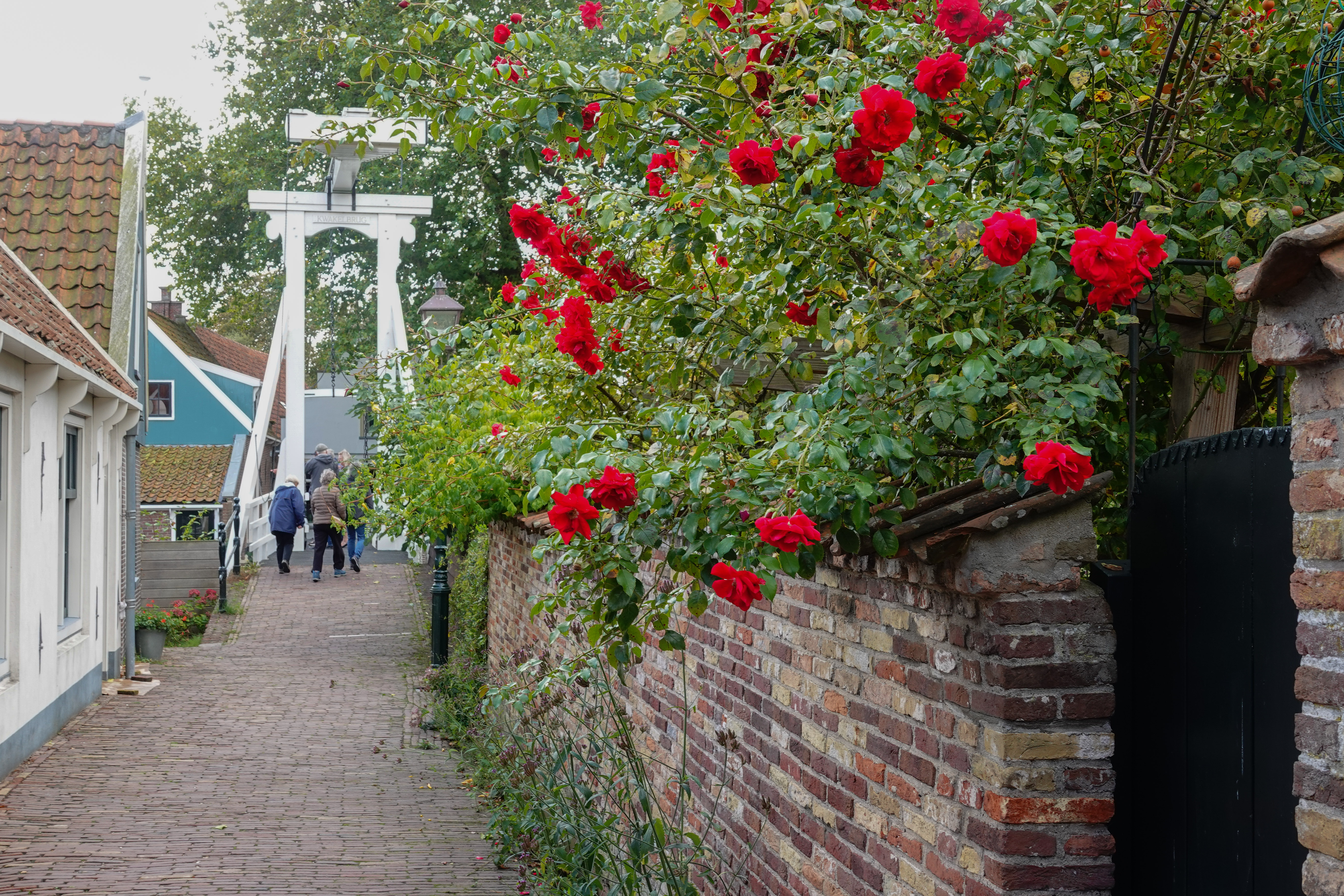 Door een steegje met een prachtig oud muurtje vol rozen steken we het witte bruggetje over en zijn alweer snel bij ons beginpunt.