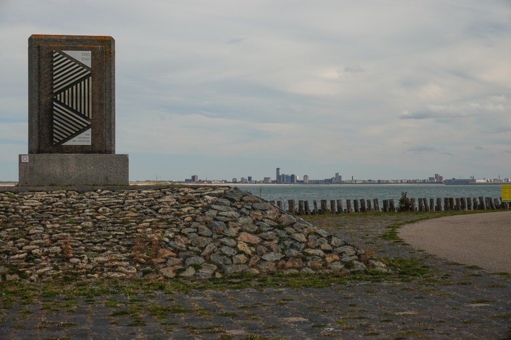 Bovenop de dijk staat ook een herinneringsmonument aan de Deltawerken.