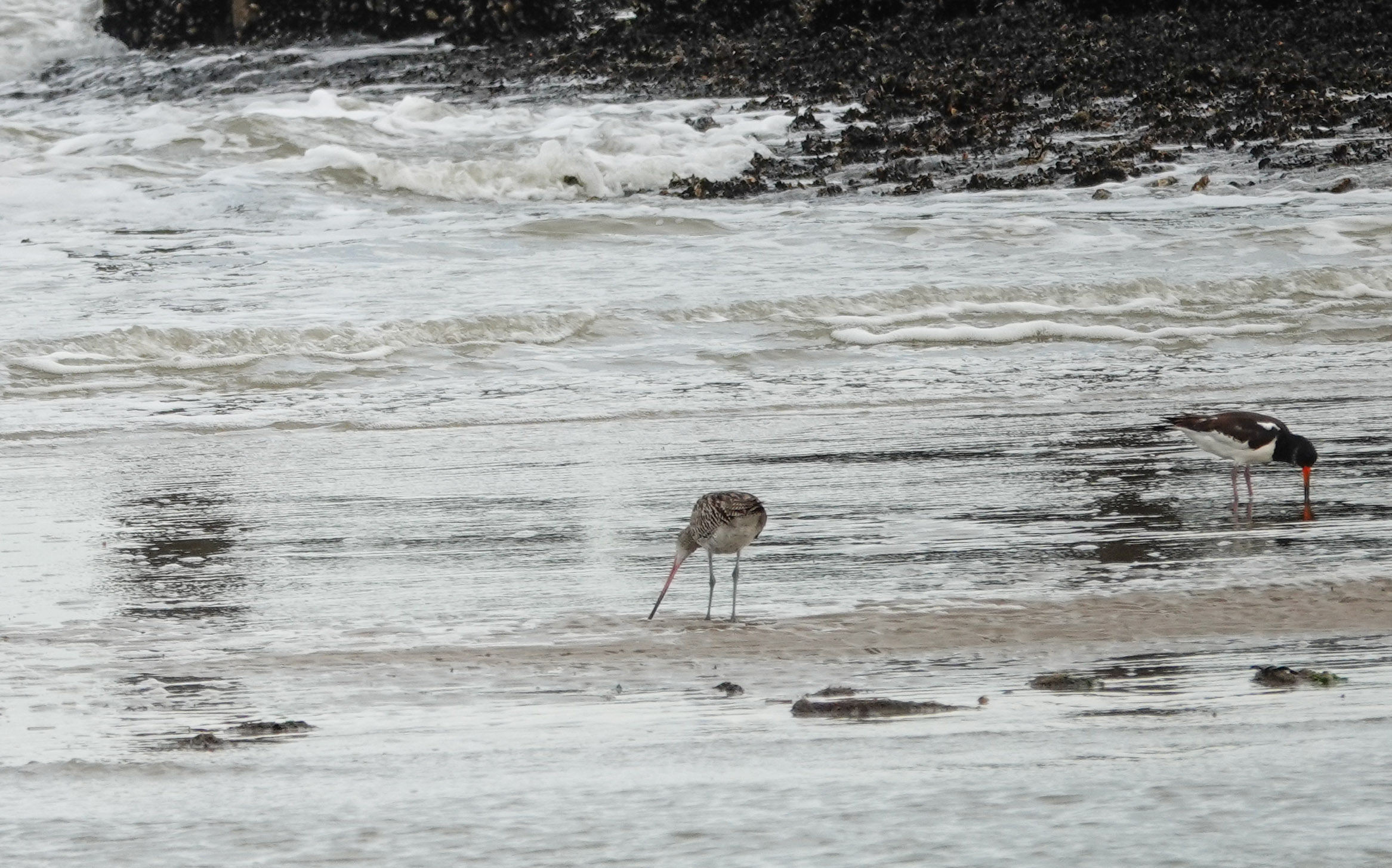 en tot mijn grote vreugde zag ik een wulp tussen de vogels lopen.