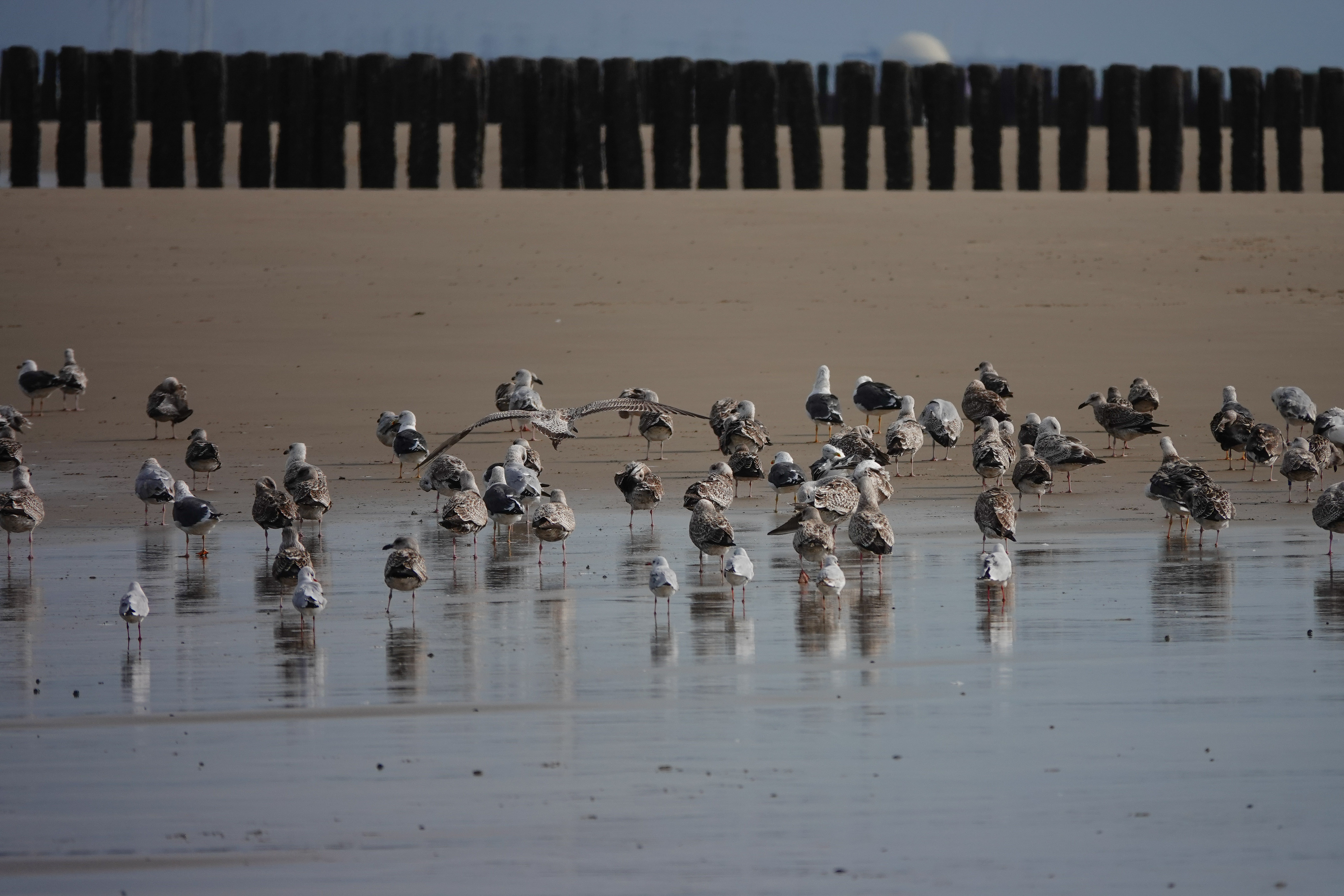 Op het strand stonden overal strandpalen. Op zichzelf al een mooi, fotogeniek gezicht.