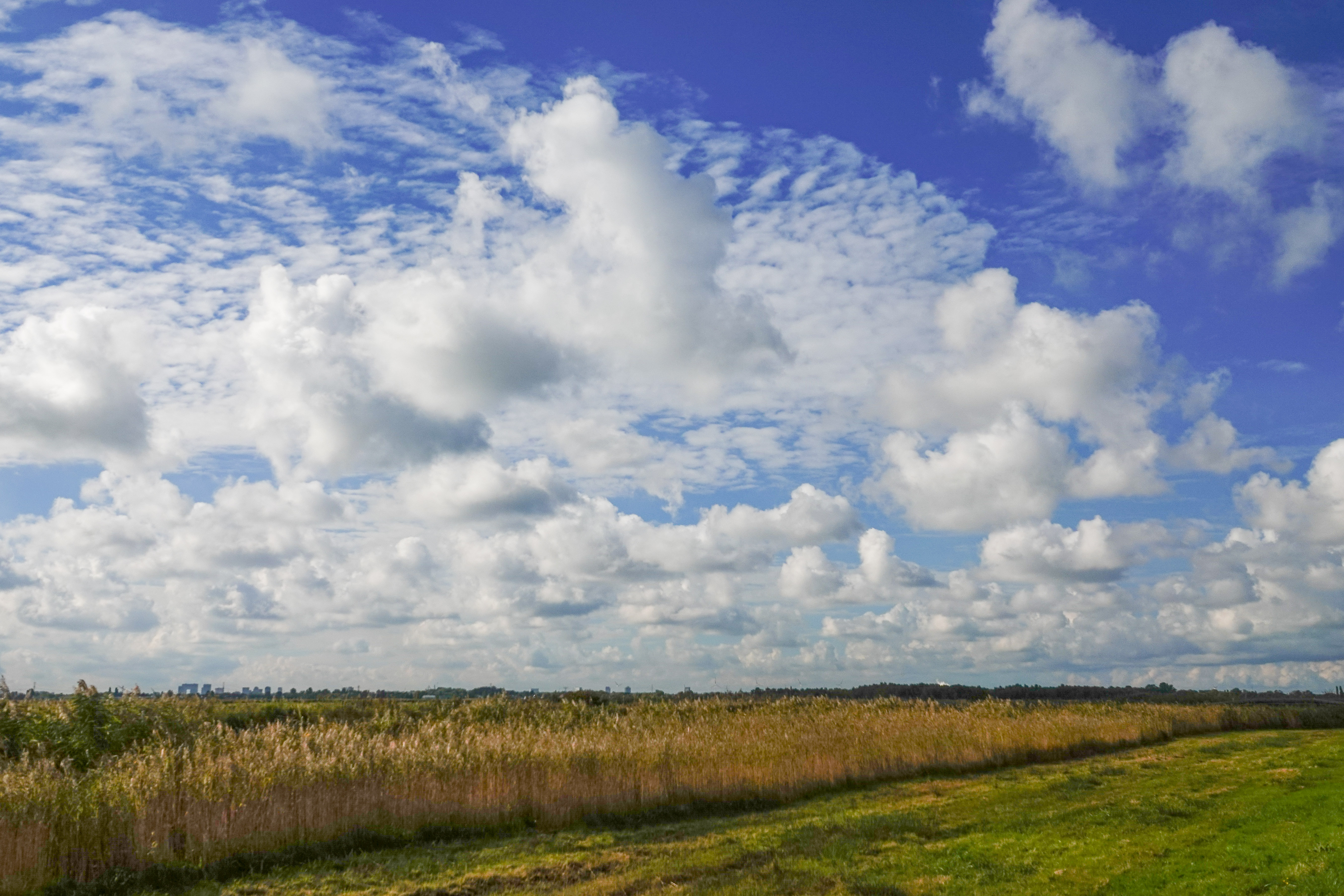 Wat een prachtige wolkenluchten boven het polderlandschap! Mooi!