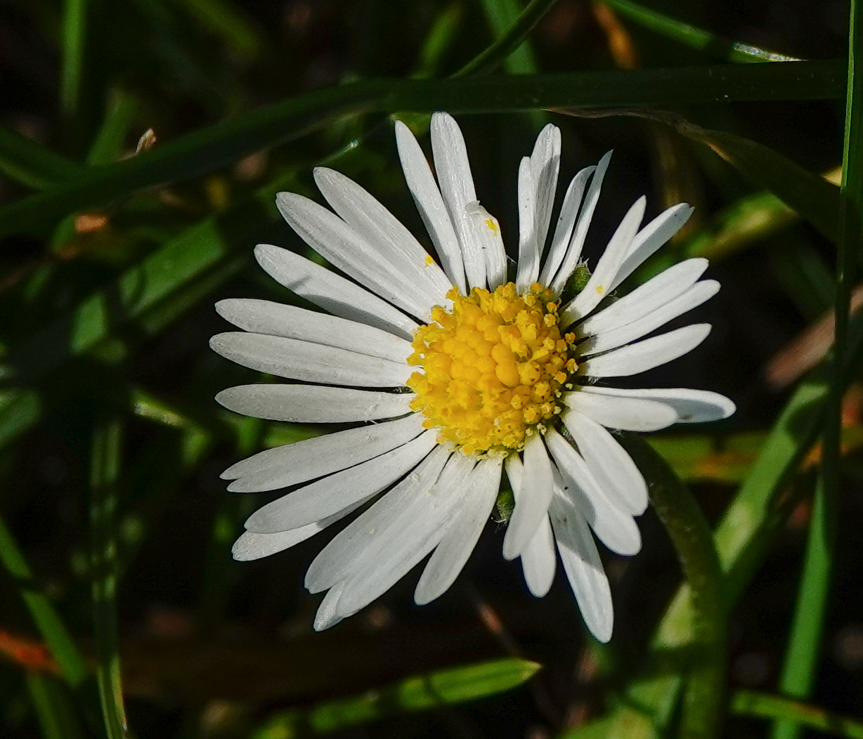 Nu met de blik naar de grond gericht, zag ik een veertje glinsteren van de waterdruppels