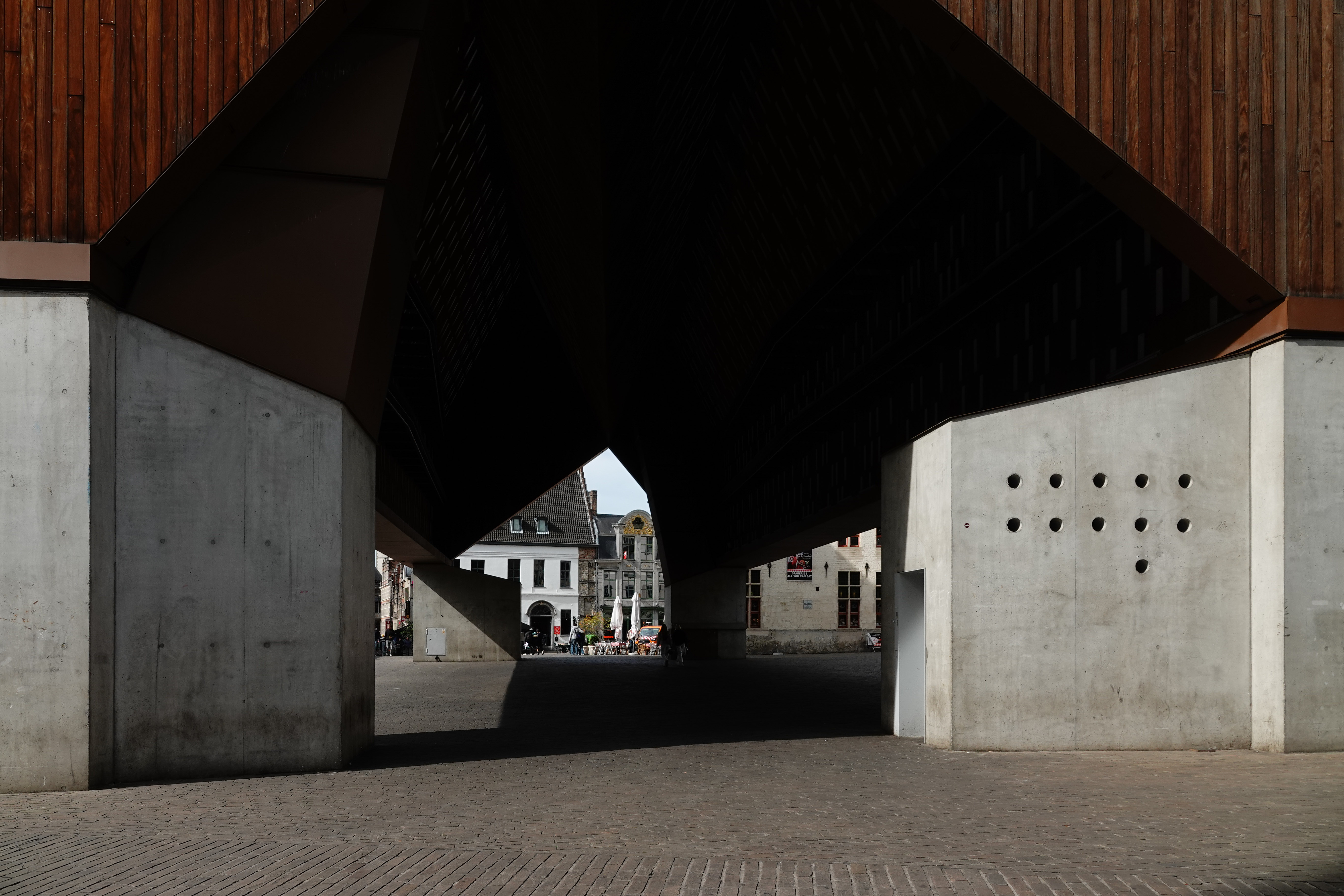 Ik ook. En ik vind die contrasterende stadshal een zeer geslaagd huwelijk met het oude stadscentrum. Al helemaal als je weet dat dit vroeger gewoon een parking was, een plein dat vol stond met auto’s.