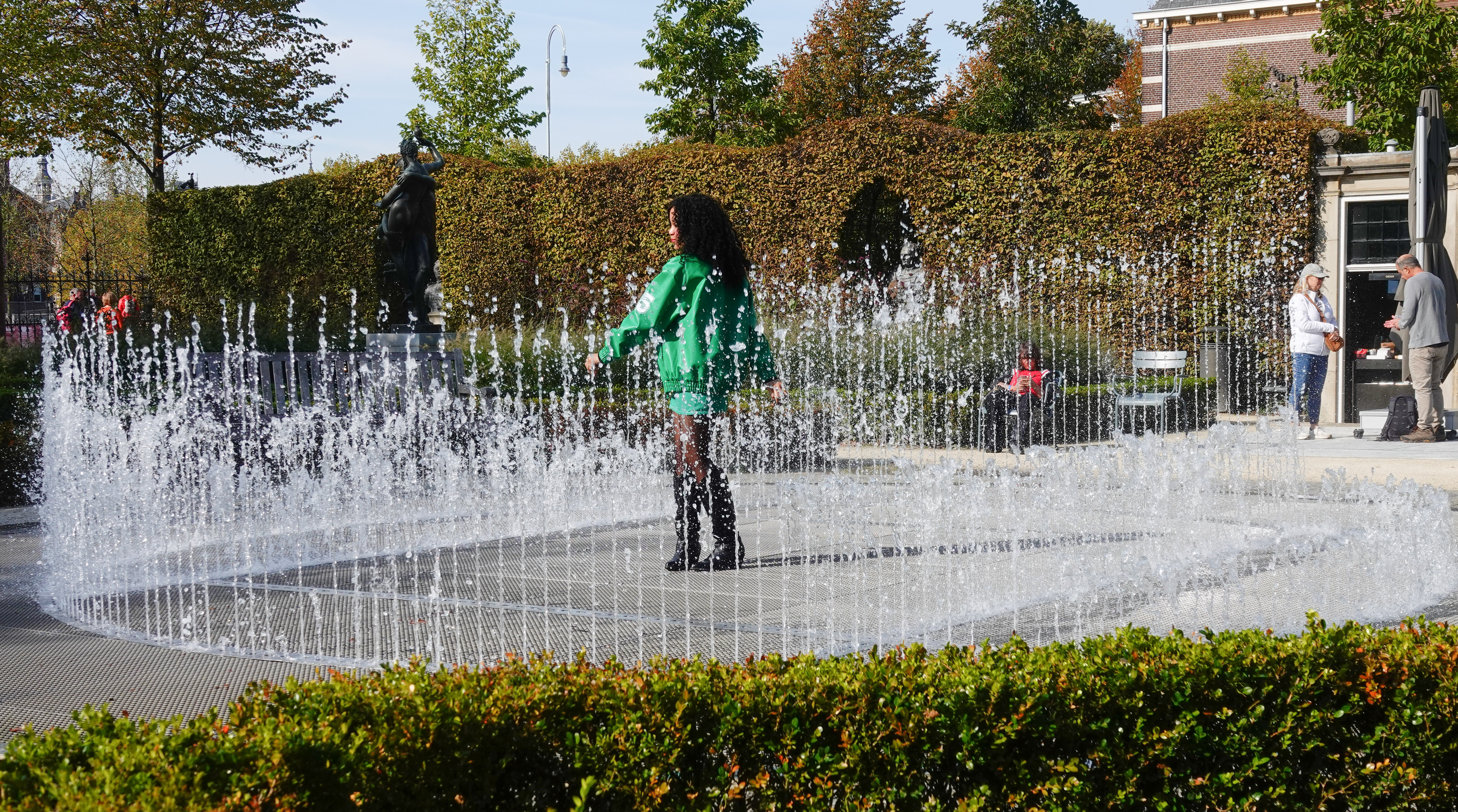 Het is er een komen en gaan van mensen op weg naar of komend uit één van de musea aan het plein.