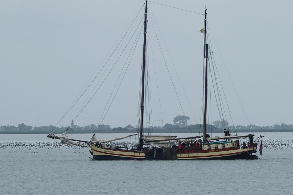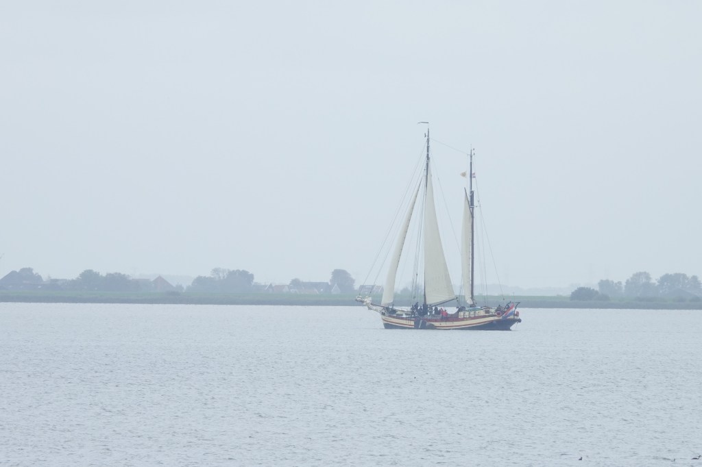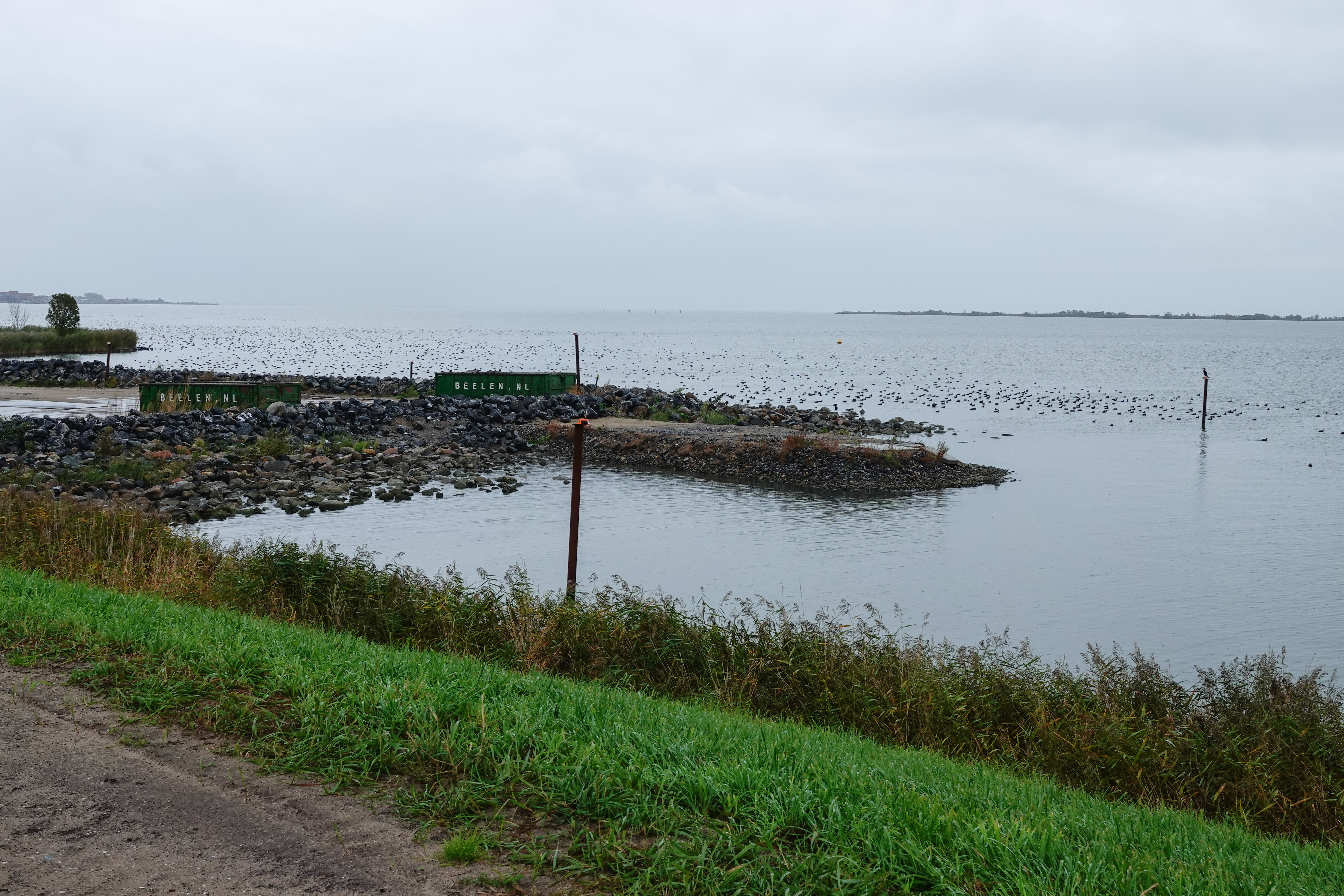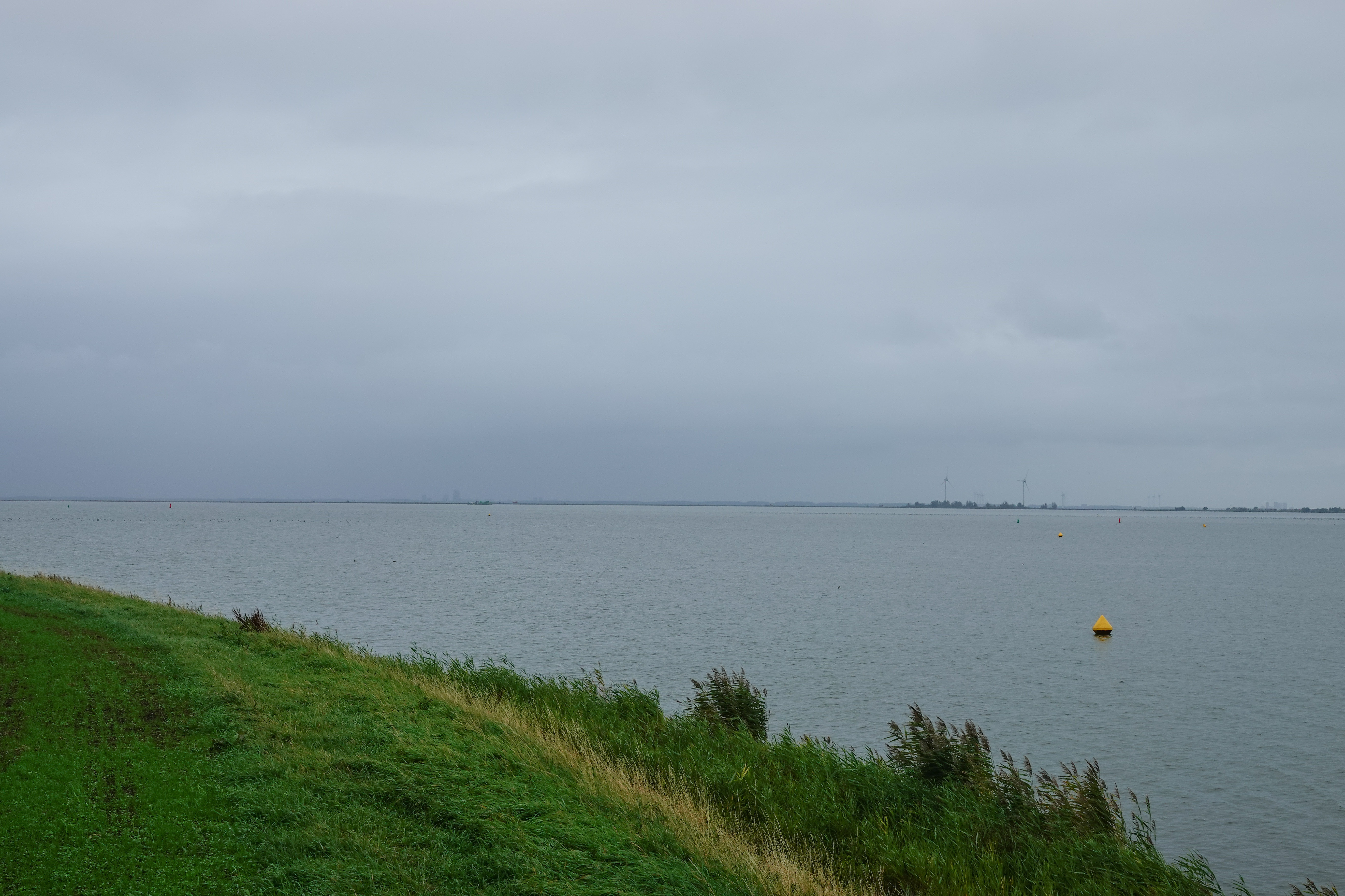 Af en toe is er gelegenheid om de dijk te beklimmen. Dat deden we en zelfs op deze grijze dag was het uitzicht nog mooi.