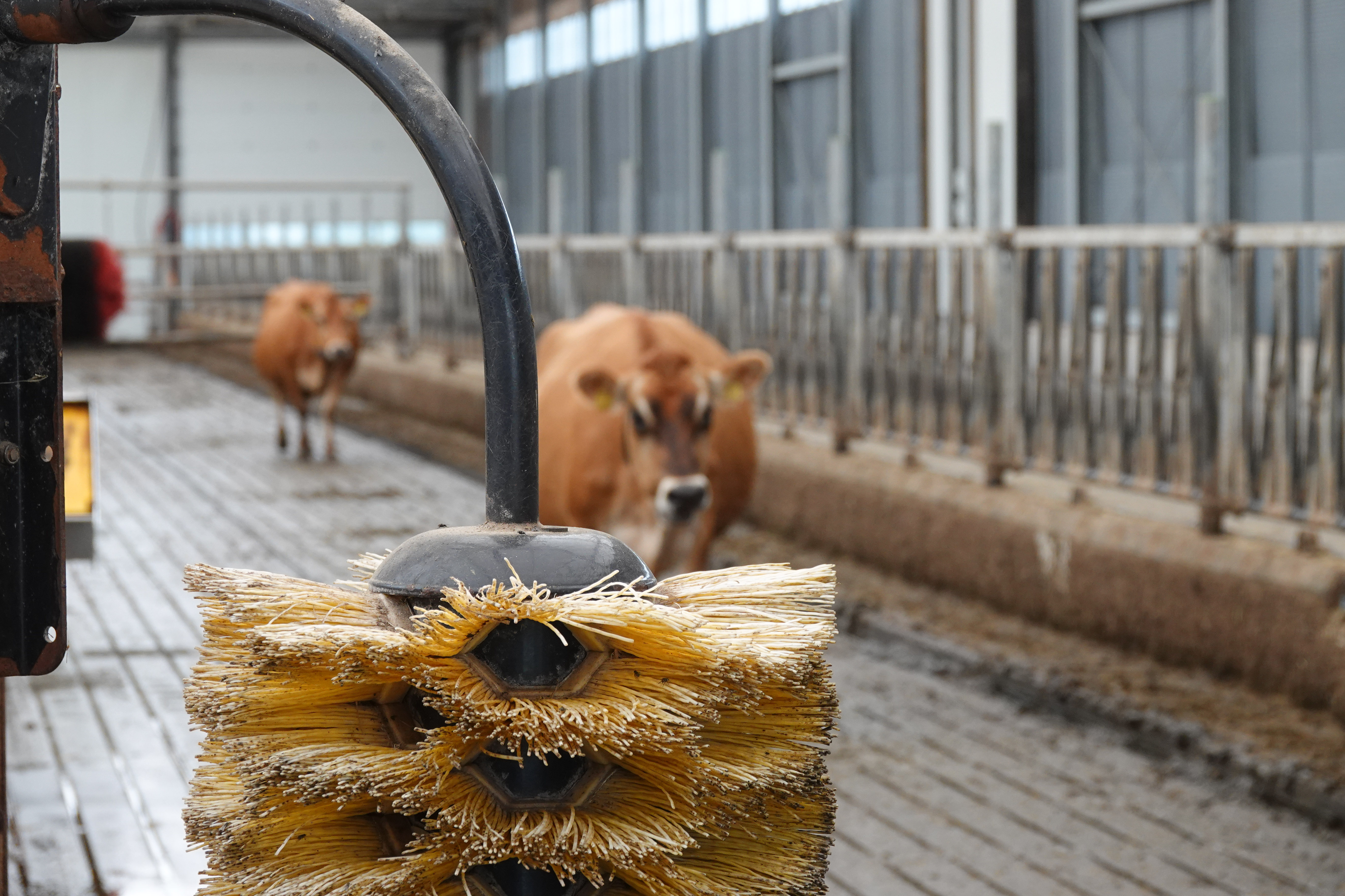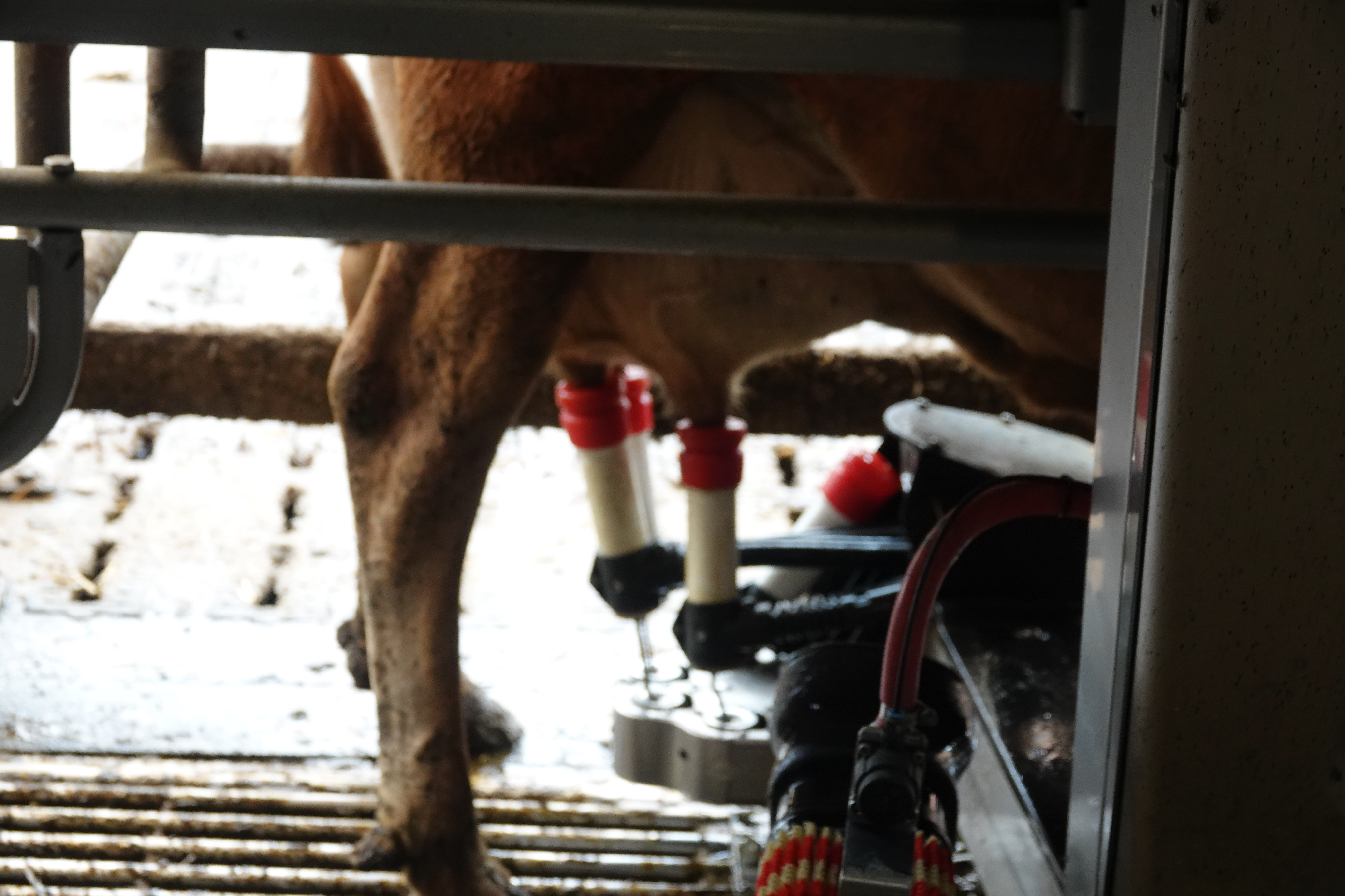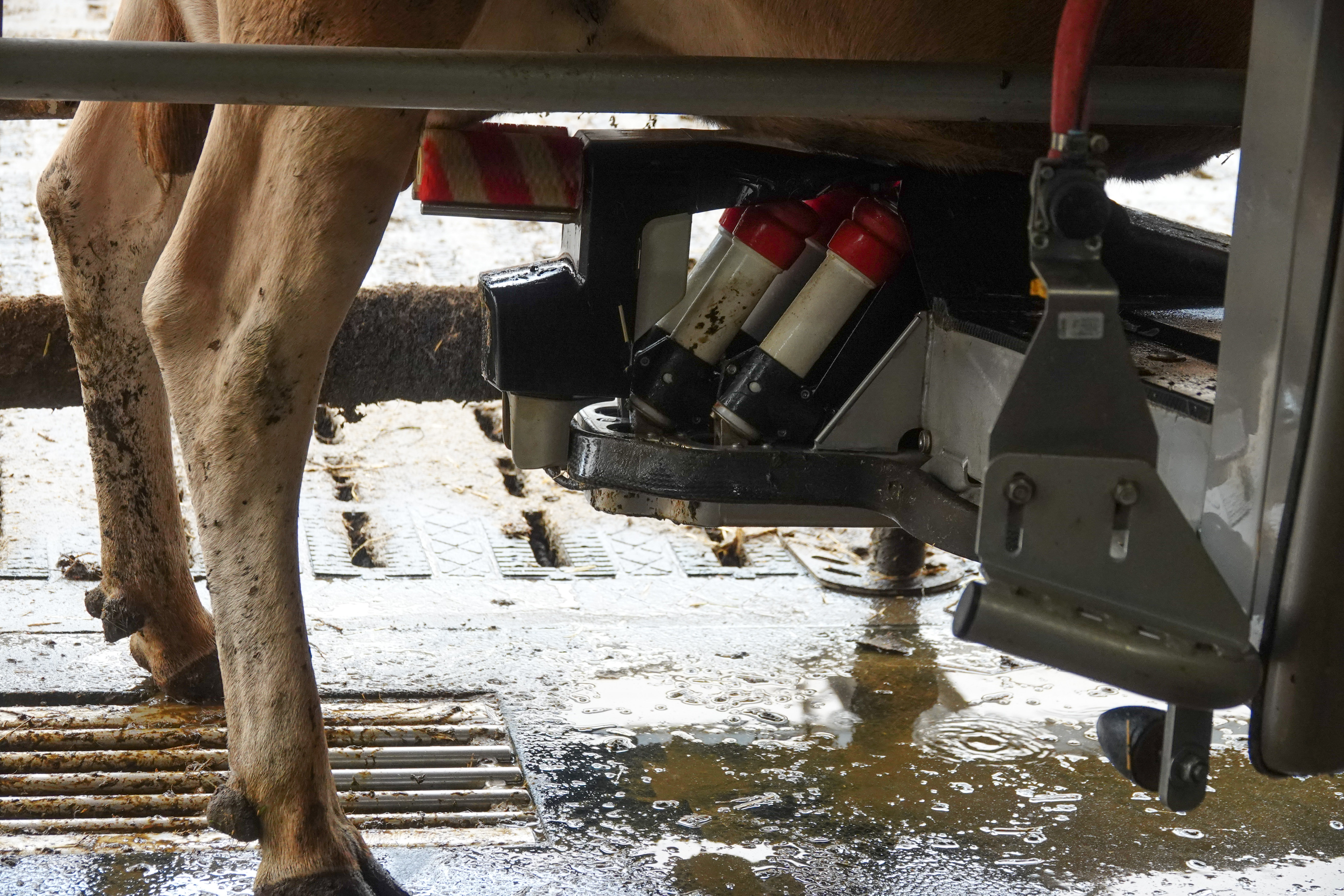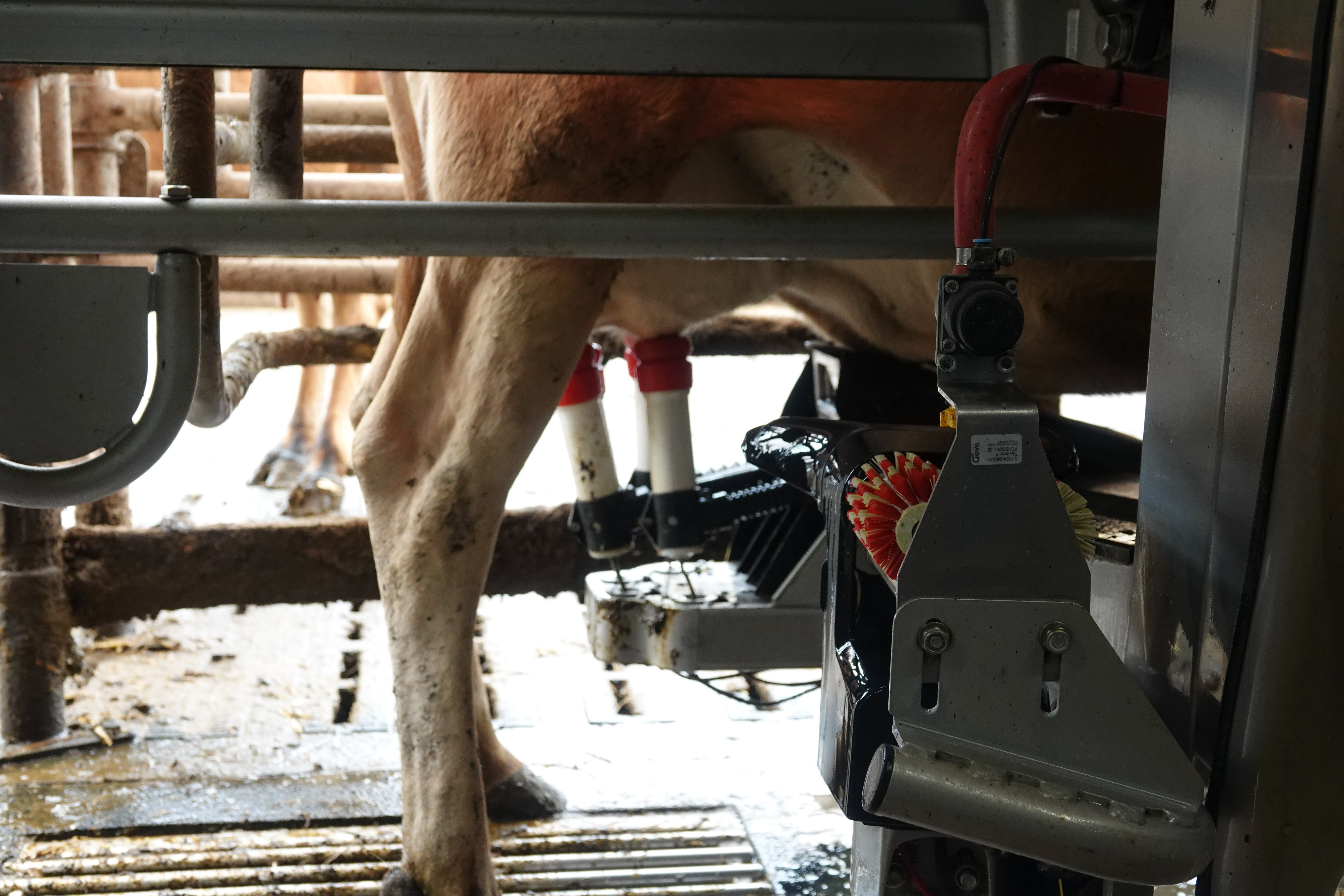 Bij het melken komt geen mensenhand te pas. De koeien lopen naar een machine, die hun spenen schoonmaakt en de melkmachine eraan koppelt. De koeien hebben een nummer met chip en de boer kan precies aflezen hoeveel melk de koe geleverd heeft.