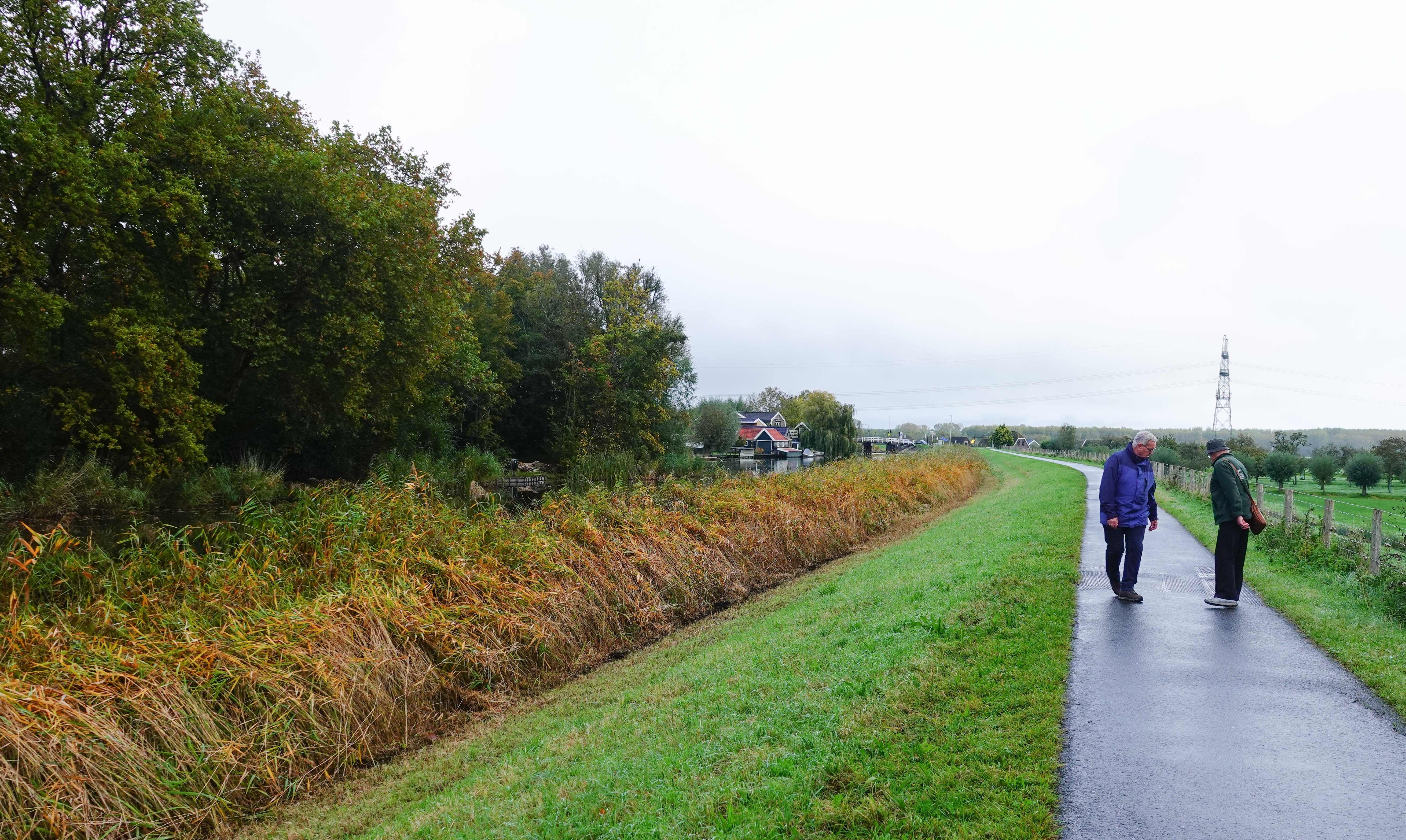 Als het niet zo nat was geweest, zouden we de route door het park genomen hebben en dan via de karakteristieke “G. van der Meerbrug’ over het water gestoken zijn, om zo uit te komen, waar wij nu liepen.