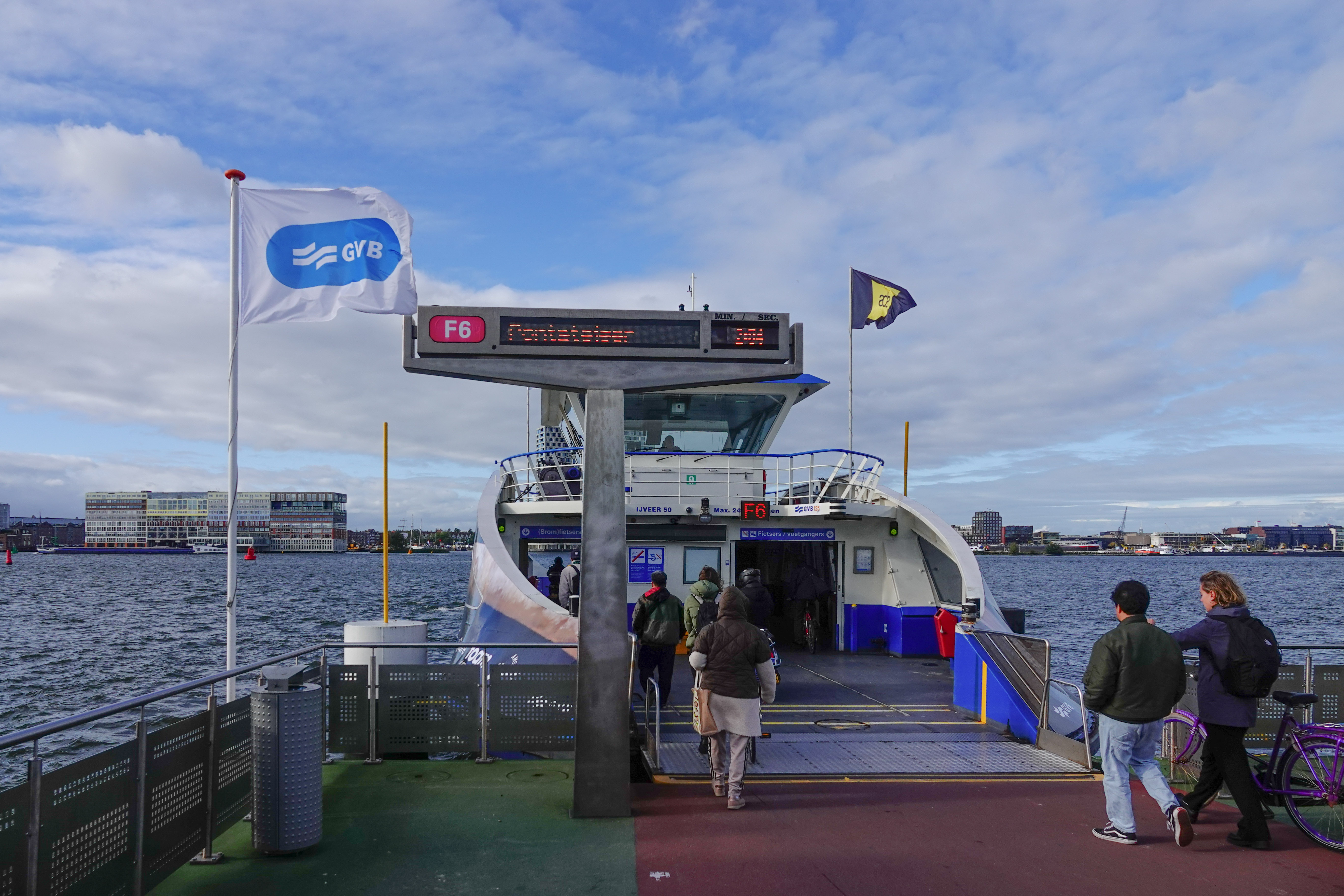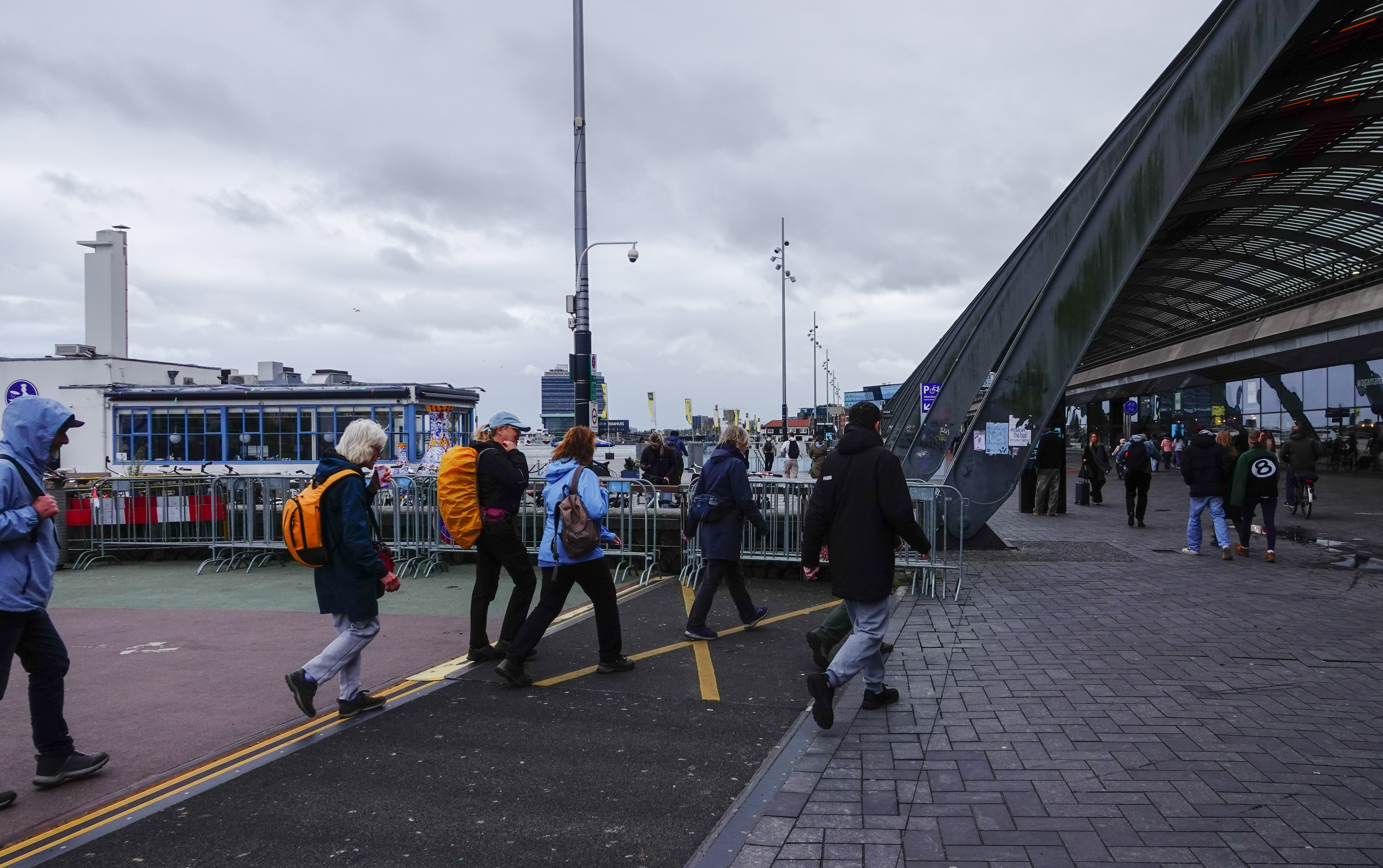 Het Ponthuis doemde voor ons op. Vandaaruit staken we met het eerste pont van deze wandeling over naar de andere kant van ’t IJ.