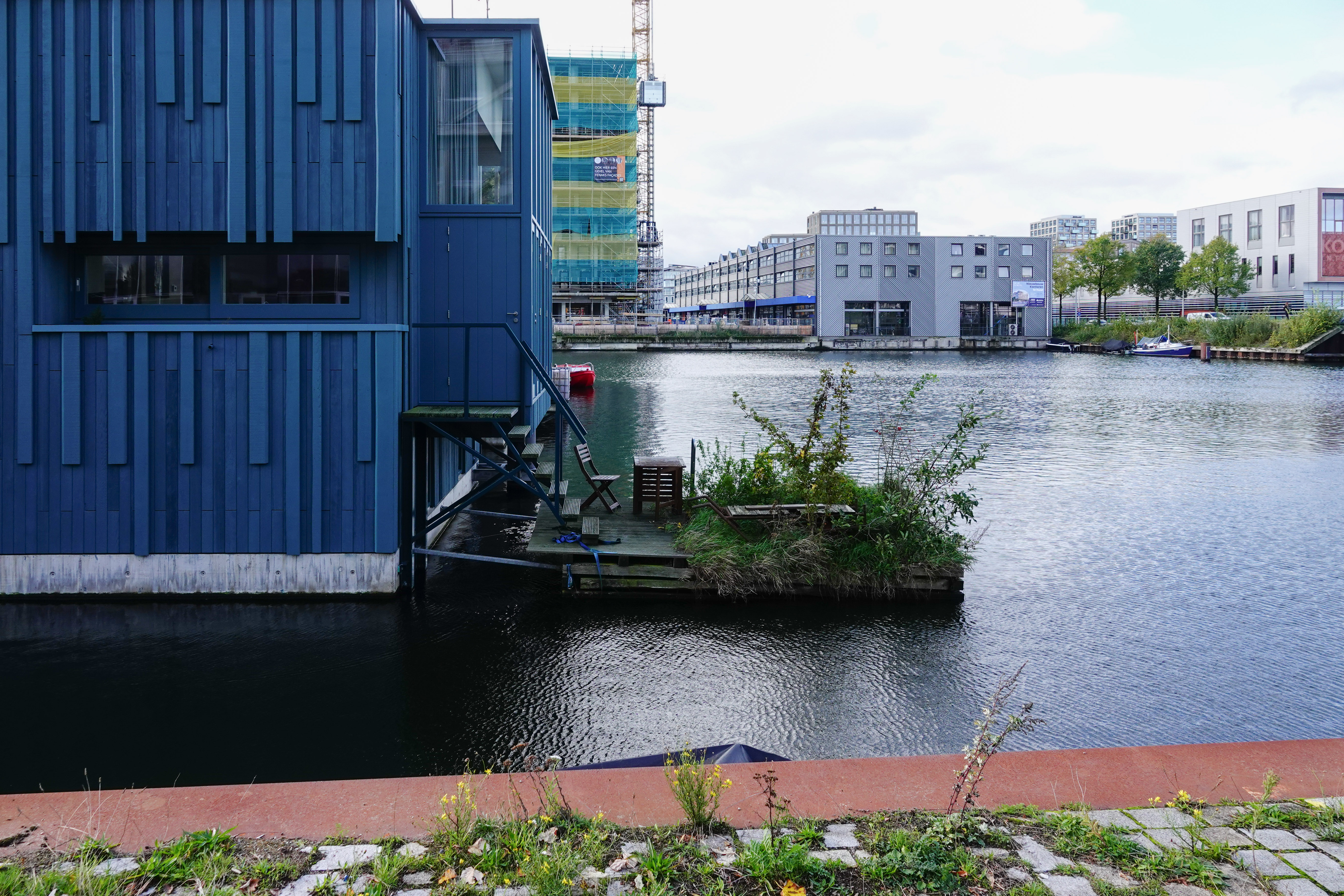 In Amsterdam Noord wandelden we over het complex Schoonschip, drijvende huizen die totaal zelfvoorzienend zijn gebouwd. Sommige bungalows hebben zelfs hun eigen drijvende tuin.
