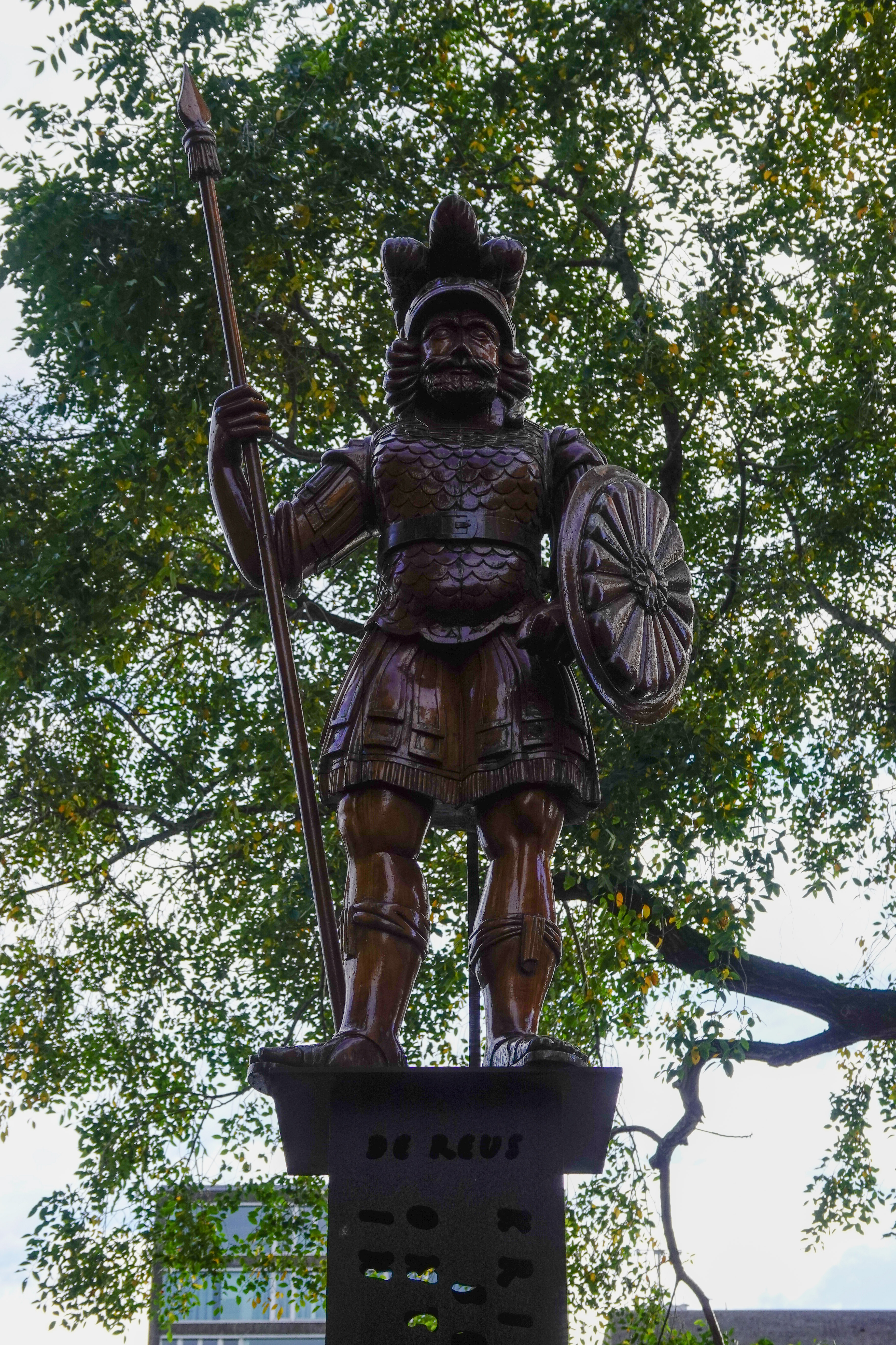 Organisator I van de Wandelsite nam ons ook mee naar het Bickerseiland. Daar stond een houten standbeeld van de reus van het Bickerseiland. Dat beeld uit 1647, gemaakt door een onbekende scheepstimmerman in dienst van Jan Bicker, was een tijd spoorloos. Mensen uit de wijk gingen op zoek en men ontdekte, dat het beeld over de wereld op verschillende plekken van de wereld gesignaleerd was. Uiteindelijk kwam het weer terug op de plek, waar het vandaan kwam. Er werd een mooie sokkel gemaakt, é voilà.