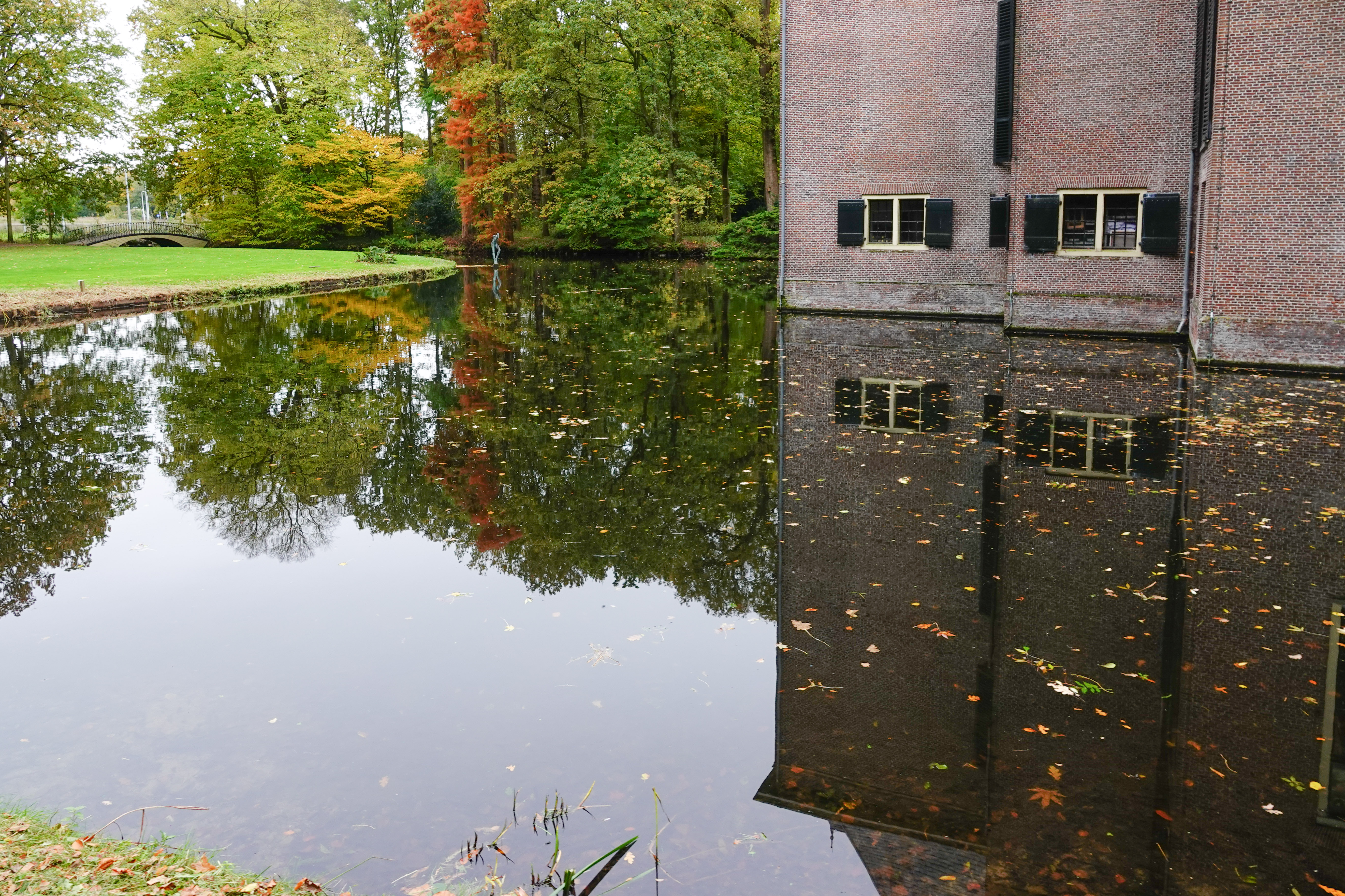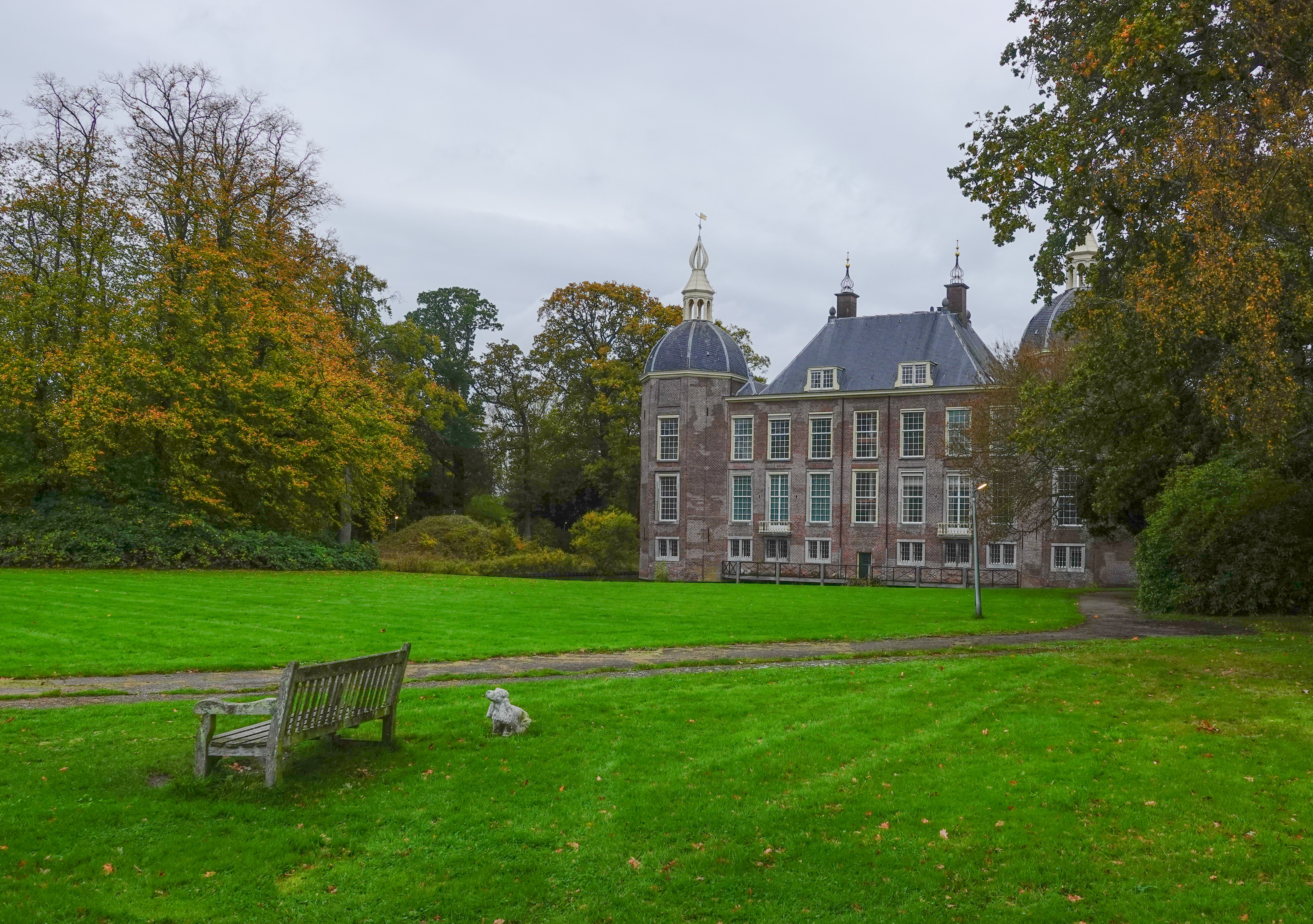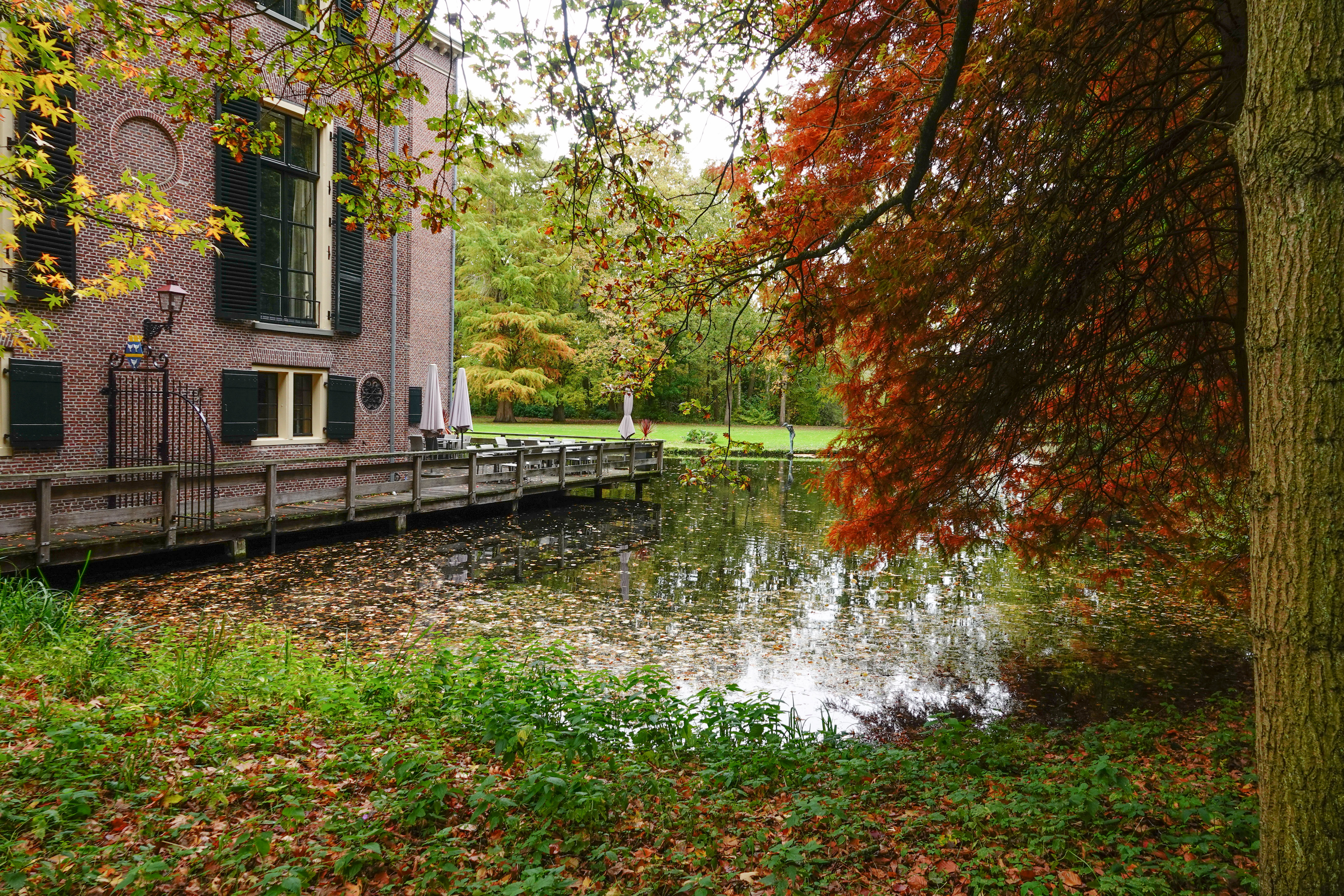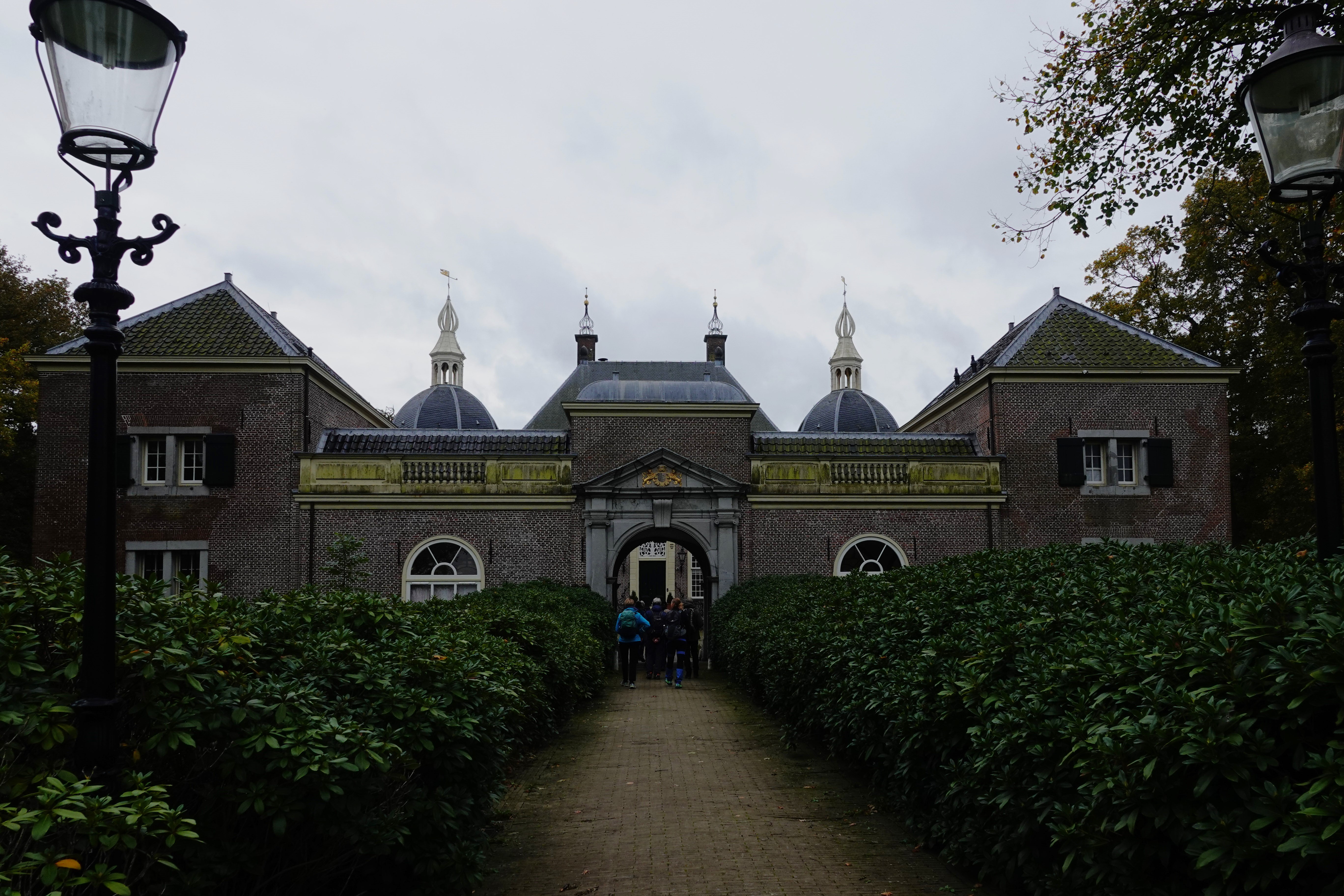 Ongeveer op de helft van de wandeling veranderde de omgeving aanmerkelijk. Het weer bleef somber, maar het was gelukkig droog. We wandelden landgoed Endegeest op. We bekeken op het kasteel uit 1307 het binnenplein, een poortgebouw, hoekpaviljoens, alles omgeven door een gracht.