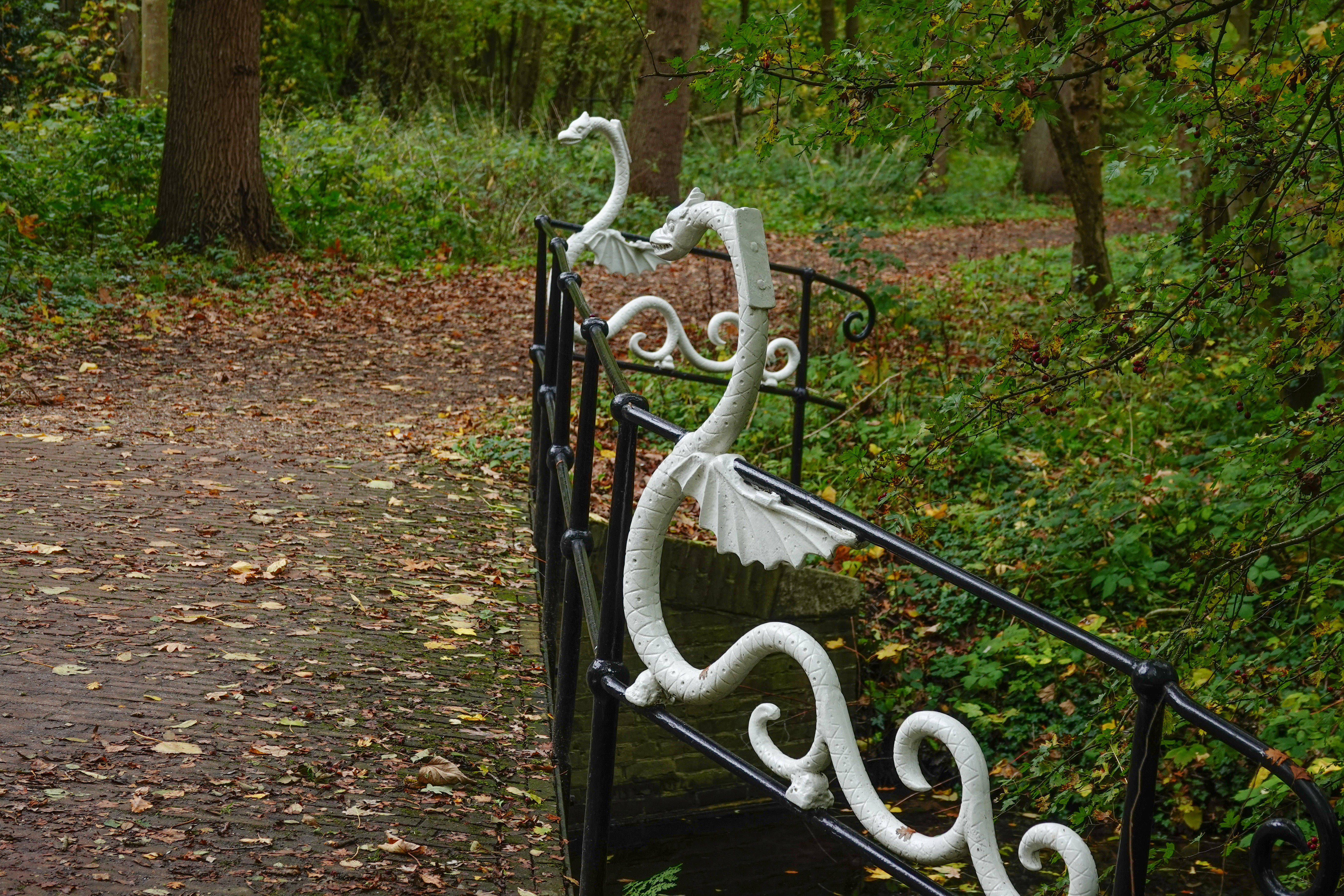 De Drakenbrug was een bezienswaardigheid. Lange tijd hield men het erop, dat het zwanenhalzen waren, die de brug sierden.