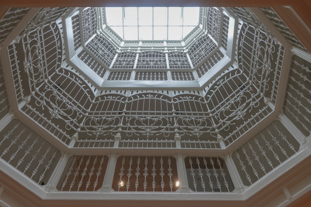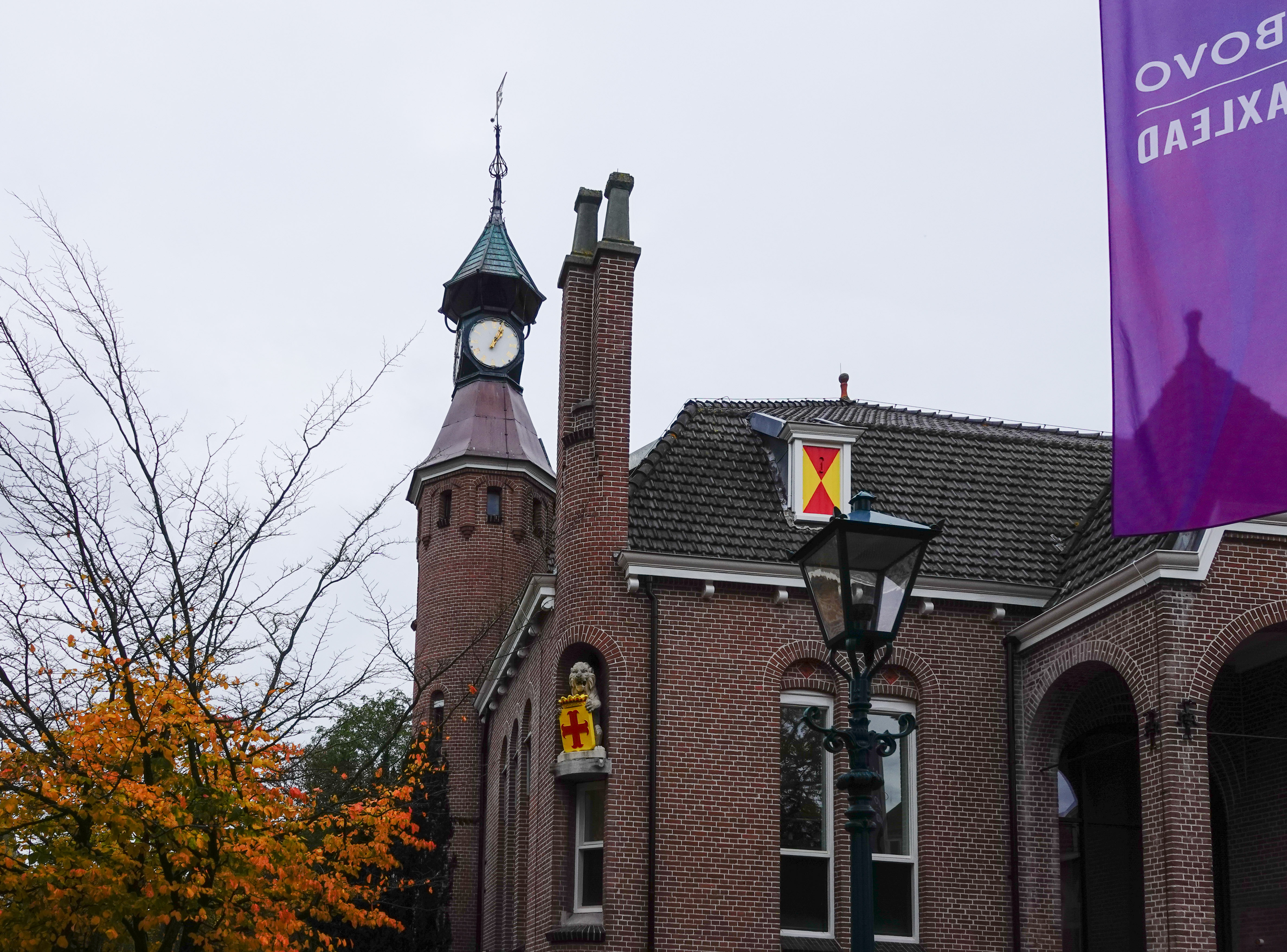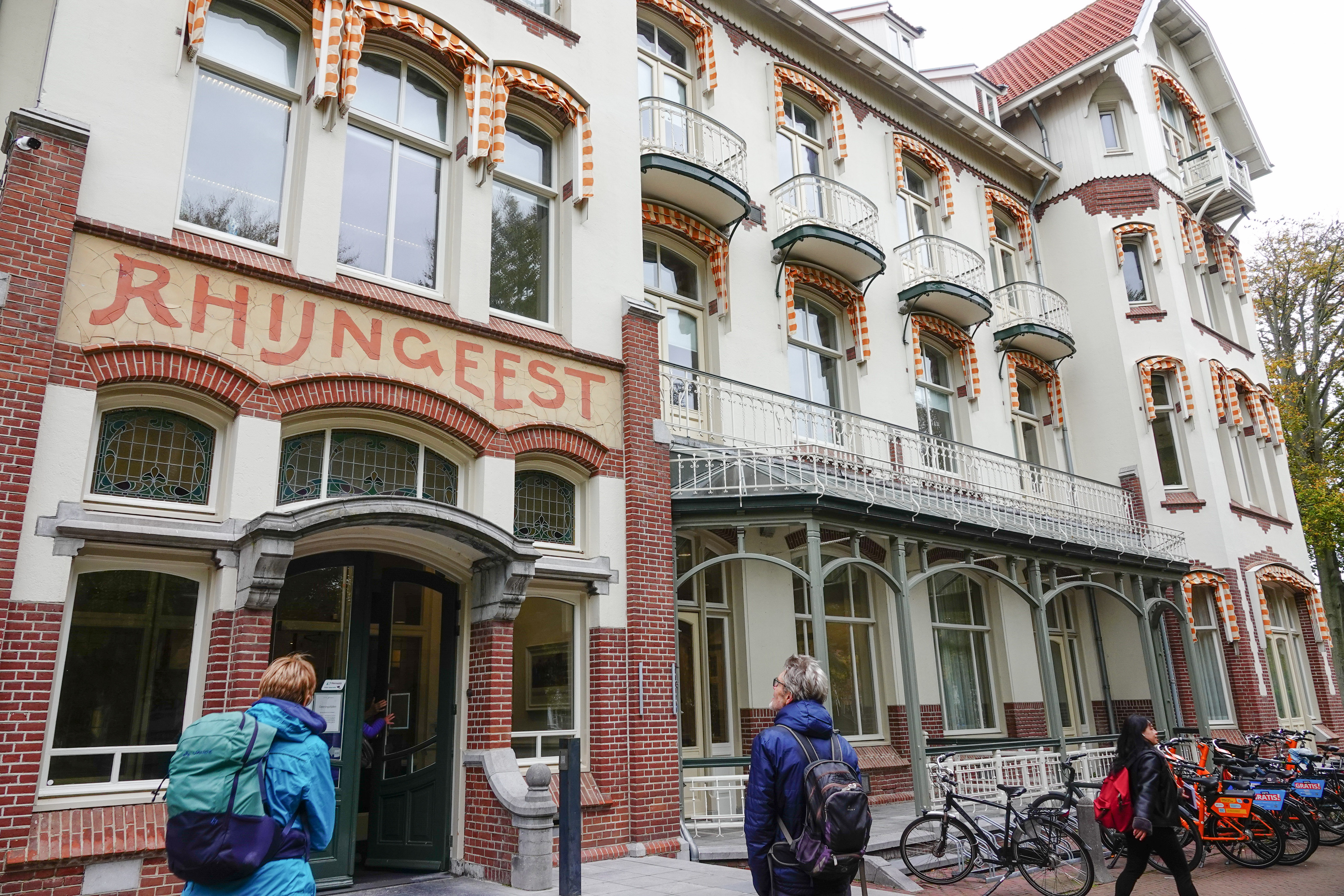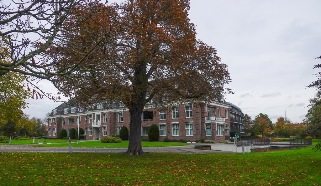 Het doet nu dienst als raadhuis van Oegstgeest (het derde) en deze verkiezingsdag was het stem bureau daar open. Wij bewonderden binnen de schitterende lichtkoker, die het daglicht over alle etages verspreidt. Vroeger was hier een ‘sanatorium voor zenuwlijders’ en dat daglicht was helend voor de patienten.