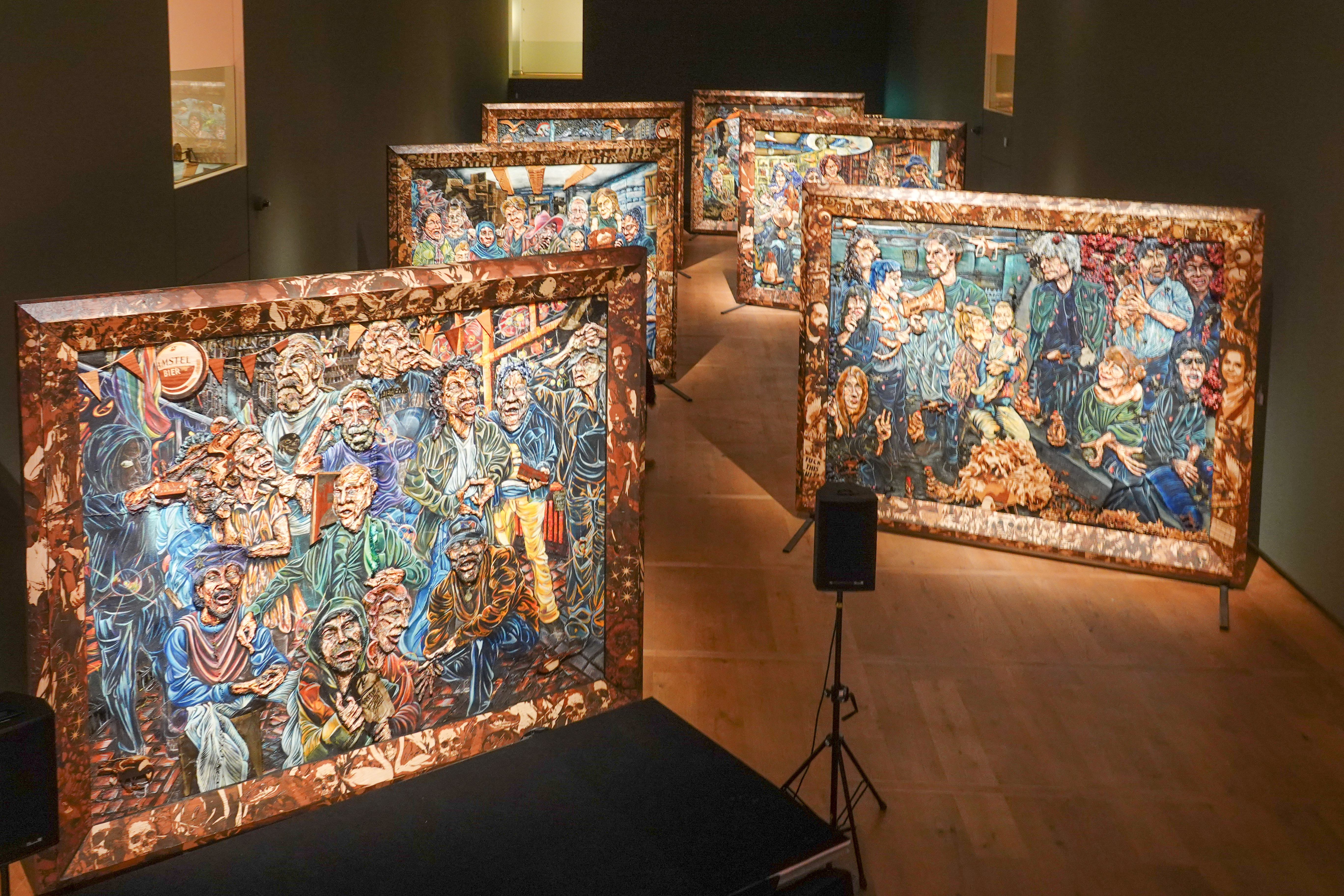 Koen Hauser (1972) maakte een denkbeeldig theatergebouw waarin littekens van het leven een andere vorm en betekenis aannemen, als een bron van schoonheid en misschien wel troost. Ze zijn geïnspireerd op gebouwen van de Amsterdamse School. De decoraties zijn ontleend aan de medische fotografie, microscopische opnames van kankercellen en virussen enz. Hauser maakte er mooie vormen van. Het zijn verstilde dragers van emoties en trauma’s geworden, die een nieuwe zintuiglijke ervaring teweegbrengen.