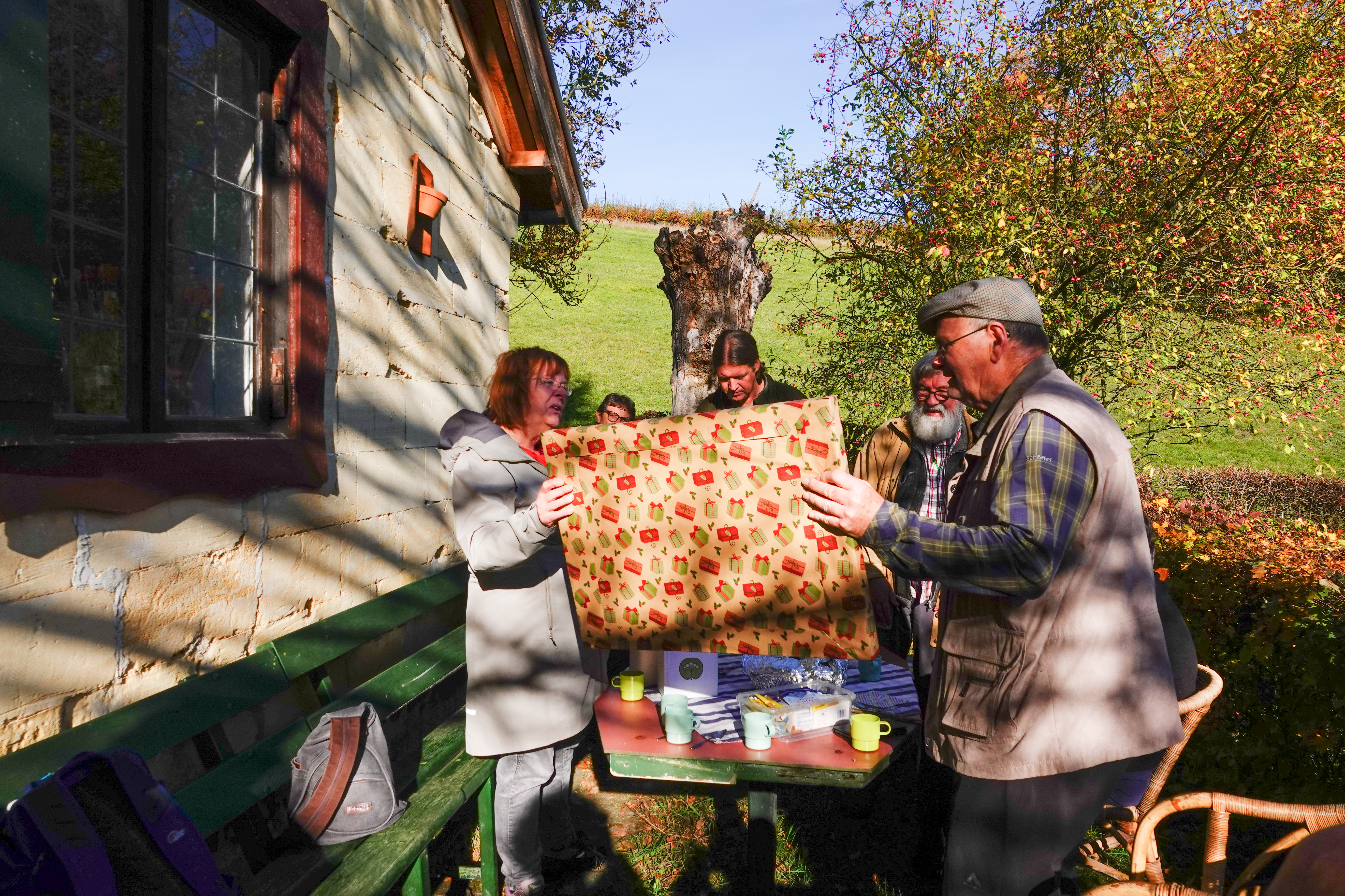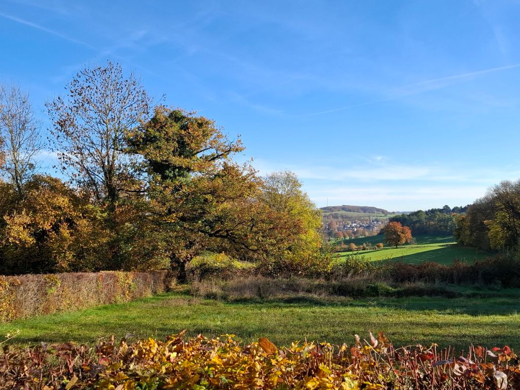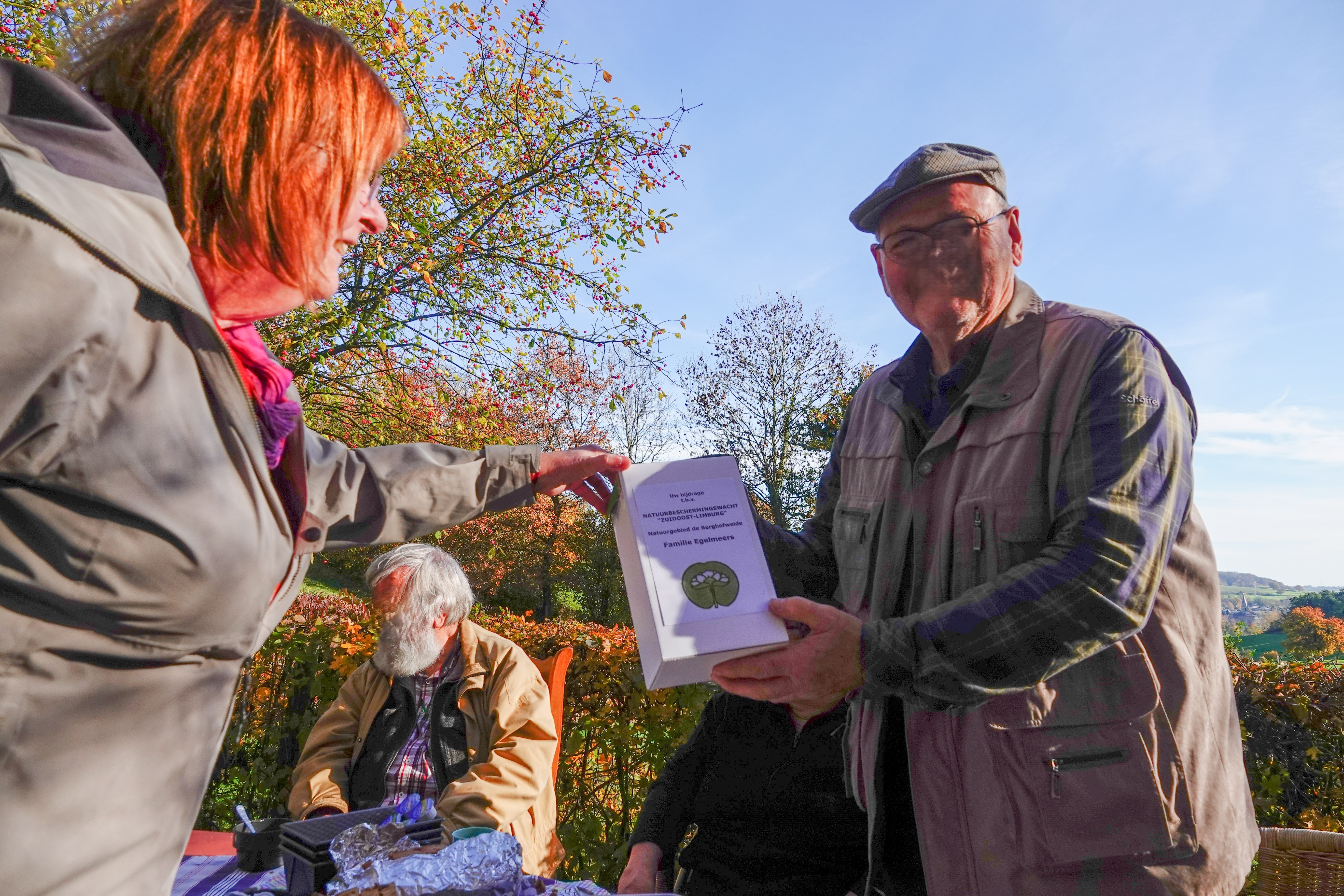 We dronken er buiten koffie en bekeken het land nog even beter. Wat een zalige plek met zicht op Wijlre in het dal. De hekken zijn een erfenis van de mijnen. Deze vrijwilligersgroep kan alles gebruiken. helaas is er weinig geld, maar wat doen ze goede dingen voor de natuur. Vandaar dat onze gift heel goed besteed gaat worden, daar zijn we zeker van.