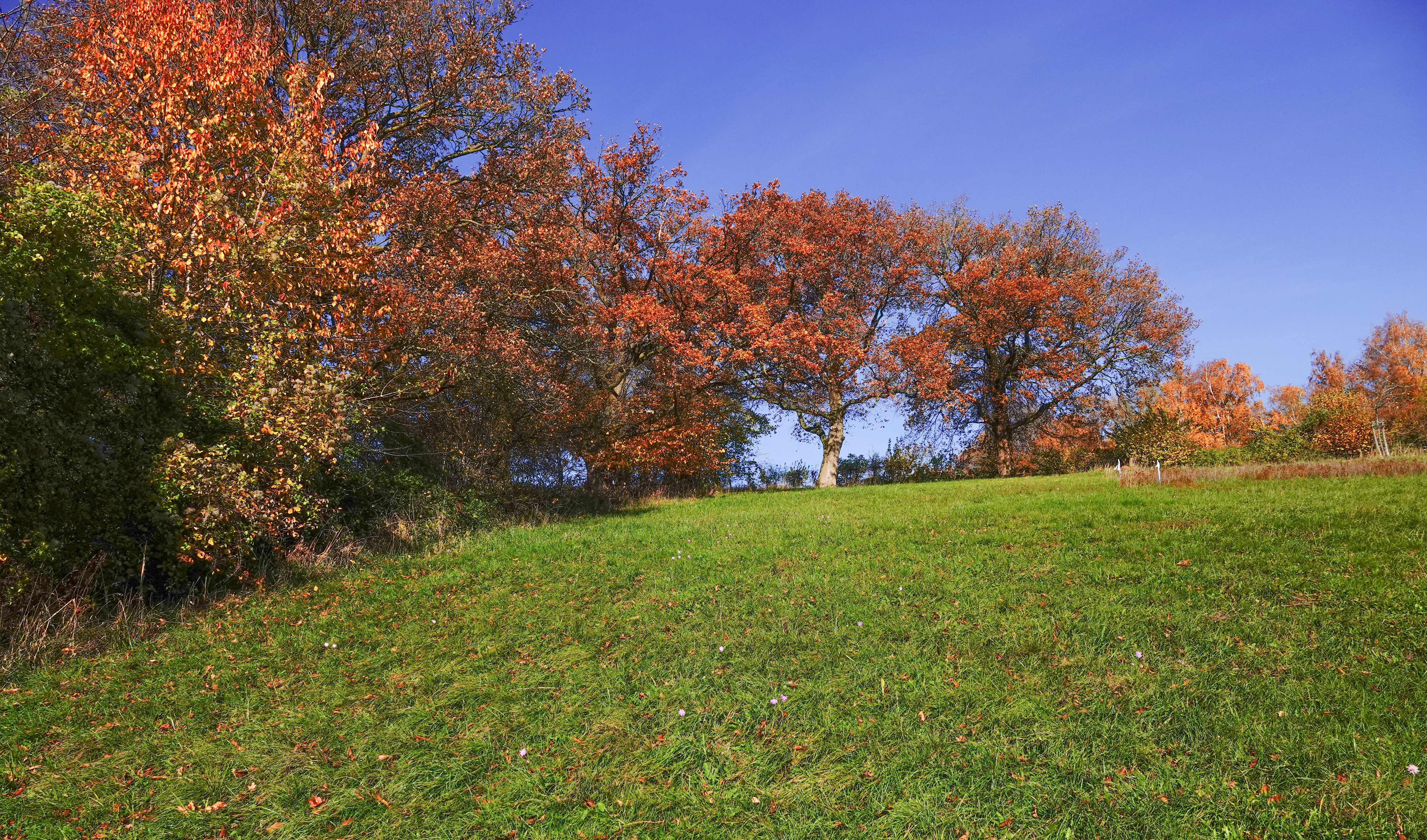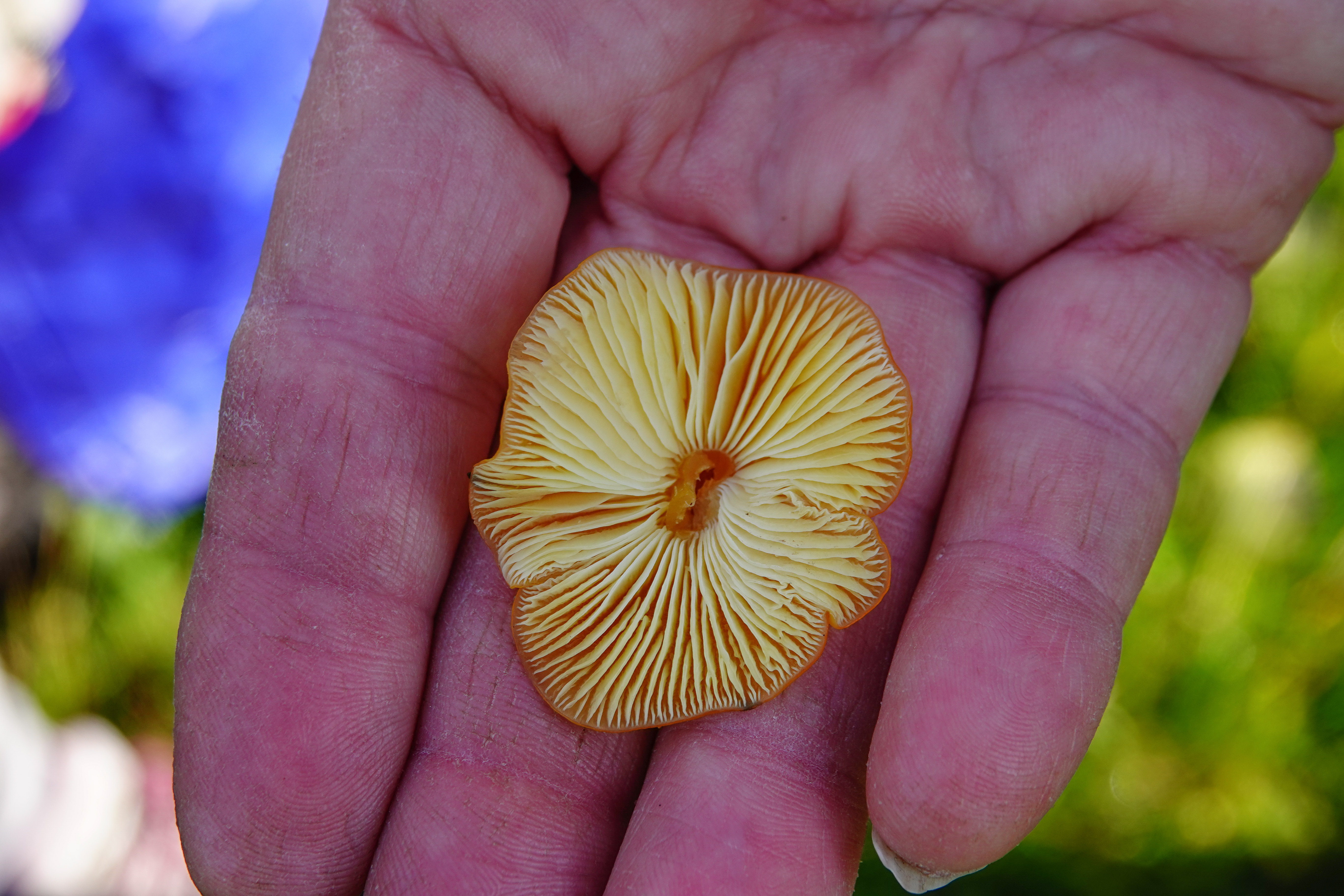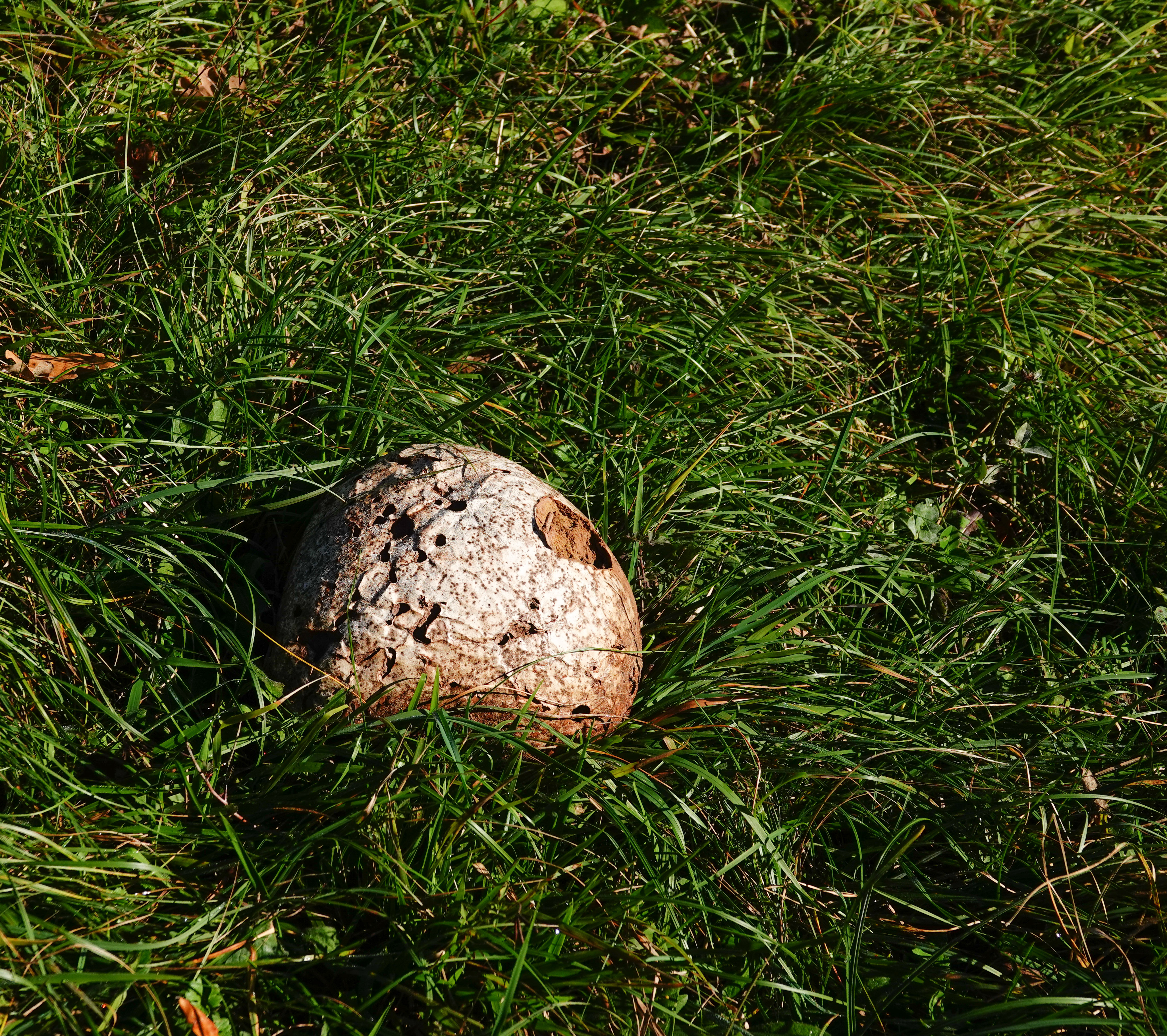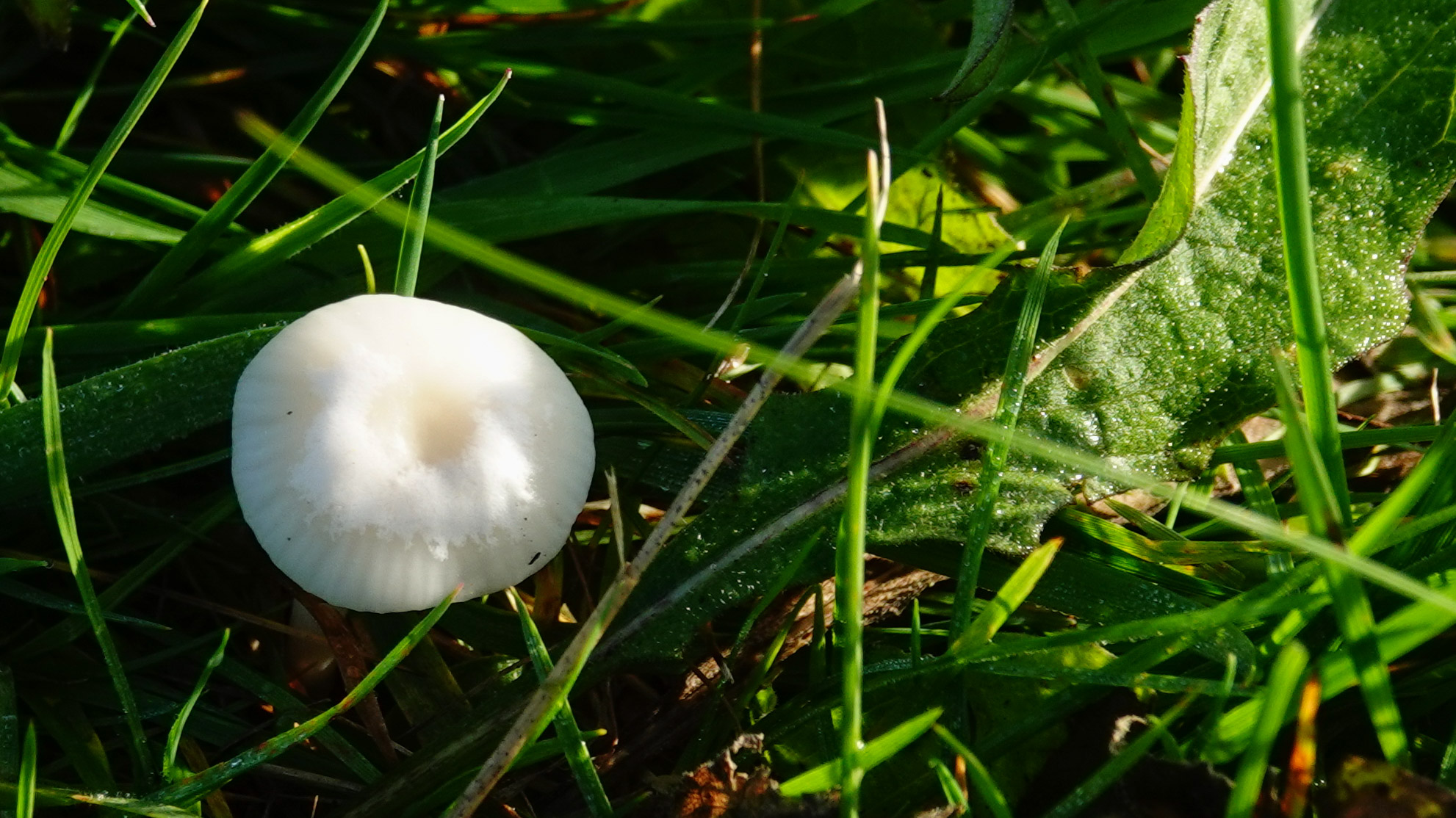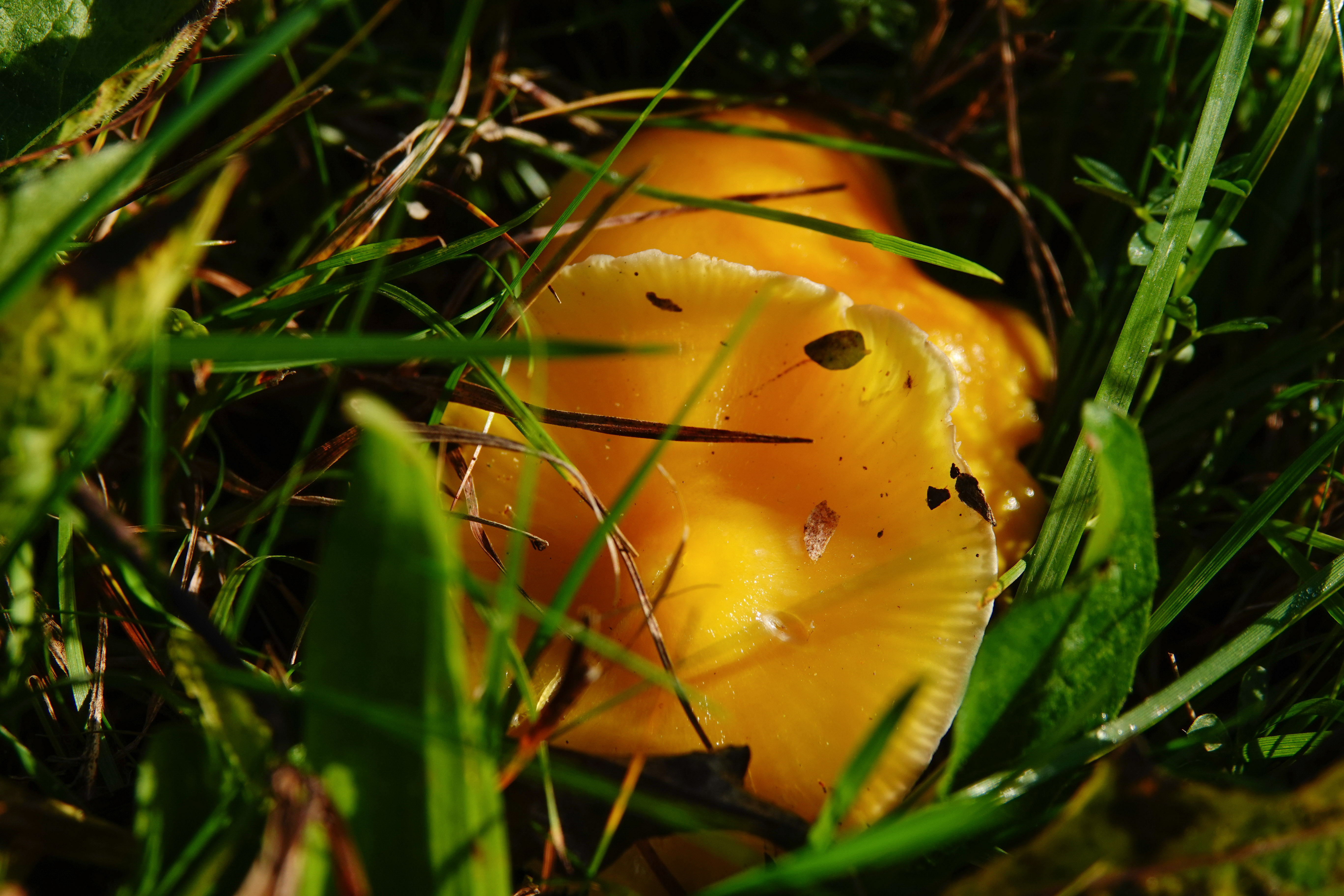 In de weilanden stonden de honingzwam, waarvan je de lamellen ziet, sneeuwzwammetje, gele wasplaat en een reuzenbovist.