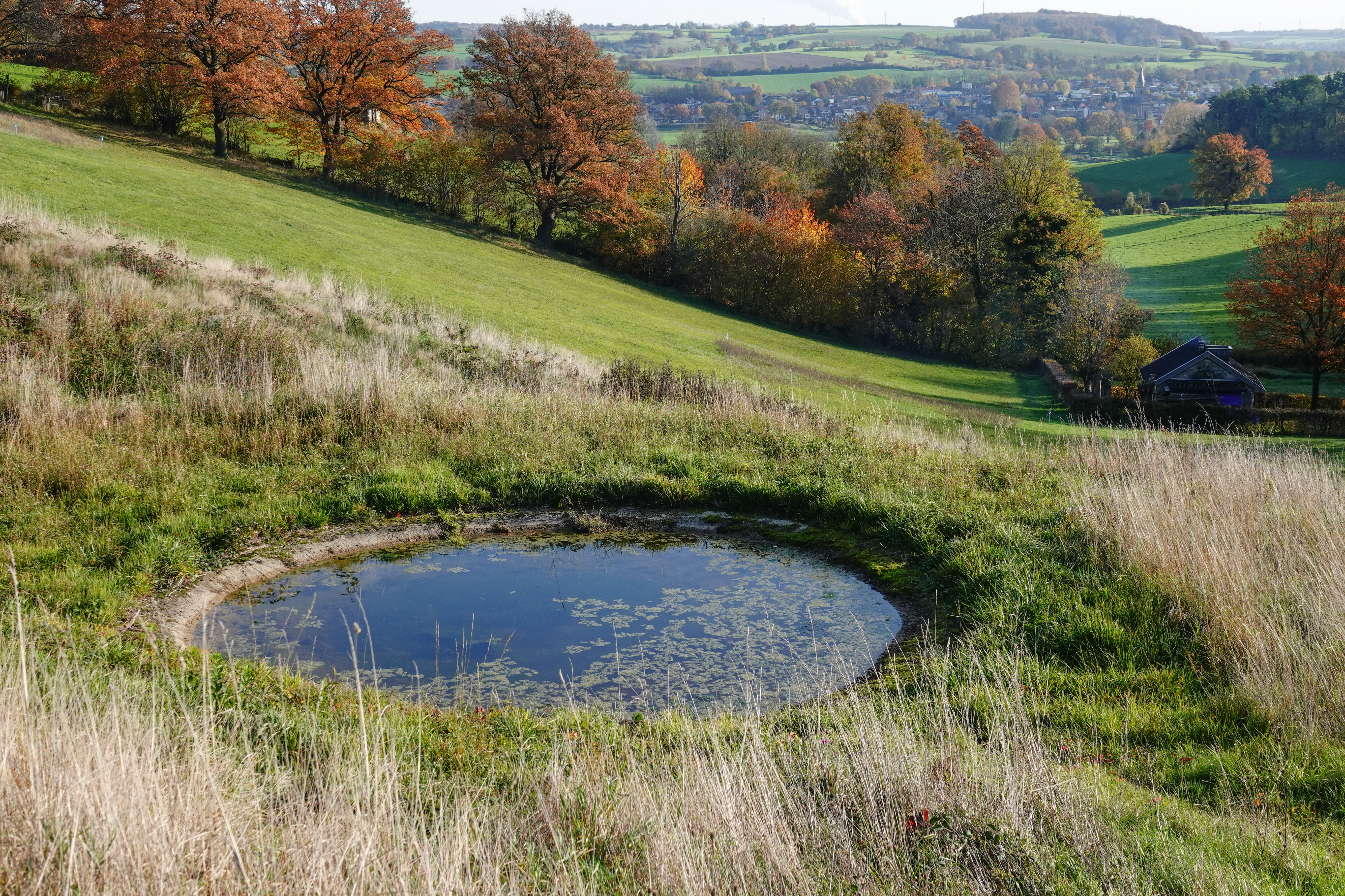 Vandaaruit gingen we het weiland in, waar we prachtige watertjes passeerden, waarin zeldzame kikkers huizen in voorjaar en zomer.