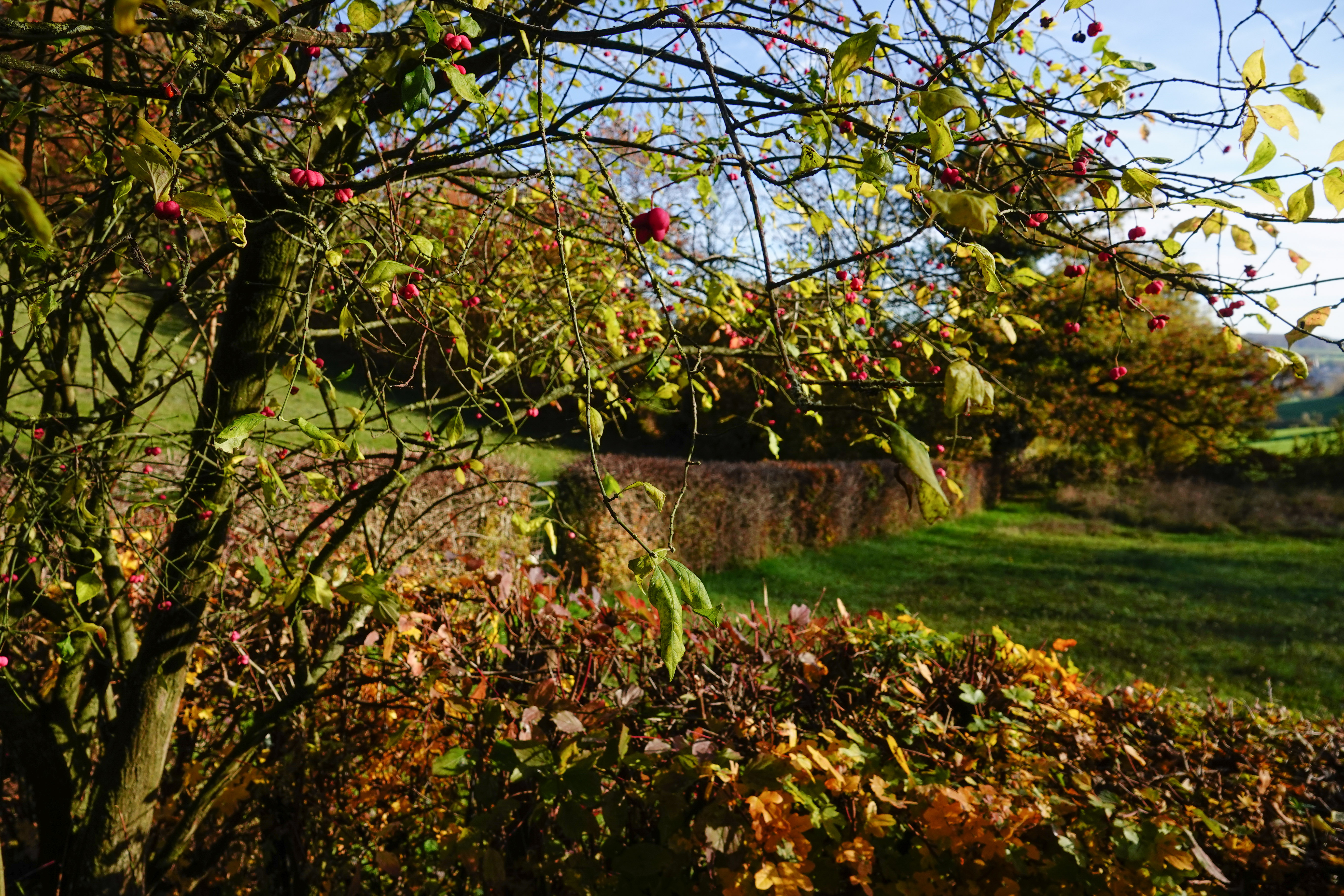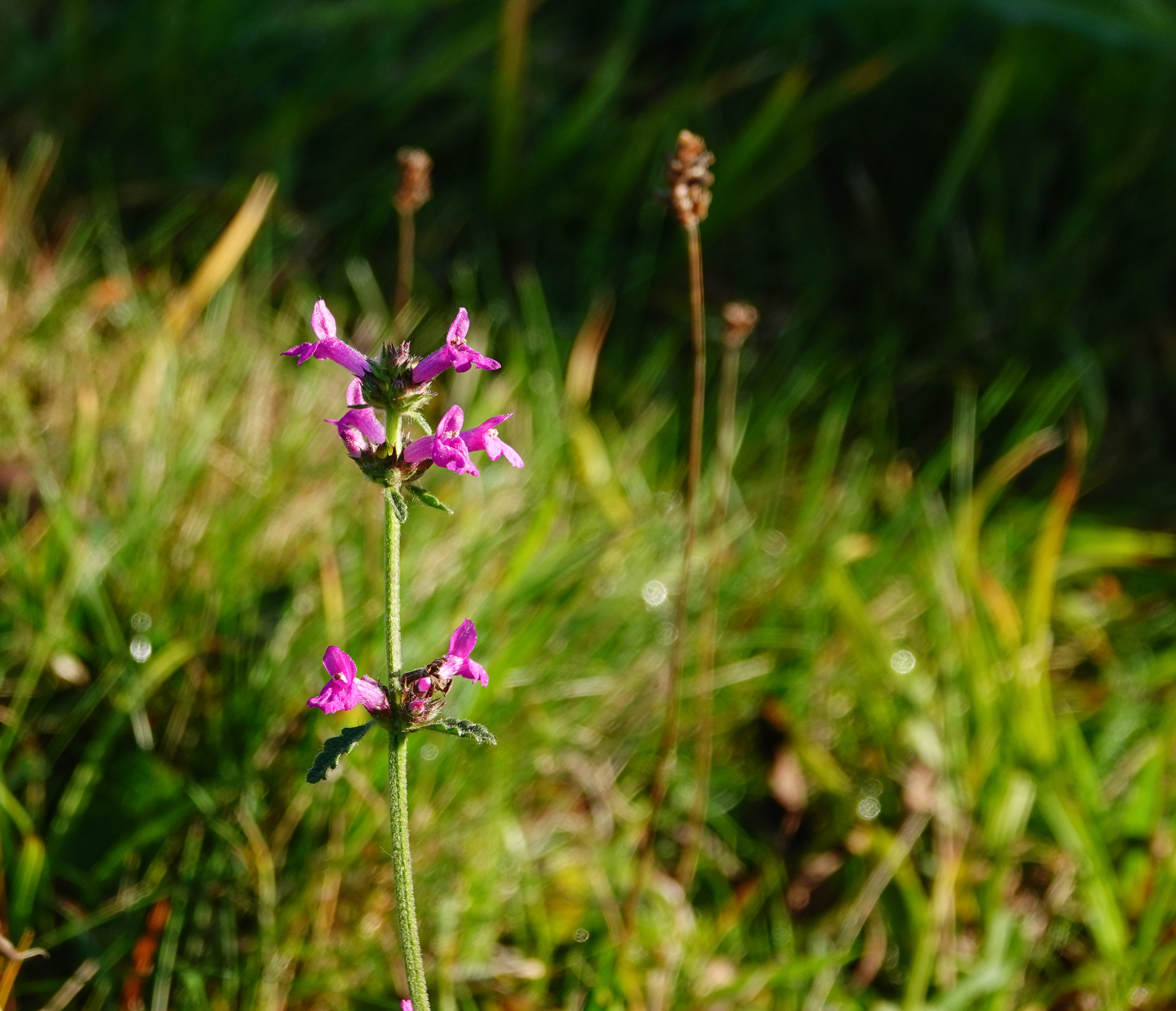 We kregen nog even een rondleiding langs plantjes en bloemetjes, die op deze 7 november nog in bloei staan, wat toch best zeldzaam is voor de tijd van het jaar. Als ik het goed onthouden heb zagen we: vlnr. betonie, biggenkruid, ruige leeuwentand, gewone brunel en borstelkrans.