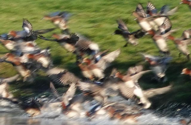 Maar de zon en de temperatuur deden weldadig aan, dus ik wandelde verder. Kijken of ik dat licht, wat we nu al dagen moesten missen toch op een of andere manier kon vastleggen. Ik zag een groep smienten opvliegen. Hun wit aan de vleugels werd zelfs op een onscherpe foto opgelicht door de zon.