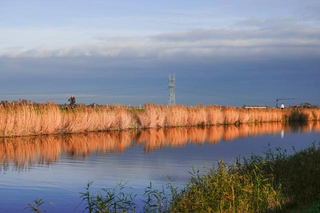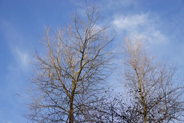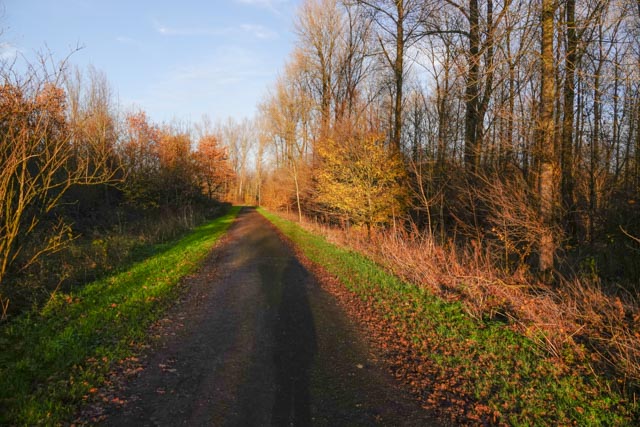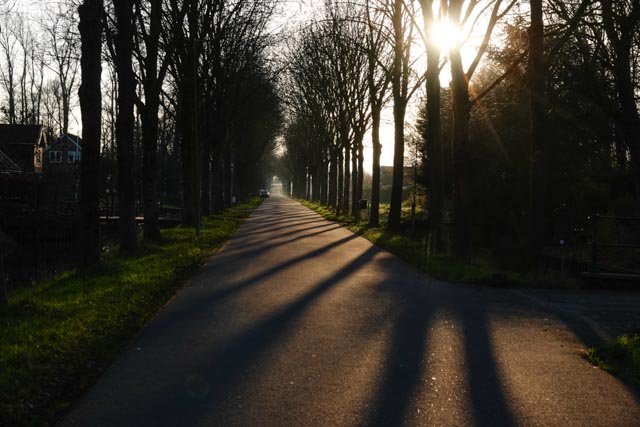 De bomen vingen nog wat zonlicht, terwijl die zon al aardig zakte.
