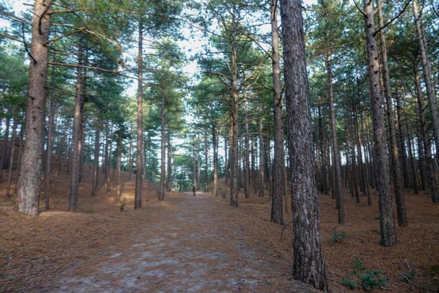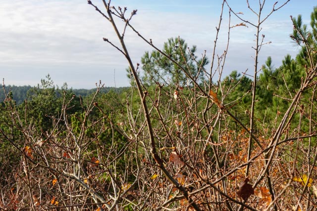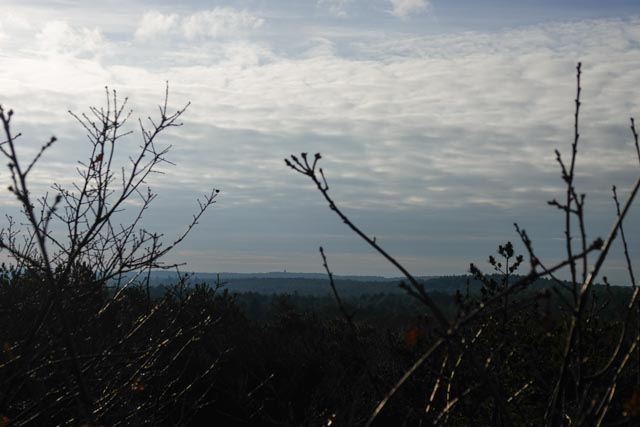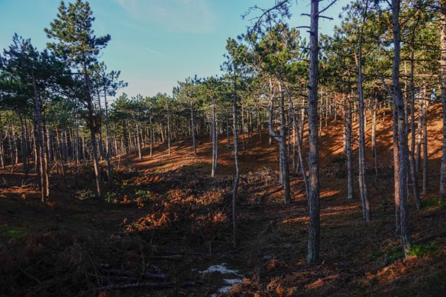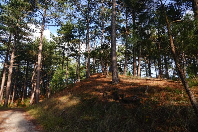 Eenmaal boven voerde de wandelroute door de bossen. Het landschap was wat glooiend.