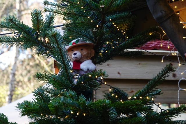 Gelukkig konden we even rusten in de Berenkuil, een etablissement middenin het bos. Ze waren daar al helemaal in de kerstsfeer.