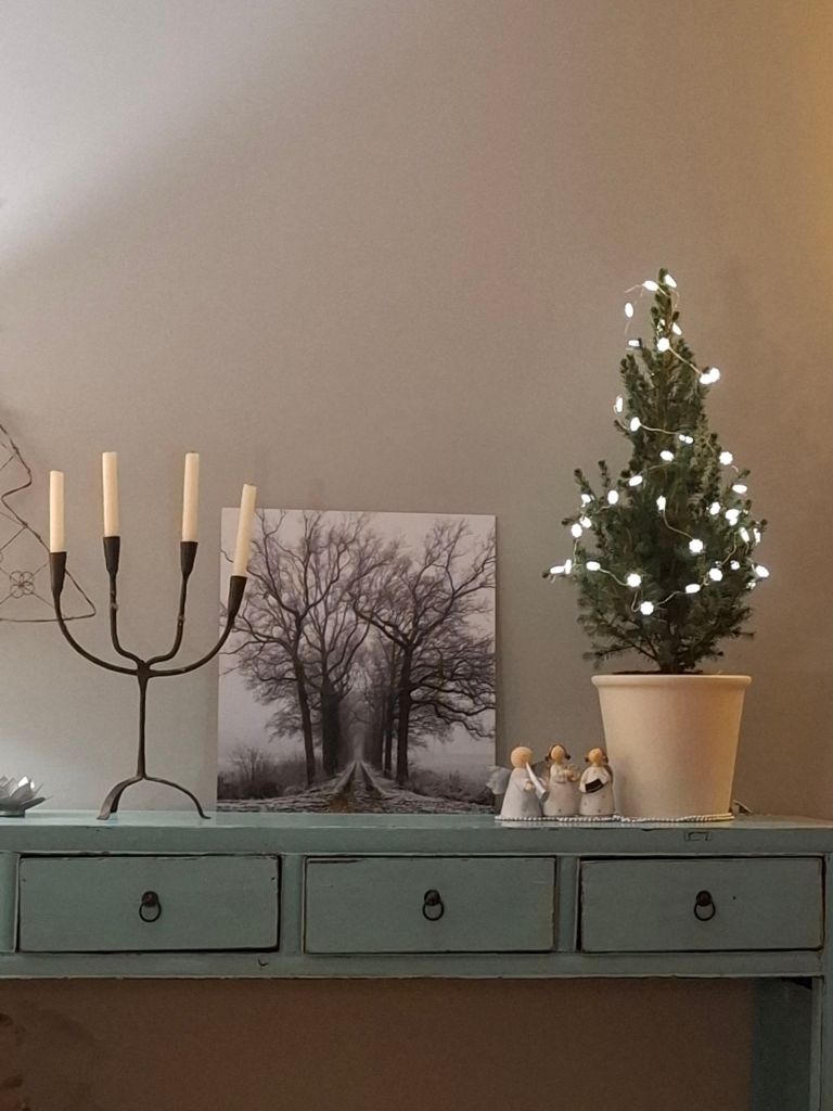 Het kerst-familiefeest gaat dit jaar vervroegd gevierd worden. Het wordt ook geen kerstdiner, maar een lunch. Het is nog lang geen kerst, maar ik vond wel, dat er toch al wat kerstsfeer mocht zijn. Dus zit ik voor mijn doen al vroeg in de kerstversiering.