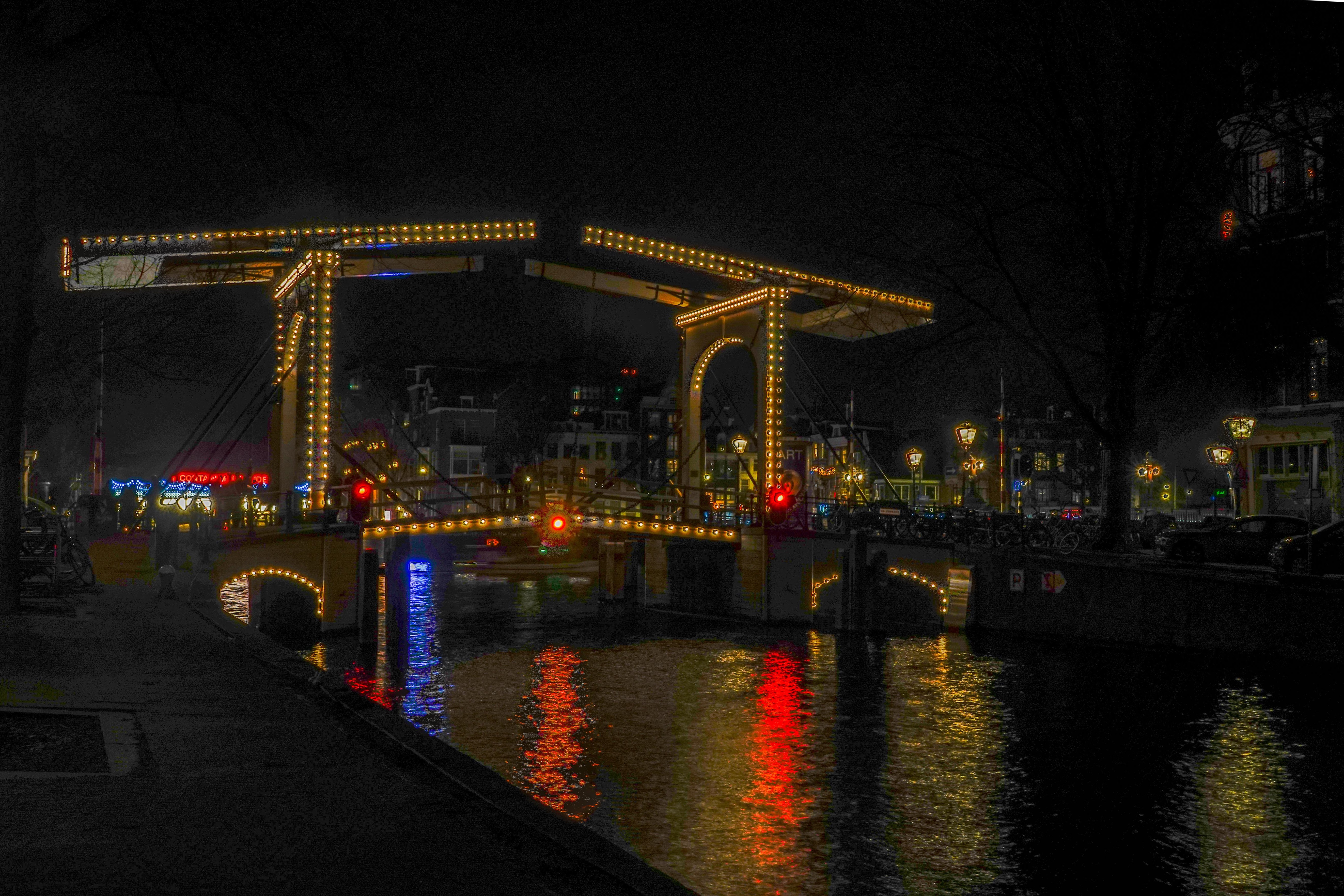 Toen zochten we de Herengracht op. Dat is wel de hoofdader van de route. We hadden een professionele fotograaf mee, die ons uitdaagde om verschillende technieken uit te proberen. Bij mij bleef het bij HDR foto’s, de afkorting van High Dynamic Range. Dan maak je drie of vier precies dezelfde foto’s, maar allemaal van verschillende lichtsterkte en die worden dan samen gevoegd tot één nieuwe foto. Mijn foto’s hadden wel een vervreemdend resultaat.