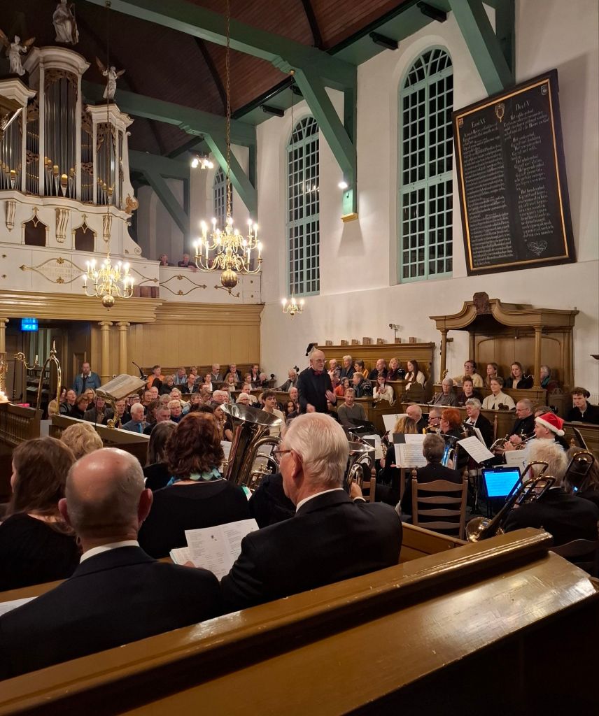De zondag vóór Kerst was ons eigen dorp aan de beurt. Traditioneel verzorgden we daar een kerstconcert samen met het Ilpendams Fanfare en het Sebastianuskoor van de RK kerk.