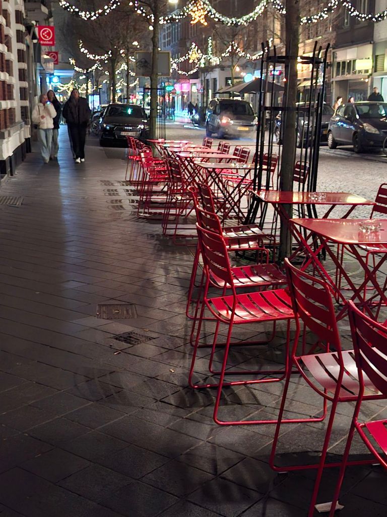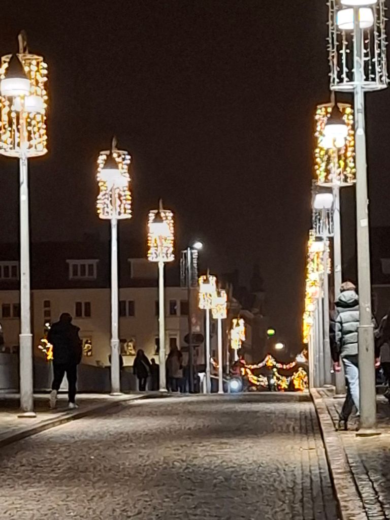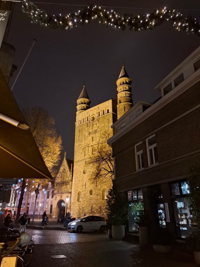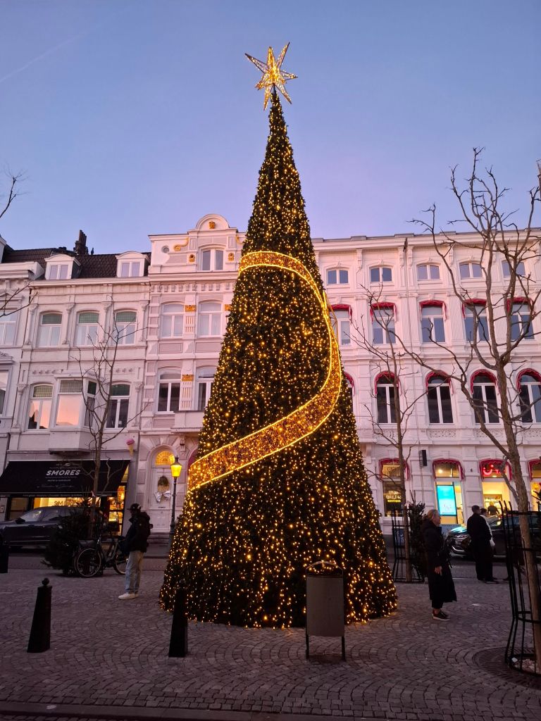 Nadat ik eerst bij mijn zus was langsgegaan en lekker gewandeld had, vertrok ik daar om door te reizen naar Maastricht. De schemer had al ingezet, de mooie kerstverlichting was al aan.