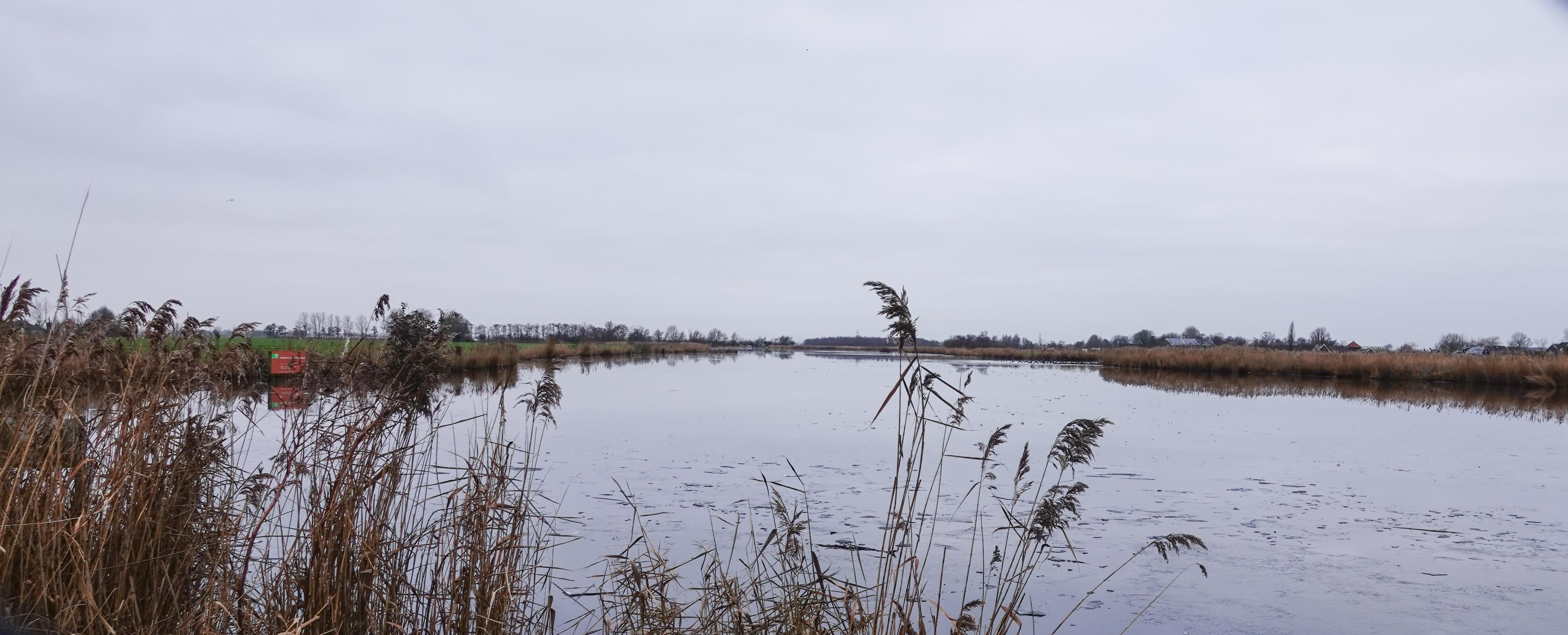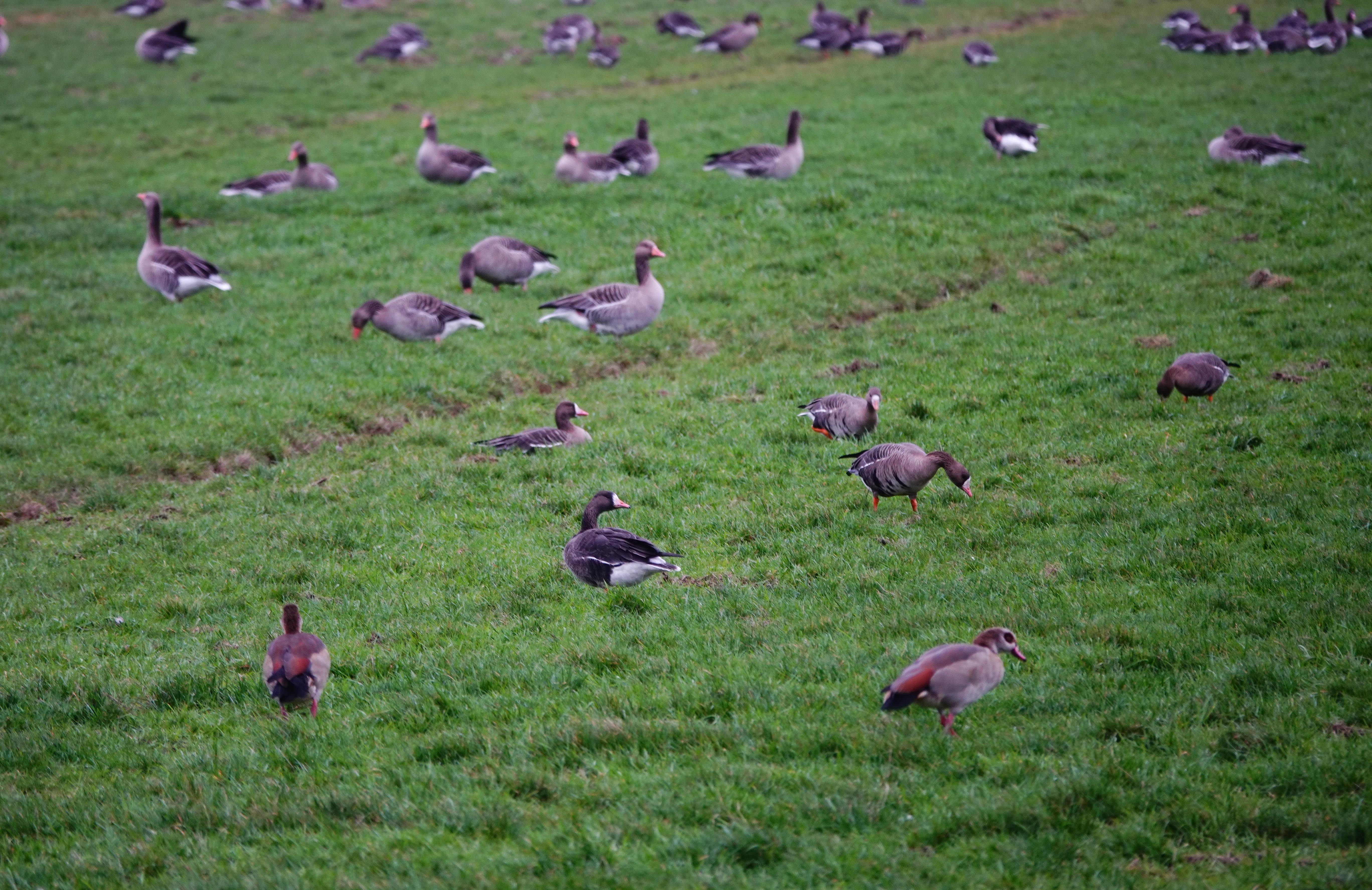 We draaiden om en liepen dezelfde weg terug, uiteraard met een heel ander uitzicht, ha, ha. Er zaten veel ganzen in het land, grauwe- en brandganzen.