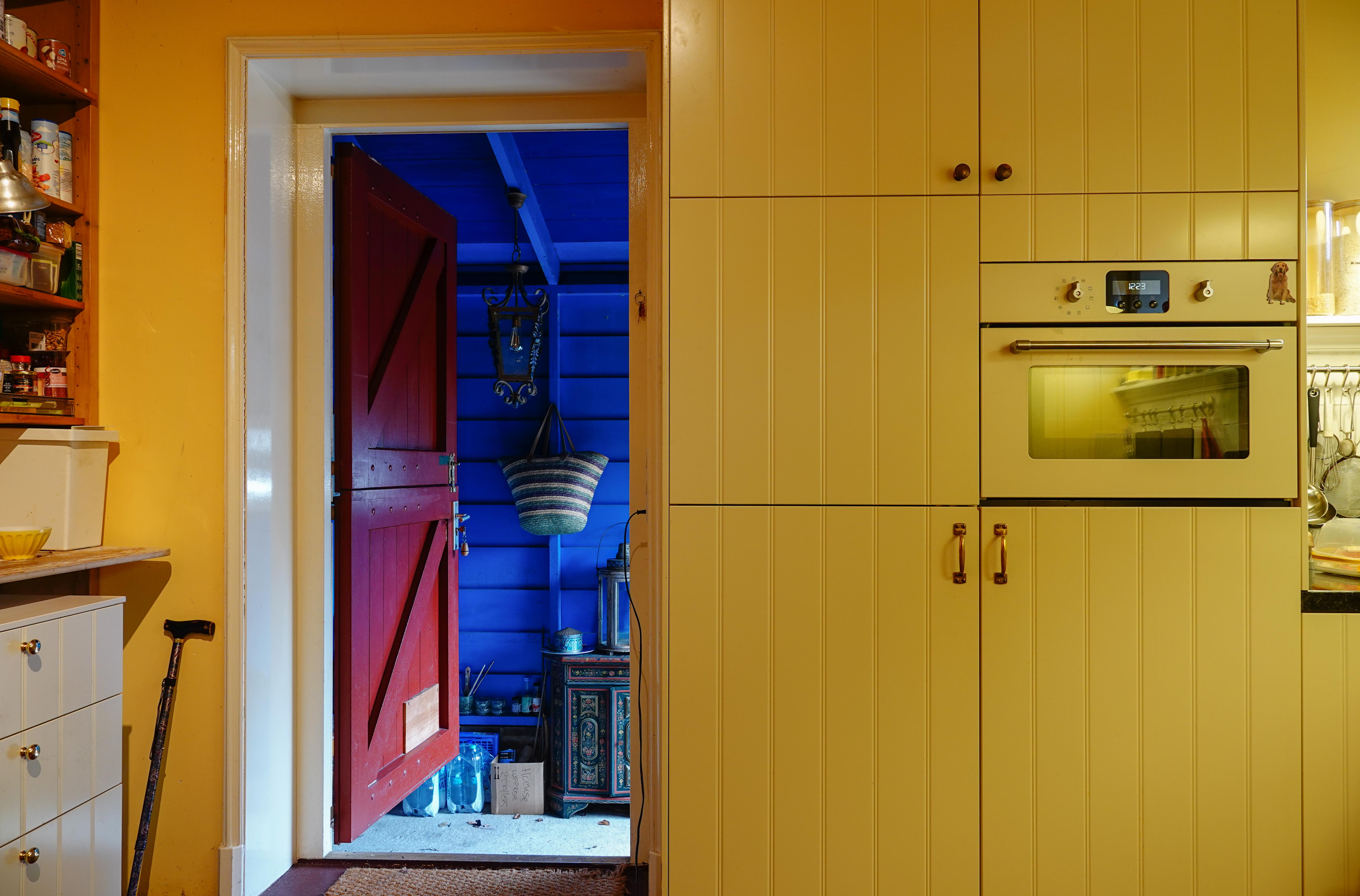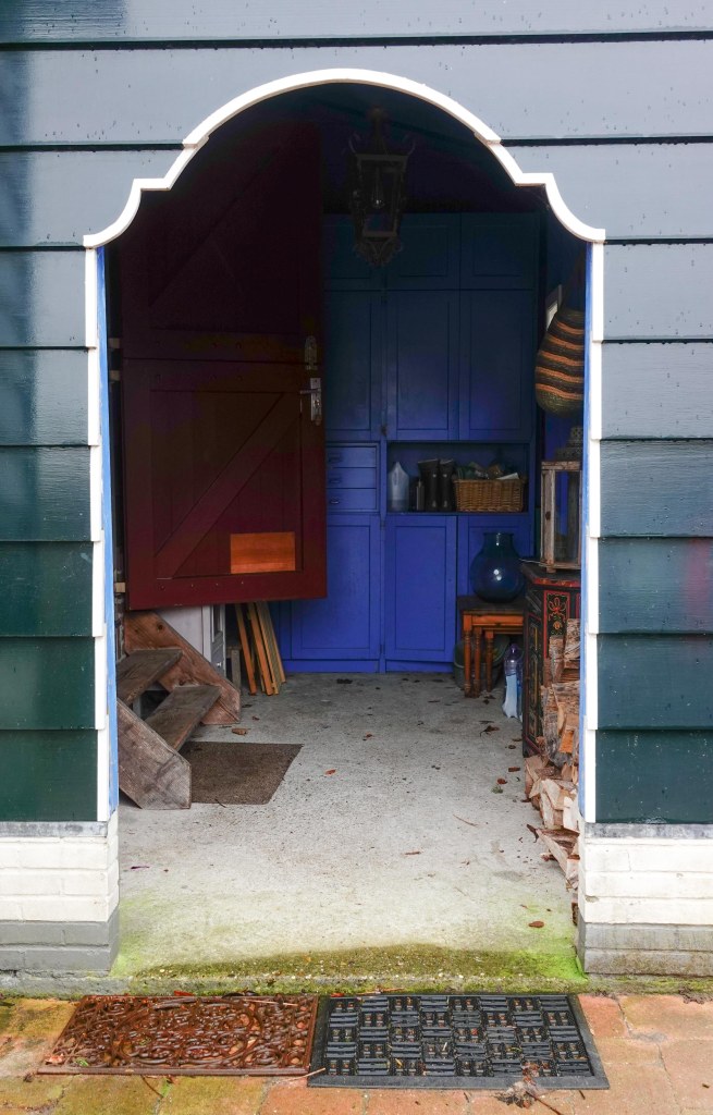 Een cadeautje om die prachtig ingerichte ruimte op de foto te mogen zetten. Te beginnen met het bijzondere klompenhok, de achteringang van het huis.
