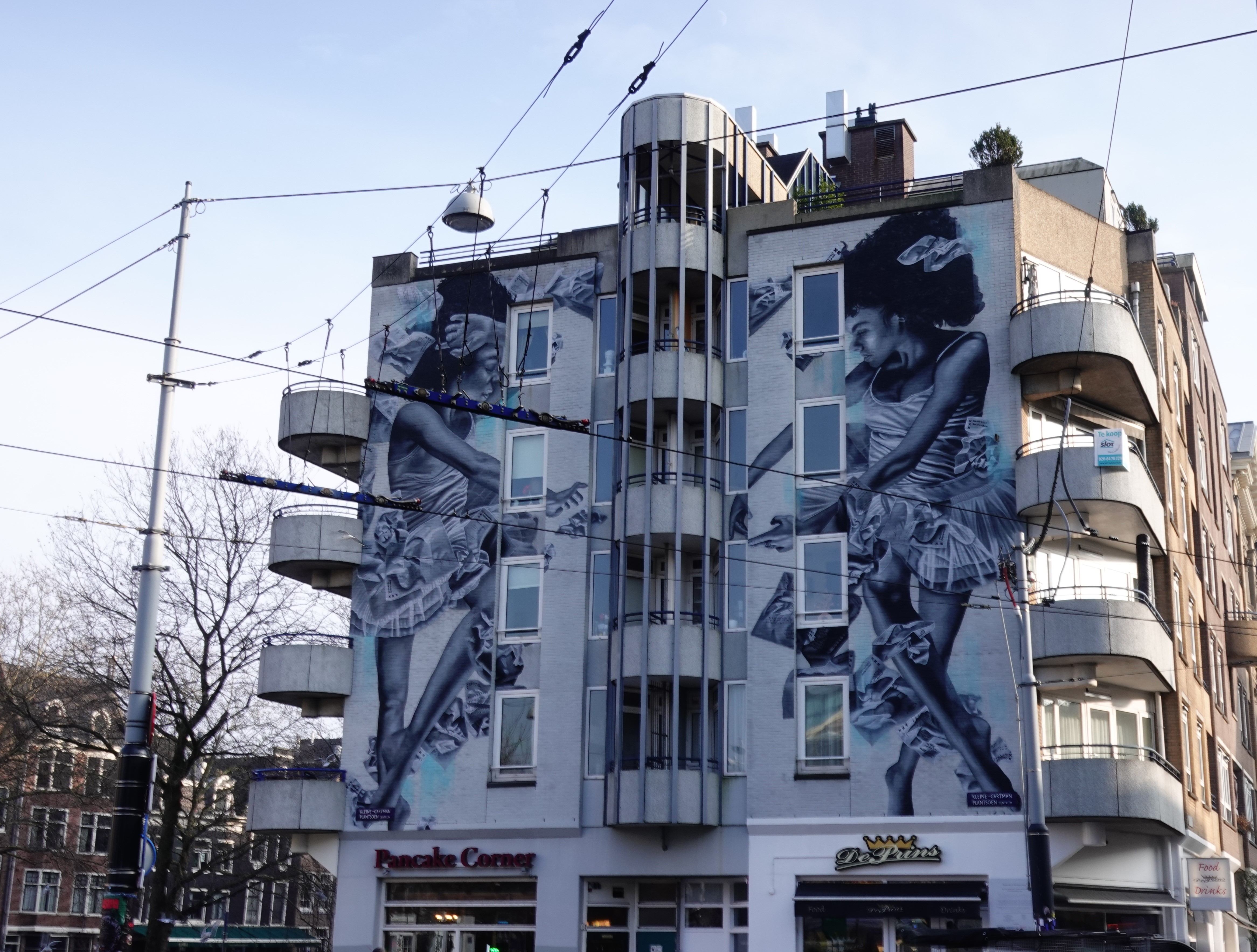Via het Max Euweplein en een mooie muurschildering aan de overkant